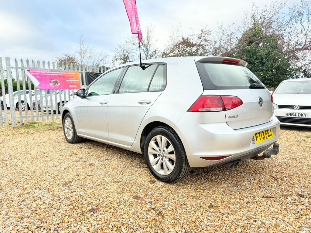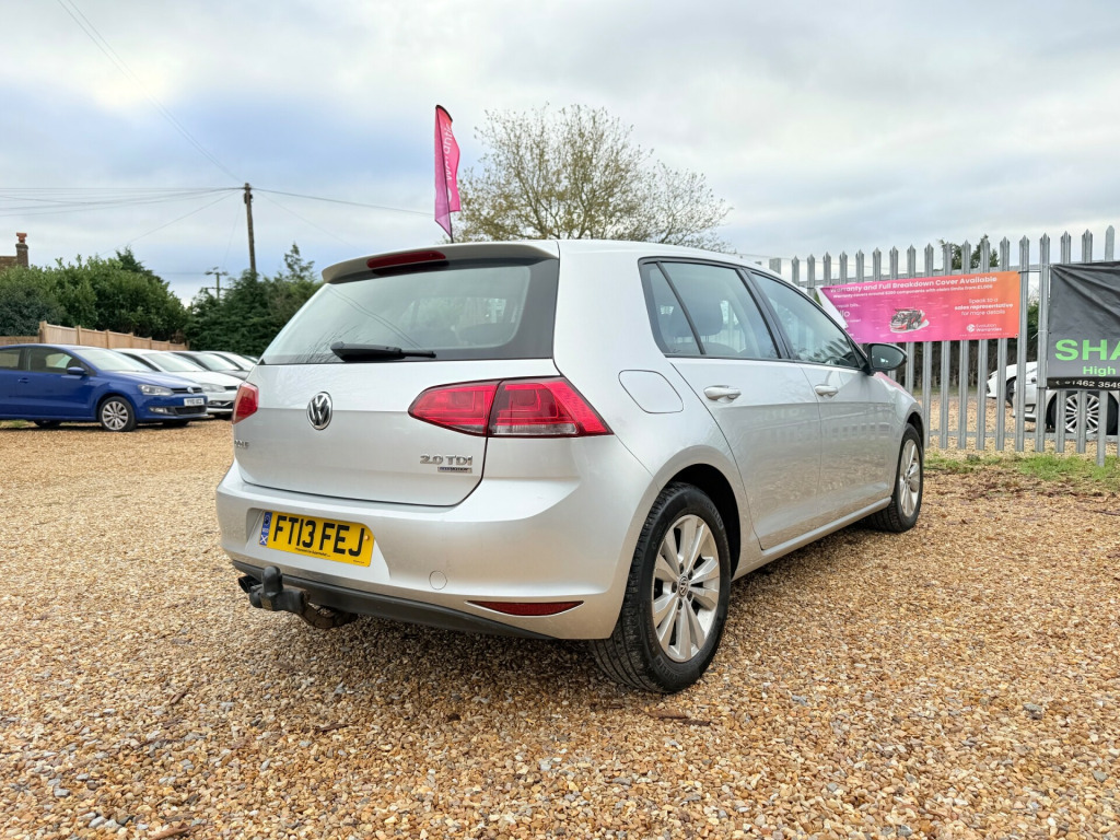 2013 Volkswagen Golf TDI SE 2.0L Diesel One Owner Full Service History Low Mileage MOT & Warranty CAM-Belt replace Boasting exceptionally low mileage for its age, this 2013 Volkswagen Golf TDI SE represents a superb ownership proposition. With only one previous owner and a clear vehicle history check, this Golf has been meticulously maintained, supported by its full service history, with the last service completed on 2nd September 2025 at 60,345 miles.For peace of mind, this vehicle will be supplied with a fresh Mot till 09/2026 and includes a 3-month warranty.Equipped with a responsive 2.0L diesel engine, this Golf SE delivers both practicality and performance. Key features include , Keyless Entry with Start-Stop Button, Advanced Telephone Connection, and Adaptive Cruise Control (ADC) for effortless motorway driving. Comfort is further supported by manual air conditioning.Performance is a highlight, with acceleration from 0-62mph in just 8.6 seconds, showcasing its strong capability compared to similar vehicles. Running costs remain affordable thanks to its low insurance group rating, while the generous boot space makes it highly practical for daily use and long journeys alike.This vehicle includes a 3-month warranty, with extended warranty options available upon request.We also offer a range of extras and services for your convenience: Drive away insurance and vehicle delivery are available as optional services. Every vehicle comes with a complimentary 12-month AA breakdown cover. Flexible finance packages are available at competitive rates, and we accept all major credit and debit cards. We are open seven days a week for viewings and test drives.Visit us at: SHAFFORD Motors, Red Lion Lounge, High Road, Deadman's Cross, SG17 5QQ. v socket, 12v socket - luggage compartment, aux-in socket, bluetooth telephone preparation, composition media system, dab - digital radio reception, mdi - multi device interface with usb - ipod connection cables, radio & single cd player mp3 compatible, radio aerial integrated into rear windscreen, sd card reader, speakers x8, 16in alloy wheels - toronto, black front air intake and radiator grille with chrome trimmed inserts, body coloured bumpers and door handles, body-coloured door mirrors with integrated indicators, door mirrors - electrically adjustable and heated, electric windows - front and rear, exhaust tailpipes - twin, radiator grille - black with chrome louvres, rear diffuser - black, spare wheel - space saver steel, spoiler - tailgate, tinted glass - heat insulating, abs - anti-lock braking system, asr - anti slip regulation, airbags - curtain front and rear, airbags - driver, airbags - drivers knee, airbags - front passenger, airbags - front passenger with deactivation switch, airbags - front seat side impact, alarm with interior protection, automatic post-collision braking system, central locking - remote with 2 remote keys, child locks in rear doors, differential lock - electronic, esp - electronic stability programme, electronic engine immobiliser, electronic parking brake with auto hold function, front assist including city emergency braking, hba - hydraulic brake assist, isofix child seat preparation for 2 rear seats, misfuel prevention device, multiple impact brake activation, pre-crash preventive occupant protection, radar sensor controlled distance monitoring system, seatbelt reminder, xds electronic differential lock, adc - automatic distance control, brake pad wear indicator, cruise control, driver alert system, driver profile choices, multifunction computer, multifunction computer - 3.5in display, power assisted steering - speed sensitive, temperature display - external, tyre pressure indicator, air conditioning - manual, air vent surrounds - chrome effect, armrest - front centre with ventilation nozzles x2, automatic dimming rear view mirror, convenience pack, cup holders - front x2, cup holders - rear x2, decor - brushed stainless steel, dust and pollen filter, first-aid kit and warning triangle - holder only, front seat back storage pockets, glovebox - illuminated - cooled - lockable, grab handles - front x2 rear x2 with coat hooks, head restraints - front whiplash optimised, height and reach adjustable steering column, instrument lighting - white adjustable panel illumination, interior lighting delay, leather trimmed three-spoke steering wheel and gear knob, lighting dial - chrome look, load lashing points x4 in luggage compartment, load-through provision, luggage compartment - hooks, luggage compartment cover, luggage compartment light, luggage compartment storage area on right, rain sensor, reading lights - front x2 and rear x2, rear centre armrest, safeguard against incorrect fuel, seats - front comfort, seats - front lumbar support, seats - height adjustment - front, seats - rear backrest with automatic folding, split folding rear backrests 60-40, steering wheel - audio controls, storage - cover for area in roof console, storage compartment in centre console covered, storage compartment in front doors, storage compartment in rear doors, storage compartment in roof console, sun visors - vanity mirrors and illuminated, three rear head restraints, under seat drawers - front, variable boot floor, windscreen wipers with intermittent wipe and 4 position delay, daytime running lights, headlights - coming-leaving home function, headlights - dusk sensor - automatic driving lights, headlights - halogen clear - range adjustable, high level 3rd brake light - led, lights on warning buzzer