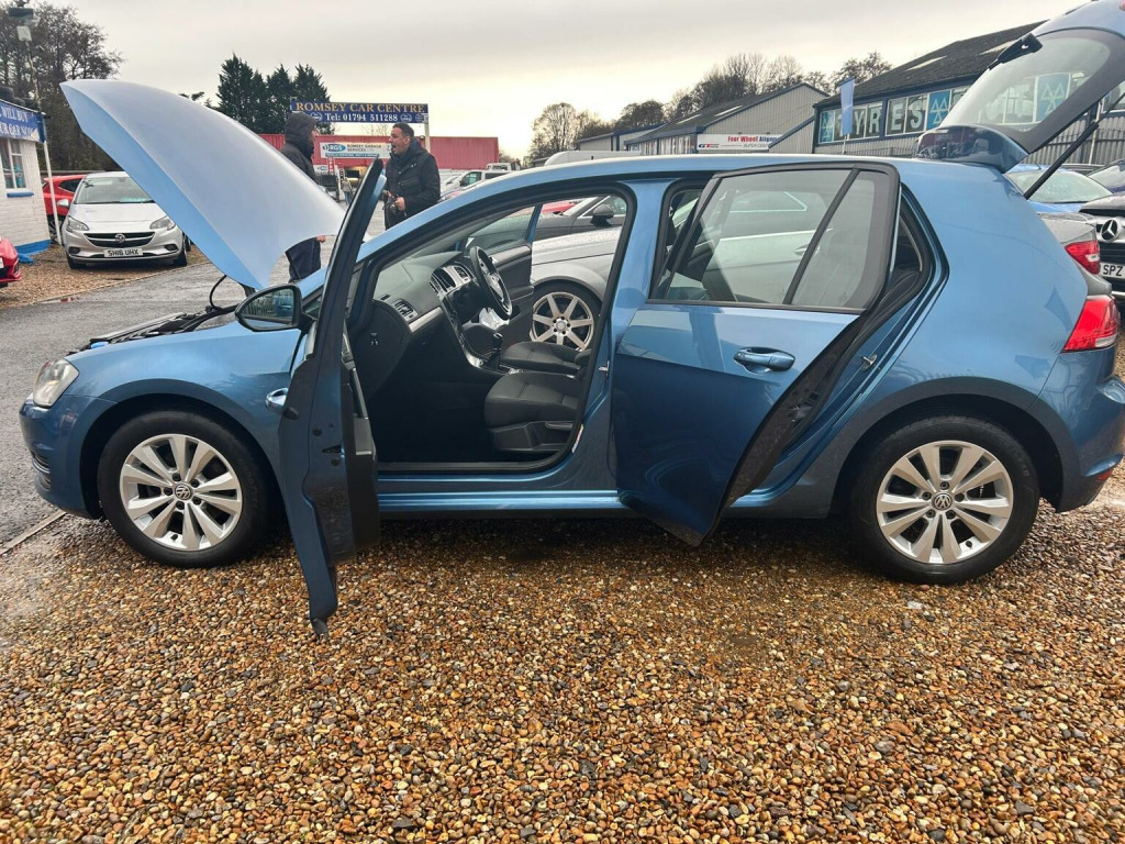 Romsey Car Centre are delighted to offer this Lovely VW Golf SE Tech in Blue with complementing cloth seats. This Quality Golf comes with a Fantastic main dealer & Independent garage service history done at 5,790 miles, 11,228 miles, 18,668miles, 25,121 miles, 45,498 miles, 61,873 miles, 70,584 miles and 77,944 miles up to date with a long Mot. Only £20 road Tax. Cambelt and Water pump changed at 61,873 miles in 2023. Only One former keeper. Front & Rear parking sensors. 6 speed.