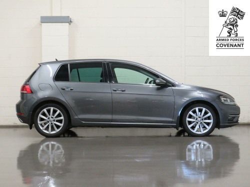 Arrow Motor Company are pleased to present this fantastic Volkswagen Golf GT Edition TDI DSG finished in the stunning Indium Grey Metallic Paintwork with Contrasting Titan Black-Quartz Half Alcantara/Half Cloth Interior. Equipped with Volkswagens 2.0-Litre Turbo Diesel Engine capable of producing 148bhp whilst providing the most economical of drivers with a highly respectable 65.7mpg, with potential to rise to 74.3mpg in Extra-Urban environments. This particular example is Complimented by Full Service History (FSH). This vehicle also benefits from the following impressive list of features…, , ↓ ↓ ↓ ↓ ↓ ↓ ↓ ↓ ↓ ↓ ↓ ↓ ↓ ↓ ↓ ↓ ↓ ↓ ↓ ↓ ↓, , …Interior Features…, , 8-Inch Touch Screen HD Digital Media System | Full Link Apple Carplay/Android Auto | Bluetooth Telephone and Media Streaming | DAB Radio | Air-conditioning | Adaptive Cruise Control | Speed Limiter | Auto Dimming Rear View Mirror | Multifunction Flat Bottom Steering Wheel | Driving Mode Switch | Front Armrest | Rear Armrest | Front Sports Seats with Lumbar Support | Tyre Pressure Monitoring System | ISOFIX | Electric Handbrake with Auto Hold | Adjustable Steering Wheel | Glovebox Storage | Premium Half Alcantara Interior | 4 Cupholders | Traction Control | Central Locking | 8 Speakers Front and Rear | USB | AUX | 12V Socket, , …Exterior Features…, , 17-Inch 10-Spoke Alloy Wheels | Front and Rear Parking Sensors with Visual Aid | Daytime Running Lights | Privacy Glass | Wing Mirror Puddle-Lights | Electrically Folding Wing Mirrors | Heated Wing Mirrors | Electrically Adjustable Wing Mirrors | Wing Mirror Indicators | Auto Lights | Auto Wipers | Electric Windows | Shark Fin Antenna