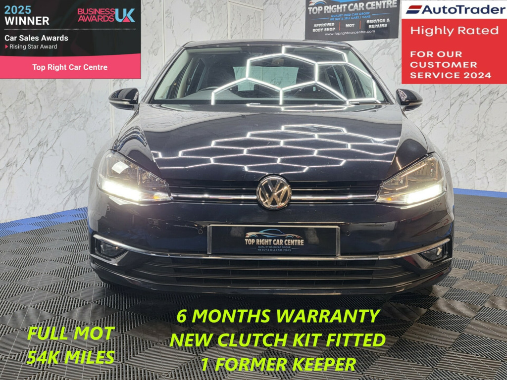 *** NIL DEPOSIT FINANCE AVAILABLE *** 6 MONTHS WARRANTY AND BREAKDOWN COVER WITH THIS CAR.(0% interest 9 months payment plan for extended warranty options are available for 1 or 2 years).1 former keeper only. Low mileage 54k miles only. We just replaced the clutch kit.FULL SERVICE HISTORY. FULL MOT ON SALE. We just done the fresh service.This stunning Volkswagen Golf has been sourced directly from its Previous Private Owner. Every now and again, a car comes into stock at Top Right Car Centre, that you cannot help but fall in love with.Top Spec GT has massive centre touch screen, SATNAV, apple car play, android auto, mirror link, 4 driving modes, all electric windows, auto-folding electric side mirrors, day time running LED lights, privacy glass, parking sensors, cruise control. Clean Car in Black colour. Great comfortable family car. Well maintained body work and interior. Bullet fast response. Checked by our engineers. Professionally detailed. Good reliable runner. Price checked. We've just completed a full pre delivery inspection on the car to give you complete piece of mind. 2 central locking keys. Smooth gear box. Clean alloy wheels. Excellent condition tyres. Spare wheel. Multimedia has Bluetooth DABRADIO USB AUX mp3. Run with no fault strong reliable engine. Good fuel economy. First to see will buy it this well looked after car. cat N. p/x welcome. We do price our cars/van as competitively as possible and because of this we sell cars/vans very quickly. BE QUICK! MISS IT - MISS OUT. With so much variety, quality and highly rated award winner 2024 and 2025, it is no wonder we are super busy all the time. Why Buy From Top Right Car Centre?Thoroughly Inspected Cars. All our vehicles are quality-checked and HPi verified, giving you peace of mind with every purchase.Multi Award-Winning Family Business. As a trusted family-run business, we have earned awards for our customer service and expertise.Hand-Picked, Quality Cars. We carefully select only the finest cars with full service histories, so you can drive away with confidence.Test Driven for Assurance. Each car is personally test-driven by our team, ensuring it meets our high standards.Delivery Service available. v socket - luggage compartment, car-net app connect, composition media system, discover navigation touch-screen navigation-radio system with car-net guide and inform, rear window aerial, 17in alloy wheels - dijon, black front air intake and radiator grille with chrome trimmed inserts, body coloured bumpers, body coloured door handles, body-coloured door mirrors with integrated indicators, chrome trimmed front air intake surround, electric windows - front and rear, heated rear windscreen, mirror pack, rear diffuser - black, rear tinted glass - b pillar backwards - approx 65 percent tinted, remote electrically foldable door mirrors - door mirror puddle lights and reverse activated kerb-view adjustment on passengers door mirrors, steel space saver spare wheel, tailgate with integrated rear roof spoiler, abs - anti-lock braking system with hba - hydraulic brake assist, airbags, alarm with interior protection, automatic post-collision braking system, child security locks in the rear doors, esc - electronic stability control including edl - electronic differential lock and asr - traction control with deactivation via infotainment system, electronic engine immobiliser, electronic parking brake with auto hold function, front assist, height-adjustable front three-point seat belts with tensioners, isofix child seat preparation for 2 rear seats, misfuel prevention device, pre-crash preventive occupant protection, predictive pedestrian protection, rear number plate lights incorporating led technology, rear screen wash-wipe with intermittent wipe, remote central locking with 2 remote folding keys, three rear 3-point seat belts, warning buzzer and light for front seat belts if unfastened, xds electronic differential lock for improved traction and handling, adaptive cruise control, brake pad wear indicator, driver alert system, driving mode selection, lowered sports suspension, multifunction computer, parking sensors - front and rear, power assisted steering - speed-sensitive - electro-mechanical steering rack, speedo and rev counter - electronic odometer - trip - service interval display - exterior temperature gauge and fuel gauge, tyre pressure loss indicator, air conditioning - manual, ambient lighting pack, bag hooks in the luggage compartment x2, carpet mats - front and rear, chrome plated air vent surrounds, chrome plated electric mirror adjustment switch surround, chrome plated electric window button surrounds, chrome-plated light switch surround, convenience pack, cover for storage compartment in centre console, cup holders - front x2, driver personalisation profile, drivers and passengers safety optimised head restraints, dust and pollen filter, front centre armrest with storage compartment and two rear air vents, front footwell illumination, front seat back storage pockets, front sport seats with height and lumbar adjustment, galvanised body, glovebox - cooled, grab handles - front x2 rear x2 with coat hooks, instrument lighting - white adjustable panel illumination, interior light delay, load lashing points x4 in luggage compartment, load-through provision, luggage compartment cover - stowable, luggage compartment light, luggage compartment storage area on left and right, lumbar support for drivers and front passenger seat, piano black decorative inserts in centre console, premium usb cable, rain sensor and automatic dimming rear-view mirror, reading lights front x2 and rear x2 - led, rear centre armrest - folding with cup holders x2, reflectors in doors, split folding rear backrests 60-40, steering column - height and reach adjustable, steering wheel - multifunction - leather trimmed, storage compartment in centre console, storage compartment in front doors, storage compartment in rear doors, storage compartment in roof console w