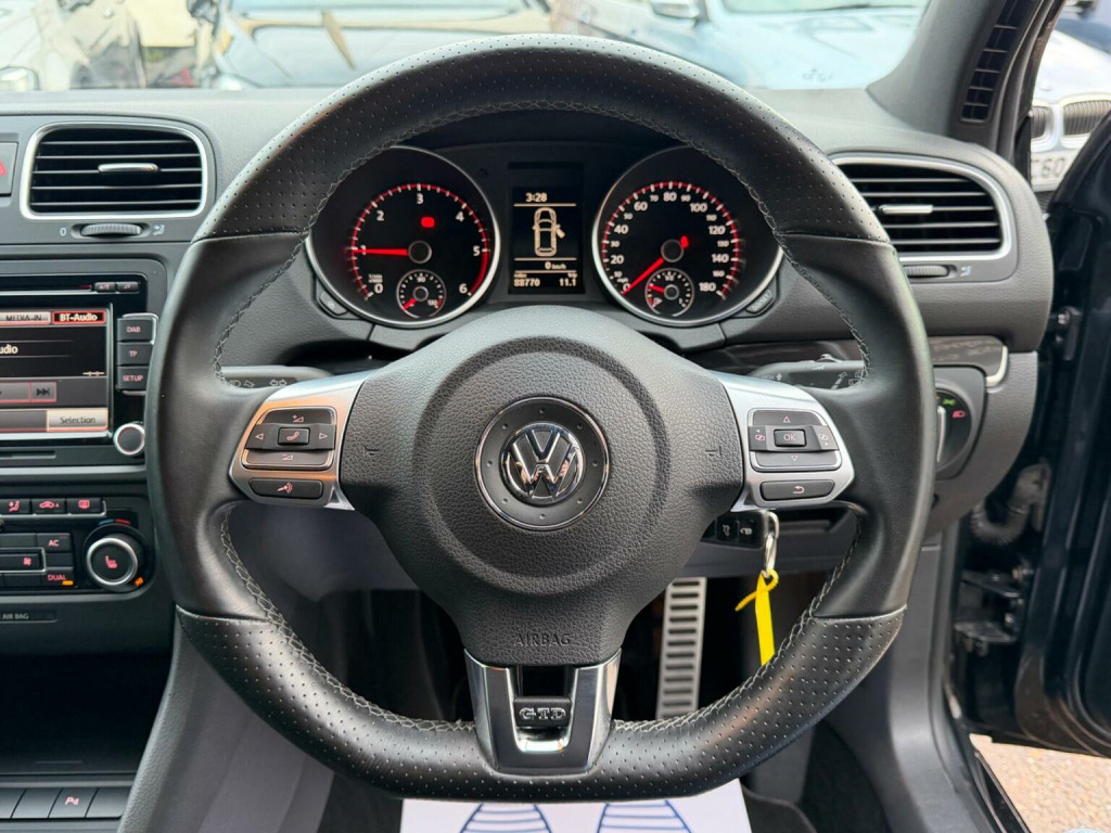 This 2012 Volkswagen Golf TDI GTD presents an exceptional opportunity with its remarkably low mileage of just 88,571 miles for its age, coupled with a history of only two owners. Under the bonnet, youll find a capable 2.0 litre diesel engine, delivering a brisk 0-62mph in only 8.1 seconds. Inside, the GTD trim offers a comfortable and refined experience, enhanced by luxurious leather upholstery. Convenience is key with features like heated front seats, perfect for those colder mornings, and 2 zone electronic climate control with automatic air recirculation to keep everyone comfortable. Stay connected on the go with Bluetooth telephone preparation, allowing for hands free calls. Further enhancing this already impressive Golf are automatic driving lights, activated by a dusk sensor, ensuring you always have optimal visibility. The generous boot space provides ample room for shopping, luggage, or sports equipment, making it a practical choice for everyday life. These specific features, combined with its efficient diesel engine and sporty performance, clearly set this Volkswagen Golf TDI GTD apart from other similar vehicles on the market.