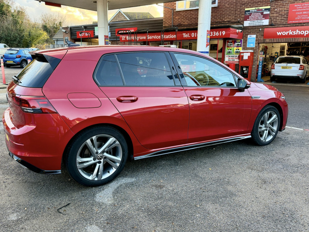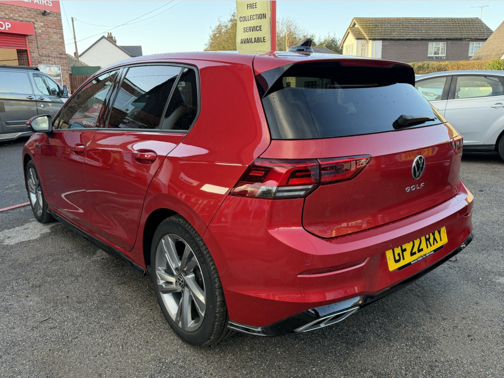 Vehicle Summary, Volkswagen Golf 2.0 TDI R-Line Euro 6 (s/s) 5dr 2022 in Kings Red Metallic withWinter Pack!, , • Heated steering wheel, • Lane assist, • Apple Car play, • 18in Alloy Wheels, • Adaptive Cruise Control, • Air Conditioning - 1 Zone Electronic Climate Control, • Ambient Lighting, • App-Connect, • Decorative Inserts Carbon Grey in Dash and Front Door Trim Panels, • Digital Cockpit Pro, • Digital Speedo and Rev Counter - Electronic Odometer - Trip - Service Interval Display - Exterior Temperature Gauge and Fuel Gauge, • Discover Navigation Infotainment System, • Dynamic Road Sign Display, • Electric Windows - Front and Rear, • Electrically Heated and Adjustable Door Mirrors, • Front Sport Seats with Height and Lumbar Adjustment, • Heated Rear Windscreen, • Interior Light Delay, • Keyless Start - Start-Stop Button on Centre Console, • LED Footwell Illumination - Front, • LED Lighting in Door Handle Recess - Front and Rear, • LED Self-Levelling Headlights with Separate LED Daytime Running Lights, • Parking Sensors - Front and Rear, • Progressive Steering, • R-Line Styling Pack - Front and Rear Bumpers - Radiator Grille and Side Skirts, • Rain Sensor and Automatic Dimming Rear-View Mirror, • Rear Lights Incorporating LED Technology, • Rear Tinted Glass, • Steering Wheel - Heated Multifunction Leather, • Wireless Smartphone Charger, • XDS Electronic Differential Lock for Improved Traction and Handling, , • Full Service History Last serviced a t 26,902 miles, , • New 12 MONTHS MOT TO BE APPLIED BEFORE SALE, , • One local elderly gentleman owner from new. , • Book packs and manuals present. , • GOLD HPI and mileage checked and clear.