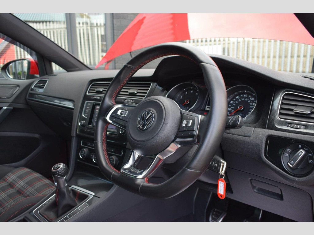 2014 â14 Volkswagen Golf GTI Launch finished in Tornado Red with signature tartan interior interior and diamond cut alloys. 77250 miles covered by only two owners from new (1 former keeper). This mileage is supported with full stamped service history made up of an impressive 8 service stamps - 6 VW main dealer and 2 independent - last completed in August 2021. Presented in great condition inside and out having been enthusiast owned and maintained by a main dealer trained technician. Unblemished alloys, clean bodywork and lightly used interior. Supplied with two keys and all correct documentation, handbooks, service book etc. This GTI benefits from a Stage 2 ECU calibration with dyno printout present and a respectable but safe and reliable 323bhp output. Supporting modifications include 200 cel sports cat (MOT compliant) and Racingline induction system. Equally good factory specification with equipment which includes: Winter Pack (Heated Seats and Washer Jets), Dynamic Chassis Control (DCC), 2Zone Electronic Climate Control, Adaptive Cruise Control (ACC), Cruise Control, DAB Digital Radio Receiver, Parking Sensors - Front & Rear, Rain Sensor, Tinted Glass from B Pillar Backwards and more. FINANCE FROM 6.9% APR | GTECHNIQ DETAILING & CERAMIC COATINGS | XPEL PAINT PROTECTION FILM