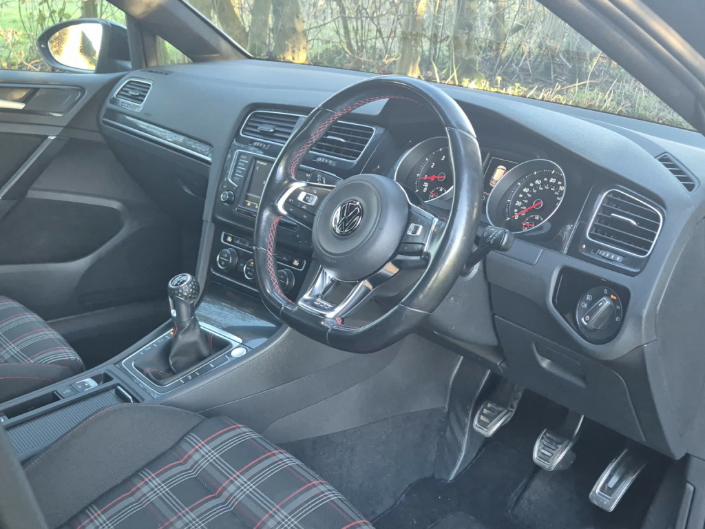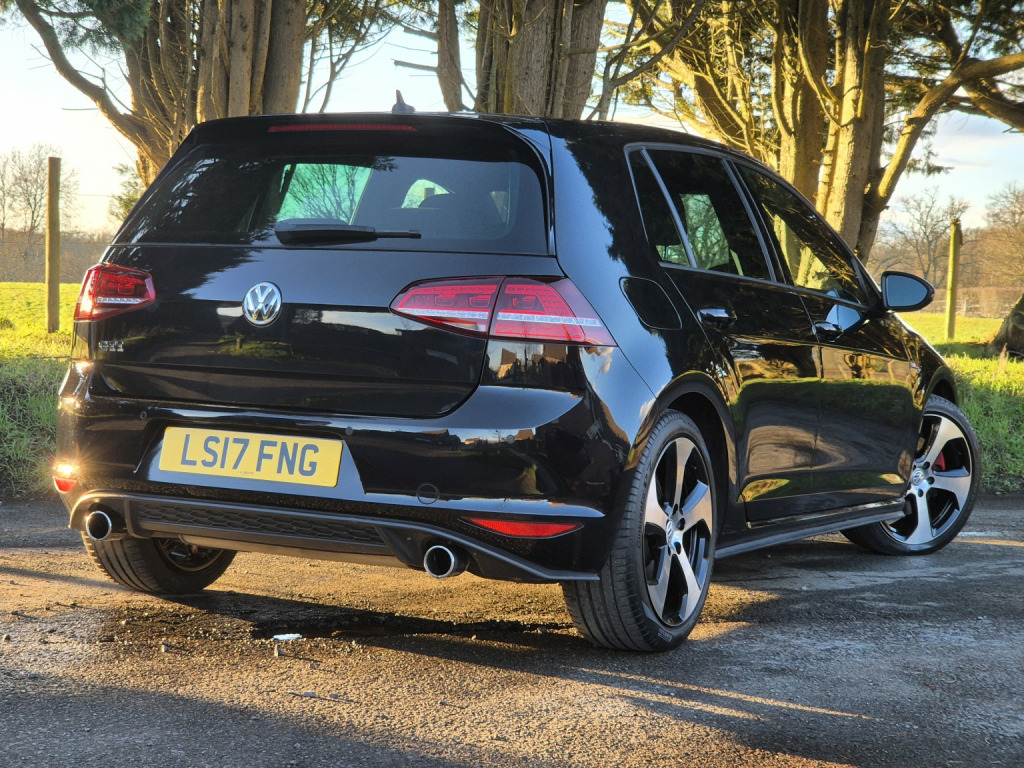 2017 Volkswagen Golf GTI Tech 5 door with sought-after manual gearbox, finished in Deep Black and covering 70,000 miles. , Specification highlights include touchscreen navigation system, adaptive cruise control, keyless entry & start, front and rear parking sensors, power folding and heated door mirrors, dual-zone climate control, flat-bottom leather steering wheel, Bluetooth phone and audio streaming, DAB digital radio, and unmarked 18 diamond-cut GTI alloy wheels. , This example has been just serviced, with an excellent 8-service history in total, including a recent water pump replacement. It also benefits from new Pirelli tyres to the front and recent Pirelli tyres to the rear, and has clearly been very well cared for mechanically. , Supplied with 2 keys and MOT through to January. 2027