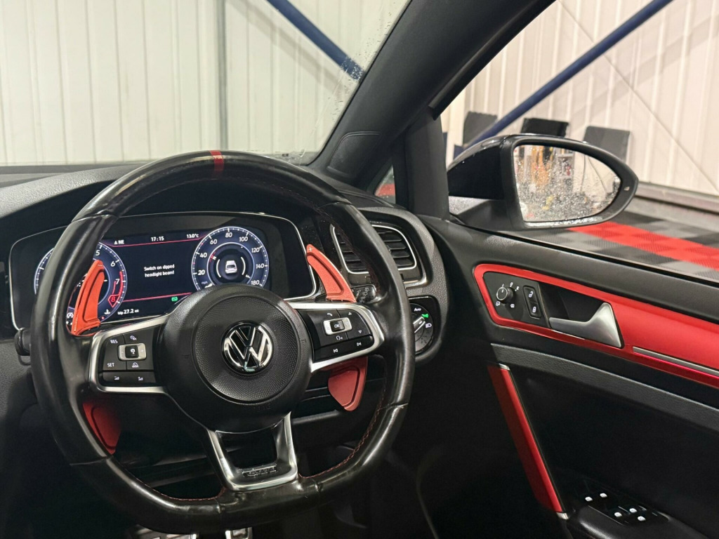 This 2017 Volkswagen Golf TSI GTI presents a compelling proposition with its remarkably low mileage of just 62,000 miles for its age. This particular example is a Euro 6 compliant model, powered by a responsive 2.0 litre petrol engine. It boasts a desirable specification including a panoramic sunroof that can be opened, stylish 19 inch Santiago alloy wheels, and a rear view camera to aid with parking. Further enhancing its practicality and comfort are front and rear parking sensors, and rear tinted glass from the B pillar backwards, offering approximately 90 percent tint.The GTI variant is renowned for its engaging driving experience, and this model is no exception, achieving an impressive 0 to 62 miles per hour in just 6.4 seconds, demonstrating its spirited performance. This acceleration figure is a clear indicator of its dynamic capabilities compared to many other vehicles in its class. Furthermore, the generous boot space ensures that this Golf is not only exciting to drive but also highly practical for everyday use and longer journeys. ar view camera, 19in alloy wheels - santiago, panoramic sunroof, rear tinted glass - b pillar backwards - approx 90 percent tinted, vienna leather - black, 12v socket - luggage compartment, 18in alloy wheels - parker, abs - anti-lock braking system with hba - hydraulic brake assist, active info display, adaptive cruise control, airbags, alarm, ambient lighting pack, anti-tramp function, auto-fold down lever in rear seat backrest, automatic coming-leaving home lighting function, automatic post-collision braking system, bag hooks in the luggage compartment, body coloured bumpers, body coloured door handles, body-coloured roof spoiler - rear, brake calipers - red, brake pad wear indicator, car-net app connect, carpet mats, centre console - piano black, child security locks in the rear doors, chrome plated air vent surrounds, chrome plated applications - mirror switch - window switch, climate control, composition media system, convenience pack, cover for storage compartment in centre console, cup holder - closable cover in centre console, cup holders - front x2, decor strip on dashboard - decor strip on door side trim, decorative insert - honeycomb black, discover navigation touch-screen navigation-radio system with car-net guide and inform, door sill strip - illuminated, double exhaust at opposite sides of bumper, driver alert system, driver profile selection, drivers and passengers safety optimised head restraints, driving profile selection, dusk sensor - automatic driving lights, dust and pollen filter with active coal insert, esc - electronic stability control including edl - electronic differential lock and asr - traction control, electric rear windows, electric windows - front, electronic engine immobiliser, electronic parking brake with auto hold function, extended sills, front centre armrest with storage compartment and two rear air vents, front fog lights, front footwell illumination, front interior light with delayed switch-off and contact switches - all doors, front and rear external gti logo in silver, galvanised body, glovebox - cooled, grab handles - front x2 rear x2 with coat hooks, headlining - black, heated rear windscreen, heated windscreen washer jets, height-adjustable front three-point seat belts with tensioners, honeycomb radiator grille with red stripe, isofix child seat preparation for 2 rear seats, led headlights with dynamic cornering lights, led tinted rear light clusters, lights on warning buzzer, load lashing points x4 in luggage compartment, load-through facility in rear seat bench, load-through provision, low washer fluid warning light, luggage compartment cover - stowable, luggage compartment light, luggage compartment storage area on right, lumbar support for drivers and front passenger seat, mirror pack, multifunction computer, optimised sound actuator, overhead storage, parking sensors - front and rear, pedals - brushed stainless steel, pre-crash preventive occupant protection, predictive pedestrian protection, progressive steering, rain sensor and automatic dimming interior rear-view mirror, reading lights - front x2 and rear x2, rear centre armrest - folding with cup holders x2, rear lights incorporating led technology, rear number plate lights incorporating led technology, rear seat bench with 60-40 split, rear tinted glass - b pillar backwards - approx 65 percent tinted, rear window aerial, red styling line through front bumper and headlights, reflectors in doors, remote central locking with 2 remote folding keys, speedo and rev counter - electronic odometer - trip - service interval display - exterior temperature gauge and fuel gauge, steel space saver spare wheel, steering column - height and reach adjustable, steering wheel - multifunction - leather trimmed with paddle shift, storage compartment in centre console, storage compartment in front doors, storage compartment in rear doors, storage compartment in roof console with cover, styling pack for gti, suspension - sports - lowered by approx 15mm, three rear 3-point seat belts, three rear head restraints, tinted glass - heat insulating green, top sports seats - height and lumbar adjustment, tyre pressure loss indicator, unique gti badging, unique gti instrument cluster, unique gti interior badging, unique rear diffuser in black with chrome exhaust tailpipes left and right, vanity mirrors - illuminated, variable boot floor - height adjustable and removable, warning buzzer and light for front seat belts if unfastened, white instrument cluster lighting - dimmable - red night design for switches - location lighting, windscreen wiper front and rear with intermittent wipe function, winter pack, xdsplus electronic differential lock for improved traction and handling