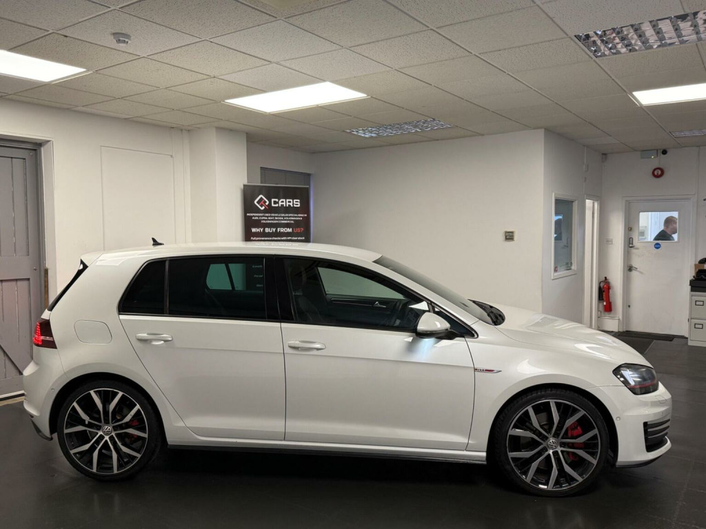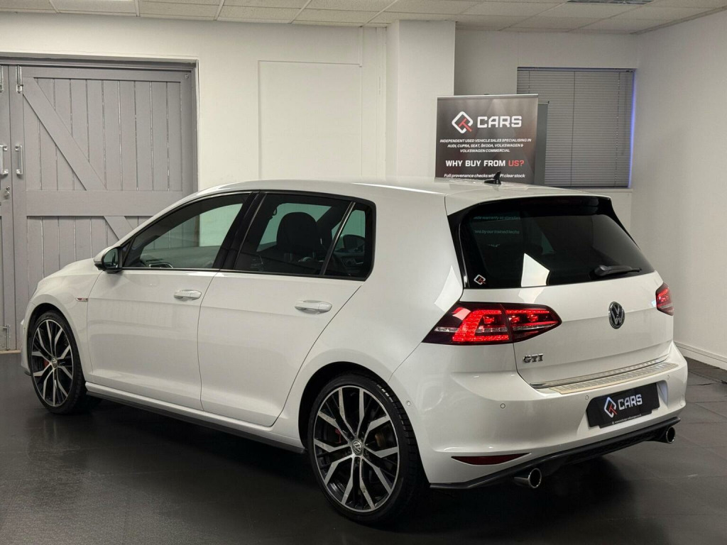 We have just purchased this stunning and very well maintained GTI Performance directly from the previous owner who purchased the car from new - registration WV63 XGY. , This is the 2.0TSI 230ps with 6-speed DSG gearbox in special Oryx white pearl paintwork (£930 option!) with full black leather. Factory extras totalled £8500 as below; , >Performance pack, >19 Santiago alloy wheel upgrade, >Discover Navigation Pro (larger screen), >Keyless entry and start, >Park assist, >Winter pack, >Adaptive chassis control, >High beam assist, >Rear view camera, >Four recent Pirelli P-zero tyres, This GTI has an amazing 12 service stamps as below ALL WITH THE SAME VW DEALER;, 06/11/2014 at 4,382 miles, 14/10/2015 at 8,320 miles, 05/10/2016 at 12,252 miles, 26/09/2017 at 15,601 miles - major service, 11/09/2018 at 17,880 miles, 28/08/2019 at 19,942 miles - major service, 09/09/2020 at 21,489 miles, 31/08/2021 at 22,831 miles, 05/09/2022 at 24,900 miles, 12/09/2023 at 27,084 miles, 03/04/2024 at 28,619 miles - front diff oil change, 12/09/2024 at 29,766 miles, 08/09/2025 at 32,327 miles, We have had all 4 wheels professionally refurbished plus a DSG gearbox oil service completed (due at 40k). , A GTI with this spec, ownership, service history and mileage you may never see again - dont miss out!! , Please do call for more information and to discuss this car in more detail, do also make sure you watch our detailed walk-around video on the video tab in the Gallery! We offer competitive finance options with APRs starting from 9.9% over 2-5 years, and can provide any quotations required. All of this can also be done online. We take any make in part exchange - while we only retail VAG product we will still seek the best value we can for your car. If it is easier you can text or WhatsApp on 07564 053855 or go to our website www.qtcars.co.uk and use the WhatsApp icon. We ensure the car receives a structured mechanical check, 12 months MOT upon arrival and 6 months warranty which can be used at any VAT registered garage nationally. Please take a moment to read our reviews to see what our customers are saying