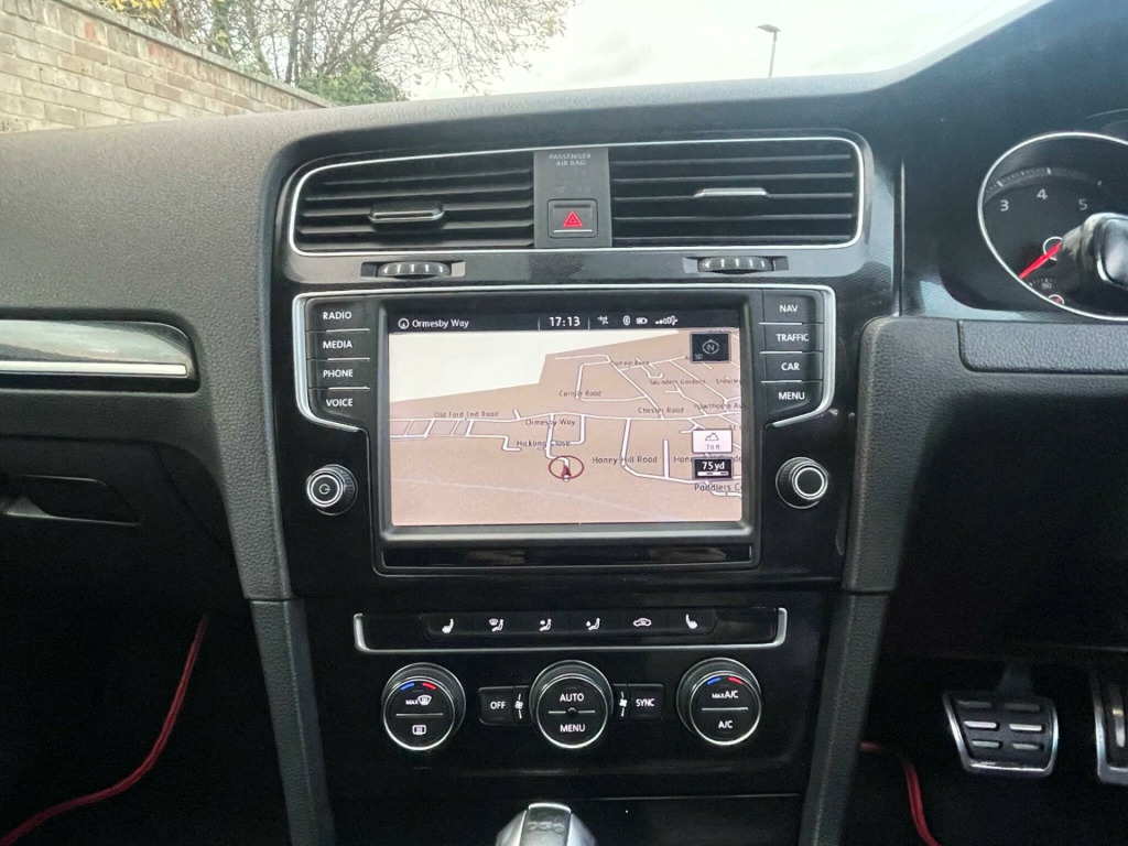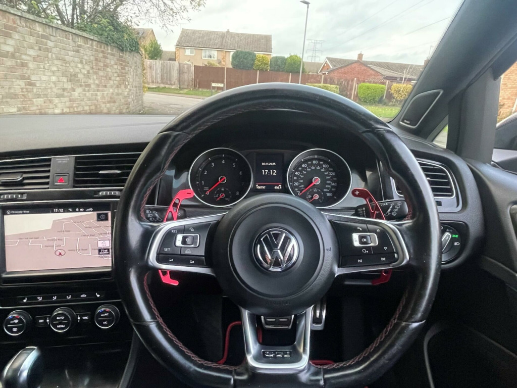This 2016 Volkswagen Golf TSI GTI offers an exhilarating driving experience, boasting a rapid 0-62mph acceleration time of just 6.5 seconds. Under the bonnet, you'll find a powerful 2.0 litre petrol engine that meets Euro 6 emission standards, ensuring both performance and efficiency. This model comes equipped with the desirable Dynaudio Excite Soundpack, delivering a premium audio experience, and for added safety, it includes rear side airbags and a rear seatbelt warning system.Navigating tight spaces is made effortless with the advanced Park Assist feature, complemented by front and rear parking sensors. Inside, you'll appreciate the comfort of the 2 zone electronic climate control, which automatically recirculates air to maintain your preferred temperature. The Golf TSI GTI also offers generous boot space, making it a practical choice for everyday use and longer journeys. These features collectively demonstrate how this Volkswagen Golf stands out from other vehicles in its class. v socket, 12v socket - luggage compartment, 18in alloy wheels - austin, 2 zone electronic climate control with automatic air recirculation, abs - anti-lock braking system, asr - anti slip regulation, air vent surrounds - chrome effect, airbags - curtain front, airbags - curtain rear, airbags - driver, airbags - drivers knee, airbags - front passenger, airbags - front passenger with deactivation switch, airbags - front seat side impact, alarm with interior protection, ambient lighting - red, ambient lighting pack, anti-theft wheel bolts, anti-tramp function for esp, armrest - front centre with storage compartment, automatic dimming rear view mirror, automatic post-collision braking system, bluetooth audio connection, bluetooth telephone preparation, body coloured bumpers, body coloured door handles, body-coloured door mirrors with integrated indicators, brake calipers - red with gti logo, brake pad wear indicator, branded points of interest for sat nav, bumpers - unique gti, car information display, car-net guide and inform (3 year subscription from new), carpet - black, carpet mats - front and rear, central locking - remote with 2 remote keys, centre console - cyclone decorative inserts, child locks in rear doors, chrome plated electric mirror adjustment switch surround, chrome plated electric window button surrounds, chrome trimmed front air intake grille surround, chrome-plated light switch surround, colour touch screen - 6.5in, composition media system, convenience pack, cruise control - adaptive, cup holders - front x2, cup holders - rear armrest x2, dab - digital radio reception, dashboard - cyclone decorative inserts, daytime running lights - led, differential lock - electronic - xdsplus, discover navigation touch-screen navigation radio system, door mirrors - electrically adjustable-heated and folding, door mirrors - puddle lights, door mirrors - reverse activated kerb view adjustment on passengers, door panels - cyclone decorative inserts, door sill protectors - illuminated, driver alert system, driver profile selection, dust and pollen filter, dynamic curve lighting, esp - electronic stability programme, electric windows - front and rear, electronic engine immobiliser, electronic parking brake with auto hold function, european mapping data, exhaust tailpipes - chrome left and right, extended sill strips - flared, first-aid kit and warning triangle - holder only, footwell illumination - front x2, front air intake - black honeycomb, front assist including city emergency braking, front fog lights - led, front seat back storage pockets, gti exterior badge, gti interior badge, gas discharge - bi-xenon dipped and main beam headlights with led daytime running lights, gear knob gaiter - gti logo and red stitching, gear shift indicator, glovebox - illuminated - cooled - lockable, grab handles - front x2 rear x2 with coat hooks, hba - hydraulic brake assist, head restraints - front whiplash optimised, headlight washer system, headlights - automatic range adjustment, headlights - coming-leaving home function, headlights - dusk sensor - automatic driving lights, headlights - red stripe for bi-xenon, heated front seats, heated rear windscreen, heated windscreen washer jets, height and reach adjustable steering column, height-adjustable front three-point seat belts with tensioners, high level 3rd brake light - led, isofix child seat preparation for 2 rear seats, instrument lighting - white adjustable panel illumination, interior lighting delay, keyless entry - with start-stop button, keys - folding x 2, led rear number plate lights, leather gaiter on gear lever, leather trimmed gear knob, leather trimmed three-spoke steering wheel and gear knob, light strips below trim in front doors, lights in front door armrests, lights on warning buzzer, load lashing points x4 in luggage compartment, load-through provision, load-through provision converts to table function, low washer fluid warning light, luggage compartment - hooks, luggage compartment cover, luggage compartment light, luggage compartment storage area on right, mdi - multi device interface with usb - ipod connection cables, map view - 2d and 3d, mirror pack, multifunction computer - colour, optical parking display via vehicles audio system, parking sensors - front and rear, parking sensors - rear, pedals - stainless steel, pre-crash preventive occupant protection, progressive steering, radar sensor controlled distance monitoring system, radiator grille - black honeycomb structure and red stripe, radio aerial integrated into rear windscreen, rain sensor, reading lights front x2 and rear x2 - led, rear centre armrest, rear diffuser - black, rear lights incorporating led technology, reflectors in doors, roof lining - black, route options for sat nav - fast-short-eco, sd card reader, sms functionality - read - compose and send sms messages using touch screen display - android compatible smartphones only, seats - front lumbar support, seats - front sports, seats - 