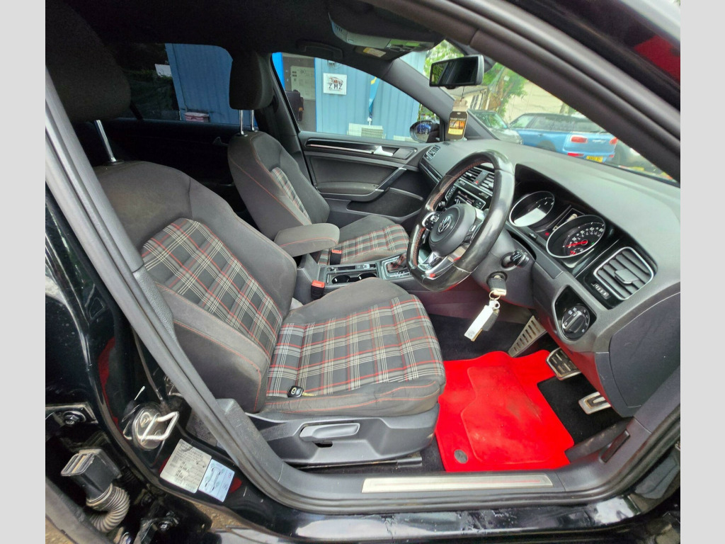 Coming to you as a 2014 Volkswagen Golf TSI GTI, this vehicle includes a 6-month warranty for your peace of mind. As a Golf GTI, this vehicle boasts a 2.0L petrol engine and complies with Euro 6 emission standards. The partial service history provides insights into the care this vehicle has received. The trim is GTI, ensuring a sporty driving experience. Benefit from advanced features such as Advanced Telephone Connection and Voice Activation, enhancing connectivity and convenience. Lane Assist with Side Scan and Dynamic Light Assist add an extra layer of safety, while Park Assist simplifies parking manoeuvres. Enjoy a comfortable cabin environment with 2 Zone Electronic Climate Control, including Automatic Air Recirculation. Plus, a 12 months MOT is provided on purchase, ensuring road worthiness.One of the car's key strengths is its large boot space, making it more practical than similar vehicles. The Golf GTI also accelerates from 0-62mph in just 6.5 seconds, demonstrating its superior performance capabilities. vanced telephone connection, discover navigation touch-screen navigation radio system, lane assist with side scan and dynamic light assist, park assist, voice activation, jacara cloth - black/red, airbags - side system rear and rear seat belt reminder, high beam assist, keyless entry - with start-stop button, acc - adaptive chassis control, 12v socket, 12v socket - luggage compartment, 18in alloy wheels - austin, 2 zone electronic climate control with automatic air recirculation, abs - anti-lock braking system, adc - automatic distance control, asr - anti slip regulation, air vent surrounds - chrome effect, airbags - curtain front and rear, airbags - driver, airbags - drivers knee, airbags - front passenger, airbags - front passenger with deactivation switch, airbags - front seat side impact, alarm with interior protection, ambient lighting - red, anti-theft wheel bolts, anti-tramp function for esp, armrest - front centre with ventilation nozzles x2, automatic dimming rear view mirror, automatic post-collision braking system, aux-in socket, bluetooth telephone preparation, body coloured bumpers and door handles, body coloured side sills, body-coloured door mirrors with integrated indicators, brake calipers - red, brake pad wear indicator, bumpers - front and rear - uniquely shaped, carpet mats - front and rear, central locking - remote with 2 remote keys, cherry red rear light clusters, child locks in rear doors, chrome air inlets, chrome trimmed front air intake grille surround, city emergency braking system, composition media system, convenience pack, cruise control, cup holders - front and rear, cup holders - front x2, cup holders - rear x2, dab - digital radio reception, dashboard - gloss black panel, daytime running lights - led, differential lock - electronic, door mirrors - electrically adjustable-heated and folding, door mirrors - puddle lights, door mirrors - reverse activated kerb view adjustment on passengers, door panels - cyclone decorative inserts, driver alert system, driver profile choices, dust and pollen filter, esp - electronic stability programme, electric windows - front and rear, electronic engine immobiliser, electronic parking brake with auto hold function, exhaust tailpipes - chrome left and right, extended sill strips - flared, first-aid kit and warning triangle - holder only, footwell illumination - front, front assist including city emergency braking, front fog lights - led, front seat back storage pockets, glovebox - illuminated - cooled - lockable, grab handles - front x2 rear x2 with coat hooks, hba - hydraulic brake assist, head restraints - front whiplash optimised, headlight washer system, headlights - bi-xenon - gas discharged, headlights - coming-leaving home function, headlights - dusk sensor - automatic driving lights, headlining - black, height and reach adjustable steering column, high level 3rd brake light - led, isofix child seat preparation for 2 rear seats, instrument lighting - white adjustable panel illumination, interior lighting delay, led rear number plate lights, leather trimmed handbrake grip, lighting dial - chrome look, lights on warning buzzer, load lashing points x4 in luggage compartment, load-through provision, luggage compartment - hooks, luggage compartment cover, luggage compartment light, luggage compartment storage area on right, mdi - multi device interface with usb - ipod connection cables, mirror pack, multifunction colour display, multifunction computer, multifunction computer - 3.5in display, multiple impact brake activation, optical parking display via vehicles audio system, parking sensors - front, parking sensors - rear, pedals - stainless steel, power assisted steering - speed sensitive, pre-crash preventive occupant protection, radar sensor controlled distance monitoring system, radiator grille - black honeycomb structure and red stripe, radiator grille - chrome outline around the logo, radio & single cd player mp3 compatible, radio aerial integrated into rear windscreen, rain sensor, reading lights - front x2 and rear x2, reading lights front x2 and rear x2 - led, rear centre armrest, rear diffuser - black, rear tail lights - led, sd card reader, safeguard against incorrect fuel, seatbelt reminder, seats - front lumbar support, seats - front sports, seats - height adjustment - front, seats - rear backrest with automatic folding, service interval display, smoked rear light clusters, spare wheel - space saver steel, speakers x8, specific aluminium inlay, split folding rear backrests 60-40, spoiler - tailgate, static cornering function, steering wheel - 3-spoke - leather trimmed - multifunction with red stitching, steering wheel - audio controls, steering wheel - paddle shift, storage - cover for area in roof console, storage compartment in centre console covered, storage compartment in front doors, storage compartment in rear doors, storage compartment in roof console, styling pack for gti, sun visors - vanit