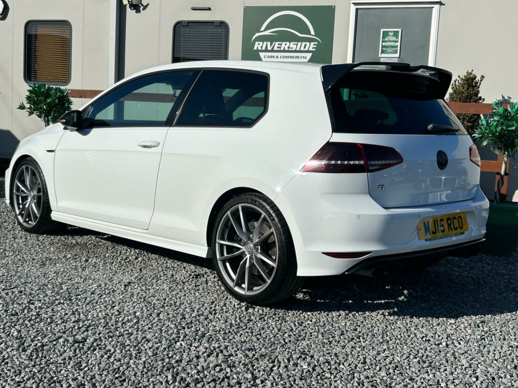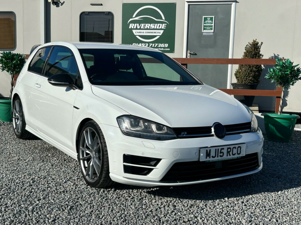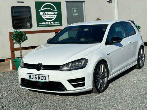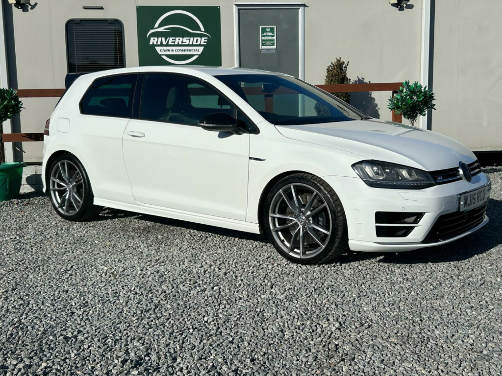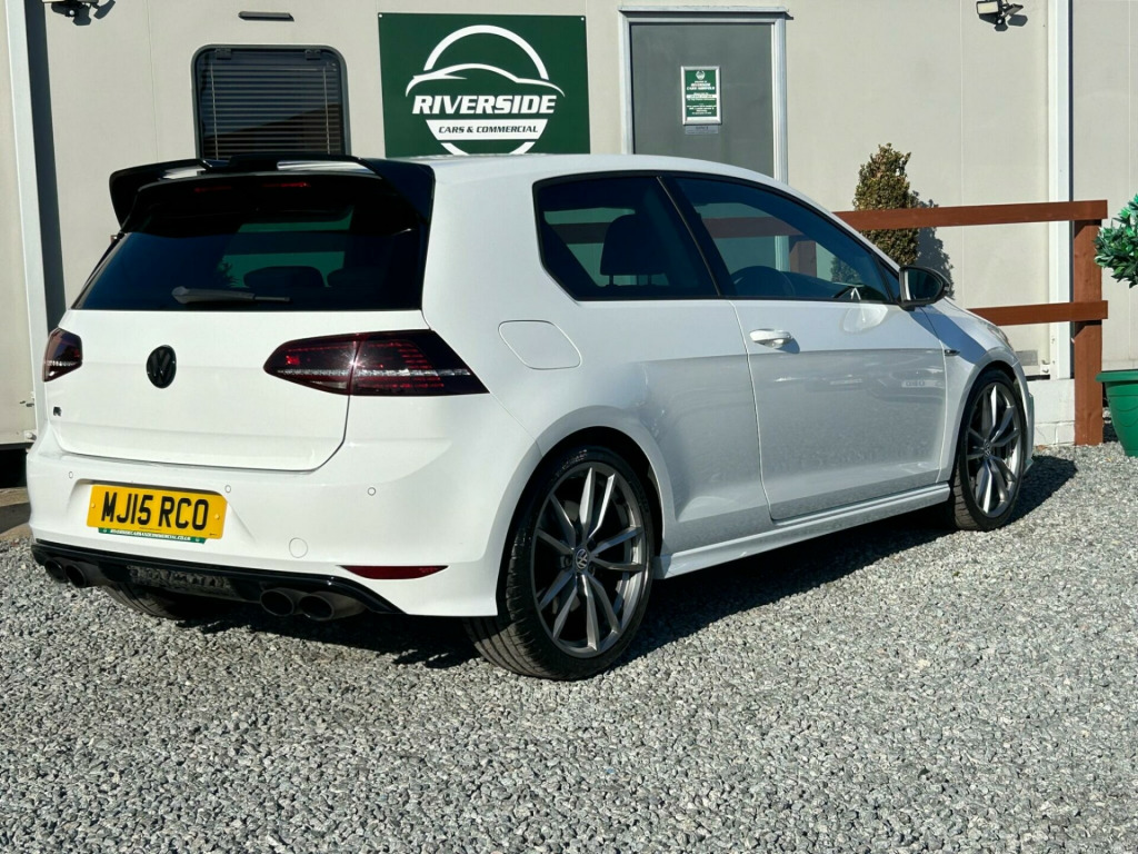 Finished In White This 2015 Volkswagen Golf R presents an exceptional opportunity with remarkably low mileage for its age, having covered just 70,000 miles. As a TSI R variant with the R trim, this four wheel drive model boasts a powerful 2.0 litre petrol engine and meets Euro 6 emission standards. It comes equipped with advanced Bi-Xenon headlights that automatically adjust to dusk conditions, along with rear parking sensors to aid manoeuvrability. Inside, you'll find the convenience of Bluetooth connectivity for seamless phone integration and a 2 zone electronic climate control system for personalised comfort.The performance of this Golf R is truly a standout feature, evidenced by its impressive 0-62mph acceleration time of just 4.9 seconds, demonstrating its dynamic capabilities. This quick acceleration indicates a level of performance that sets it apart from many other vehicles in its class. Furthermore, the generous boot space offers practicality for everyday use and longer journeys, making it a versatile choice., v socket, 12v socket - luggage compartment, 18in alloy wheels - cadiz, 2 zone electronic climate control with automatic air recirculation, abs - anti-lock braking system, asr - anti slip regulation, air vent surrounds - chrome effect, airbags - curtain front and rear, airbags - driver, airbags - drivers knee, airbags - front passenger, airbags - front passenger with deactivation switch, airbags - front seat side impact, alarm with interior protection, ambient lighting, anti-theft wheel bolts, anti-tramp function for esp, armrest - front centre with ventilation nozzles x2, automatic dimming rear view mirror, automatic post-collision braking system, aux-in socket, bluetooth telephone preparation, body coloured bumpers and door handles, body coloured side sills, brake calipers - gloss black, brake pad wear indicator, bumpers - front and rear - uniquely shaped, carpet mats - front and rear, central locking - remote with 2 remote keys, chrome air inlets, chrome trimmed front air intake grille surround, city emergency braking system, composition media system, convenience pack, cruise control, cup holders - front and rear, cup holders - front x2, cup holders - rear x2, dab - digital radio reception, dashboard - gloss black panel, daytime running lights - led, differential lock - electronic, door mirrors - chrome plated, door mirrors - electrically adjustable-heated and folding, door mirrors - puddle lights, door mirrors - reverse activated kerb view adjustment on passengers, door panels - cyclone decorative inserts, driver alert system, driver profile choices, dust and pollen filter, dynamic curve lighting, esp - electronic stability programme, electric windows - front, electronic engine immobiliser, electronic parking brake with auto hold function, exhaust tailpipes - chrome left and right, first-aid kit and warning triangle - holder only, footwell illumination - front, front assist including city emergency braking, front seat back storage pockets, glovebox - illuminated - cooled - lockable, grab handles - front x2 rear x2 with coat hooks, hba - hydraulic brake assist, head restraints - front whiplash optimised, headlight washer system, headlights - bi-xenon - gas discharged, headlights - coming-leaving home function, headlights - dusk sensor - automatic driving lights, headlining - black, height and reach adjustable steering column, high level 3rd brake light - led, isofix child seat preparation for 2 rear seats, instrument lighting - white adjustable panel illumination, interior lighting delay, led rear number plate lights, leather trimmed handbrake grip, lighting dial - chrome look, lights on warning buzzer, load lashing points x4 in luggage compartment, load-through provision, luggage compartment - hooks, luggage compartment cover, luggage compartment light, luggage compartment storage area on right, mdi - multi device interface with usb - ipod connection cables, mirror pack, multifunction computer - colour, multiple impact brake activation, optical parking display via vehicles audio system, parking sensors - front, parking sensors - rear, pedals - stainless steel, power assisted steering - speed sensitive, pre-crash preventive occupant protection, r styling pack, radar sensor controlled distance monitoring system, radiator grille - chrome outline around the logo, radiator grille - chrome plated strip, radio & single cd player mp3 compatible, radio aerial integrated into rear windscreen, rain sensor, reading lights front x2 and rear x2 - led, rear centre armrest, rear diffuser - black with chrome exhaust tailpipes left and right, rear tail lights - led, sd card reader, safeguard against incorrect fuel, seatbelt reminder, seats - easy entry sliding front, seats - front lumbar support, seats - front sports, seats - front sports with r logo on head restraints, seats - height adjustment - front, seats - rear backrest with automatic folding, service interval display, smoked rear light clusters, spare wheel - space saver steel, speakers x8, specific aluminium inlay, split folding rear backrests 60-40, spoiler - tailgate, static cornering function, steering wheel - 3-spoke - leather trimmed - multifunction with r logo, steering wheel - audio controls, storage - cover for area in roof console, storage compartment in centre console covered, storage compartment in front doors, storage compartment in roof console, styling pack for r, sun visors - vanity mirrors and illuminated, suspension - r sports, temperature display - external, three rear head restraints, tinted glass - heat insulating rear 65 percent light absorbing from b pillar backwards, traffic sign recognition, tyre pressure indicator, under seat drawers - front, unique side sills, variable boot floor, windscreen wipers with intermittent wipe and 4 position delay, xds electronic differential lock