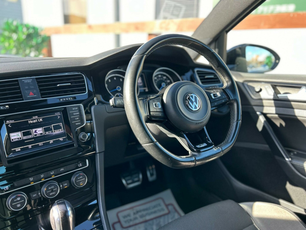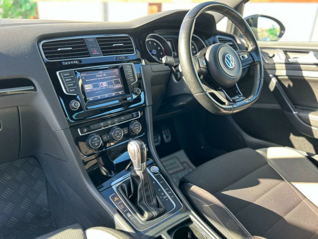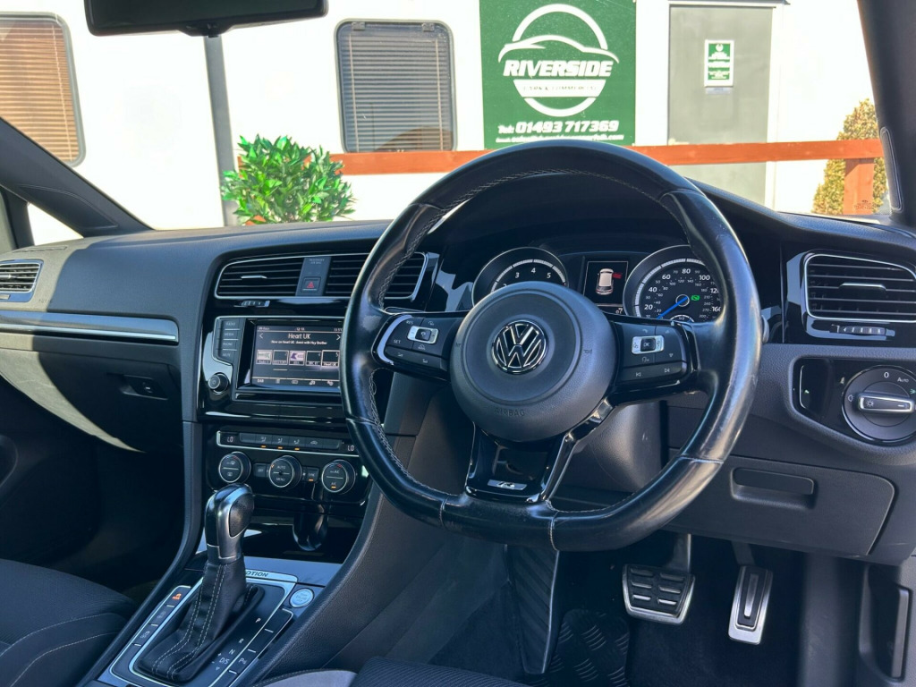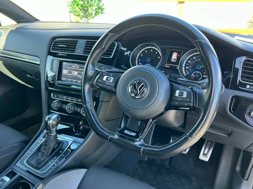 Finished In White This 2015 Volkswagen Golf R presents an exceptional opportunity with remarkably low mileage for its age, having covered just 70,000 miles. As a TSI R variant with the R trim, this four wheel drive model boasts a powerful 2.0 litre petrol engine and meets Euro 6 emission standards. It comes equipped with advanced Bi-Xenon headlights that automatically adjust to dusk conditions, along with rear parking sensors to aid manoeuvrability. Inside, you'll find the convenience of Bluetooth connectivity for seamless phone integration and a 2 zone electronic climate control system for personalised comfort.The performance of this Golf R is truly a standout feature, evidenced by its impressive 0-62mph acceleration time of just 4.9 seconds, demonstrating its dynamic capabilities. This quick acceleration indicates a level of performance that sets it apart from many other vehicles in its class. Furthermore, the generous boot space offers practicality for everyday use and longer journeys, making it a versatile choice., v socket, 12v socket - luggage compartment, 18in alloy wheels - cadiz, 2 zone electronic climate control with automatic air recirculation, abs - anti-lock braking system, asr - anti slip regulation, air vent surrounds - chrome effect, airbags - curtain front and rear, airbags - driver, airbags - drivers knee, airbags - front passenger, airbags - front passenger with deactivation switch, airbags - front seat side impact, alarm with interior protection, ambient lighting, anti-theft wheel bolts, anti-tramp function for esp, armrest - front centre with ventilation nozzles x2, automatic dimming rear view mirror, automatic post-collision braking system, aux-in socket, bluetooth telephone preparation, body coloured bumpers and door handles, body coloured side sills, brake calipers - gloss black, brake pad wear indicator, bumpers - front and rear - uniquely shaped, carpet mats - front and rear, central locking - remote with 2 remote keys, chrome air inlets, chrome trimmed front air intake grille surround, city emergency braking system, composition media system, convenience pack, cruise control, cup holders - front and rear, cup holders - front x2, cup holders - rear x2, dab - digital radio reception, dashboard - gloss black panel, daytime running lights - led, differential lock - electronic, door mirrors - chrome plated, door mirrors - electrically adjustable-heated and folding, door mirrors - puddle lights, door mirrors - reverse activated kerb view adjustment on passengers, door panels - cyclone decorative inserts, driver alert system, driver profile choices, dust and pollen filter, dynamic curve lighting, esp - electronic stability programme, electric windows - front, electronic engine immobiliser, electronic parking brake with auto hold function, exhaust tailpipes - chrome left and right, first-aid kit and warning triangle - holder only, footwell illumination - front, front assist including city emergency braking, front seat back storage pockets, glovebox - illuminated - cooled - lockable, grab handles - front x2 rear x2 with coat hooks, hba - hydraulic brake assist, head restraints - front whiplash optimised, headlight washer system, headlights - bi-xenon - gas discharged, headlights - coming-leaving home function, headlights - dusk sensor - automatic driving lights, headlining - black, height and reach adjustable steering column, high level 3rd brake light - led, isofix child seat preparation for 2 rear seats, instrument lighting - white adjustable panel illumination, interior lighting delay, led rear number plate lights, leather trimmed handbrake grip, lighting dial - chrome look, lights on warning buzzer, load lashing points x4 in luggage compartment, load-through provision, luggage compartment - hooks, luggage compartment cover, luggage compartment light, luggage compartment storage area on right, mdi - multi device interface with usb - ipod connection cables, mirror pack, multifunction computer - colour, multiple impact brake activation, optical parking display via vehicles audio system, parking sensors - front, parking sensors - rear, pedals - stainless steel, power assisted steering - speed sensitive, pre-crash preventive occupant protection, r styling pack, radar sensor controlled distance monitoring system, radiator grille - chrome outline around the logo, radiator grille - chrome plated strip, radio & single cd player mp3 compatible, radio aerial integrated into rear windscreen, rain sensor, reading lights front x2 and rear x2 - led, rear centre armrest, rear diffuser - black with chrome exhaust tailpipes left and right, rear tail lights - led, sd card reader, safeguard against incorrect fuel, seatbelt reminder, seats - easy entry sliding front, seats - front lumbar support, seats - front sports, seats - front sports with r logo on head restraints, seats - height adjustment - front, seats - rear backrest with automatic folding, service interval display, smoked rear light clusters, spare wheel - space saver steel, speakers x8, specific aluminium inlay, split folding rear backrests 60-40, spoiler - tailgate, static cornering function, steering wheel - 3-spoke - leather trimmed - multifunction with r logo, steering wheel - audio controls, storage - cover for area in roof console, storage compartment in centre console covered, storage compartment in front doors, storage compartment in roof console, styling pack for r, sun visors - vanity mirrors and illuminated, suspension - r sports, temperature display - external, three rear head restraints, tinted glass - heat insulating rear 65 percent light absorbing from b pillar backwards, traffic sign recognition, tyre pressure indicator, under seat drawers - front, unique side sills, variable boot floor, windscreen wipers with intermittent wipe and 4 position delay, xds electronic differential lock