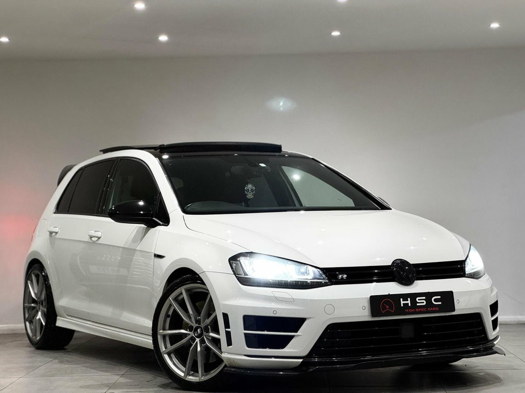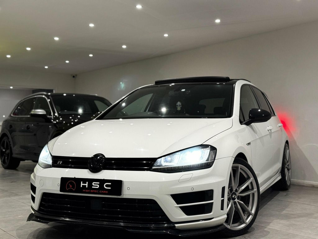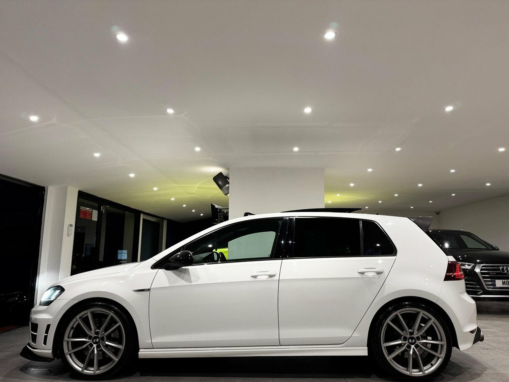 This Volkswagen Golf R presents a clear vehicle history, offering peace of mind alongside its impressive performance. Registered in 2016, this four wheel drive R trim model boasts a potent 2.0 litre petrol engine, meeting Euro 6 emission standards. It features a desirable panoramic sunroof, which can be opened for an enhanced driving experience, and the advanced DCC Dynamic Chassis Control system for adaptable handling. Further enhancing its appeal are the striking 19 inch Pretoria alloy wheels, a rear view camera for easier parking, and a winter pack that includes heated seats, all complementing the bi xenon headlights. The Golf R truly stands out with its exhilarating acceleration, achieving 0 to 62 miles per hour in a swift 4.9 seconds, a testament to its performance capabilities. This rapid acceleration indicates a level of dynamism that surpasses many other vehicles in its class. Practicality is not overlooked, with a generously sized boot offering ample space for luggage or shopping. This combination of thrilling performance, advanced technology, and everyday usability makes this 2016 Volkswagen Golf R a compelling choice. 12V Socket, 12V Socket - Luggage Compartment, 18in Alloy Wheels - Cadiz, 19in Alloy Wheels - Pretoria, 2 Zone Electronic Climate Control with A, ABS - Anti-Lock Braking System, Air Vent Surrounds - Chrome Effect, Airbags - Curtain Front, Airbags - Curtain Rear, Airbags - Driver, Airbags - Drivers Knee, Airbags - Front Passenger, Airbags - Front Passenger with Deactivat, Airbags - Front Seat Side Impact, Alarm with Interior Protection, Ambient Lighting - Blue, Ambient Lighting Pack, Anti-Theft Wheel Bolts, Anti-Tramp Function for ESP, Armrest - Front Centre with Storage Comp, ASR - Anti Slip Regulation, Automatic Dimming Rear View Mirror, Automatic Post-Collision Braking System, Bluetooth Aud