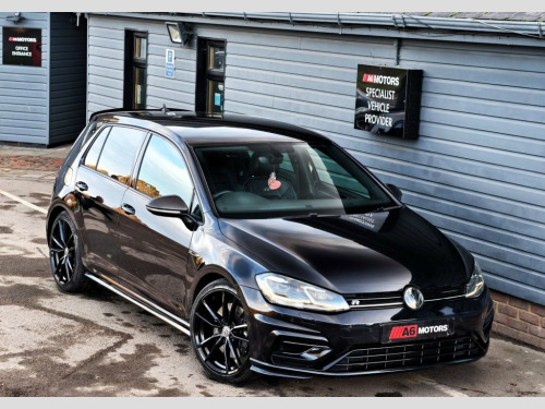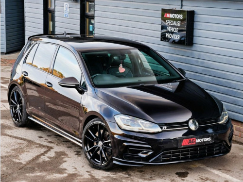 SAME DAY FINANCE AVAILABLE WITH £0 DEPOSIT. CALL OUR FINANCE TEAM FOR A QUOTATION TODAY. REQUEST A PERSONALISED VIDEO TODAY. STUNNING VW GOLF R BOASTING A FULL SERVICE HISTORY & COMPLIMENTED BY A GOOD FACTORY SPEC. THIS LOVELY EXAMPLE IS SUPPLIED HPI CLEAR & WITH A NATIONWIDE WARRANTY. GOOD CONDITION THROUGH OUT. DRIVES WELL. Extended Warranty - 5 Years, Vienna Leather - Black, Discover Navigation Pro Touch-Screen Nav, Deep Black, 19in Alloy Wheels - Pretoria - Silver, 19in Alloy Wheels - Pretoria - Black, 12V Socket - Luggage Compartment, 18in Alloy Wheels - Cadiz, ABS - Anti-Lock Braking System with HBA , Active Info Display, Adaptive Cruise Control, Airbags, Alarm, Aluminium Centre Console Inlay - R Speci, Ambient Lighting Pack, Anti-Tramp Function, Auto-Fold Down Lever in Rear Seat Backre, Automatic Coming-Leaving Home Lighting F, Automatic Post-Collision Braking System, Bag Hooks in the Luggage Compartment, Blue Styling Line Through Bumper and Hea, Body Coloured Bumpers, Body Coloured Door Handles, Body-Colo