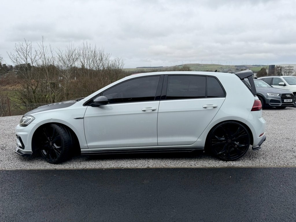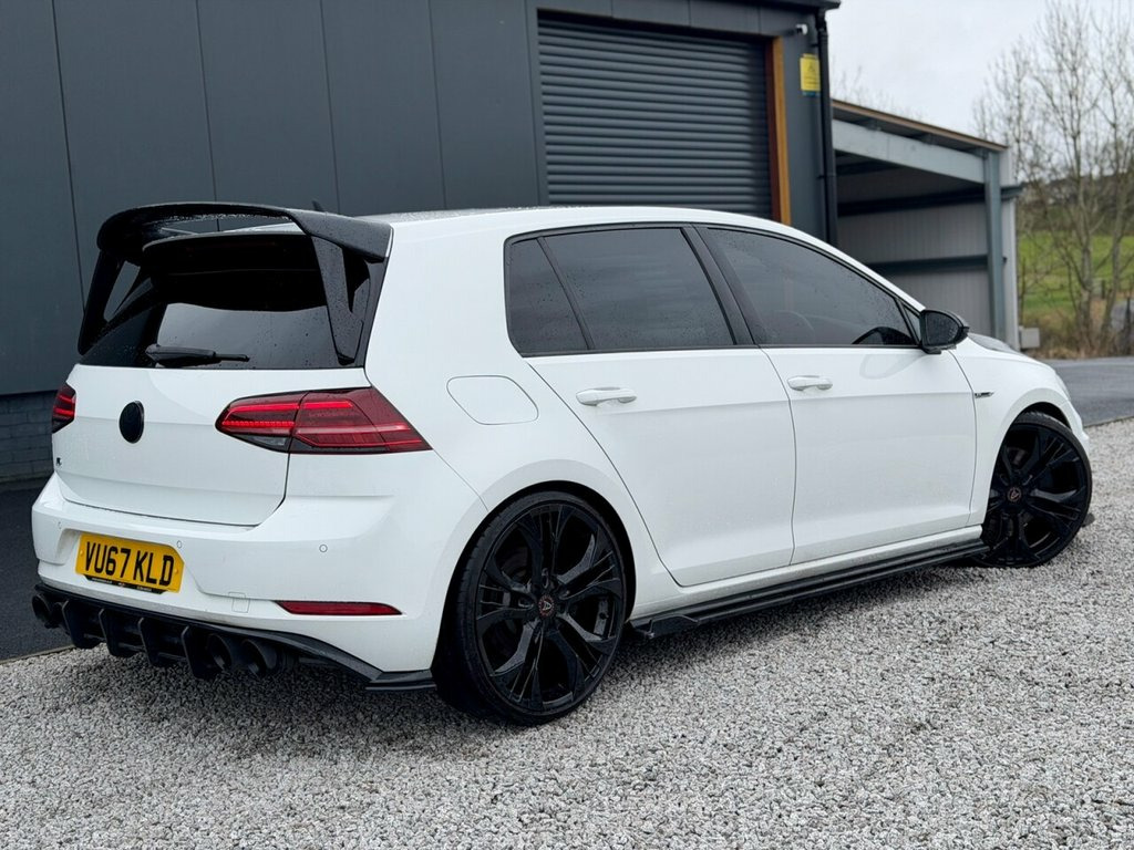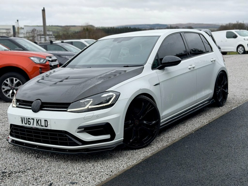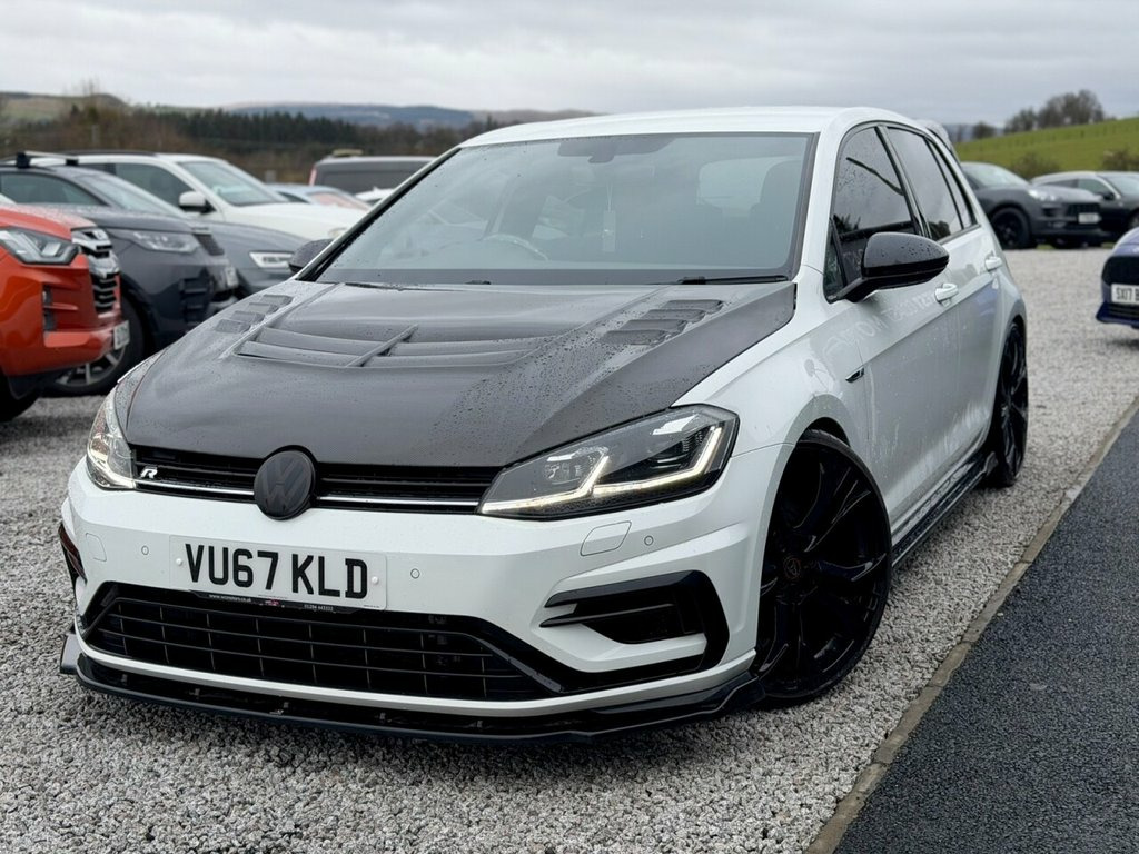 2017 (67) VOLKSWAGEN GOLF R DSG MK7.5 STAGE 3 521BHP West Coast Motors are proud to be supplying this stunning 2017 (67) Volkswagen Golf R MK7.5, finished in White with heated black cloth/alcantara interior. This example has covered just 46k miles from new with service history present with main dealer and most recently Ecotune. The interior and exterior are all in very good condition with minimal wear throughout, one small mark on the front wing is noted which is being rectified prior to sale - otherwise immaculate. Great factory spec including but not limited to heated seats, adaptive cruise control with limiter, power fold mirrors, DSG gearbox, bi-xenon headlights, LED rear lights with sequential indicators, apple car play, sat nav and more. Faultless on the road, this car has been treated to a stage 3 performance upgraded which is currently running 521bhp with all supporting modifications. Wagner intercooler, H&R lowering springs, Fast line fl550 turbo. Further modifications include a carbon bonnet, Eventuri intake, Wolfrace Assassin GT2 alloys with Michelin pilot sport 4 tyres all round, Eventuri Intake, power flex insert dog bone mount, maxton low line kit, aftermarket spoiler and more! A well sorted example which has been totally enthusiast owned. 2 keys supplied Get in touch to reserve your new car today! 3 months Warranty as standard Part exchange welcome Low rate finance Debit/credit cards accepted 01294 443333 www.wcmotors.co.uk 12V Socket - Luggage Compartment, 18in Alloy Wheels - Cadiz, ABS - Anti-Lock Braking System with HBA , Active Info Display, Adaptive Cruise Control, Airbags, Alarm, Aluminium Centre Console Inlay - R Speci, Ambient Lighting Pack, Anti-Tramp Function, Auto-Fold Down Lever in Rear Seat Backre, Automatic Coming-Leaving Home Lighting F, Automatic Post-Collision Braking System, Bag Hooks in the Luggage Compartment, Blue Styling Line Through Bumper and Hea, Body Coloured Bumpers, Body Coloured Door Handles, Body-Coloured Roof Spoiler - Rear, Brake Calipers - Black with R Logo, Brake Pad Wear Indicator, Car-Net App Connect, Carpet Mats, Centre Console - Piano Black, Child Security Locks in the Rear