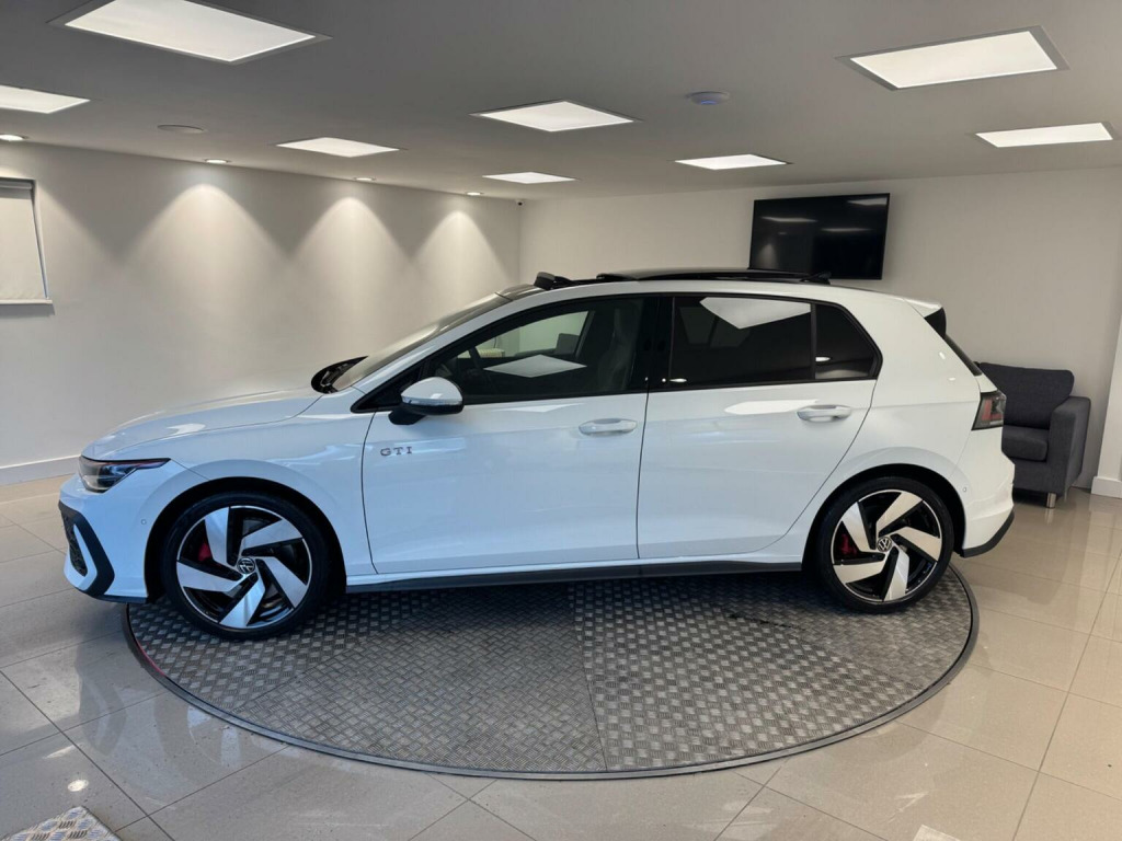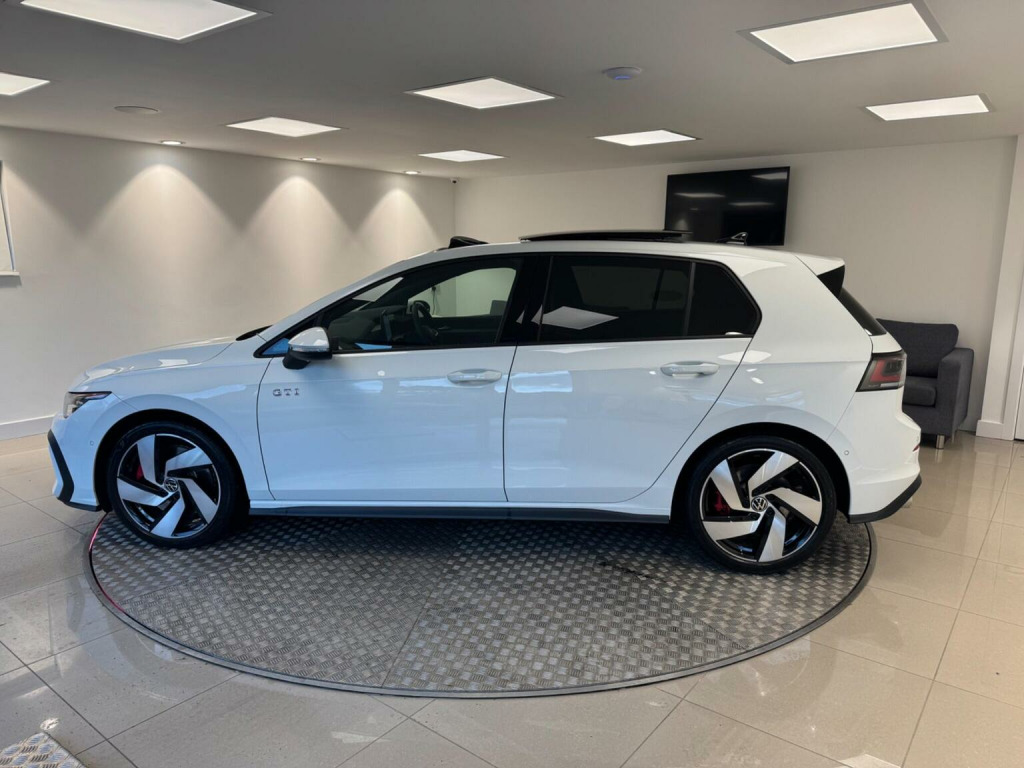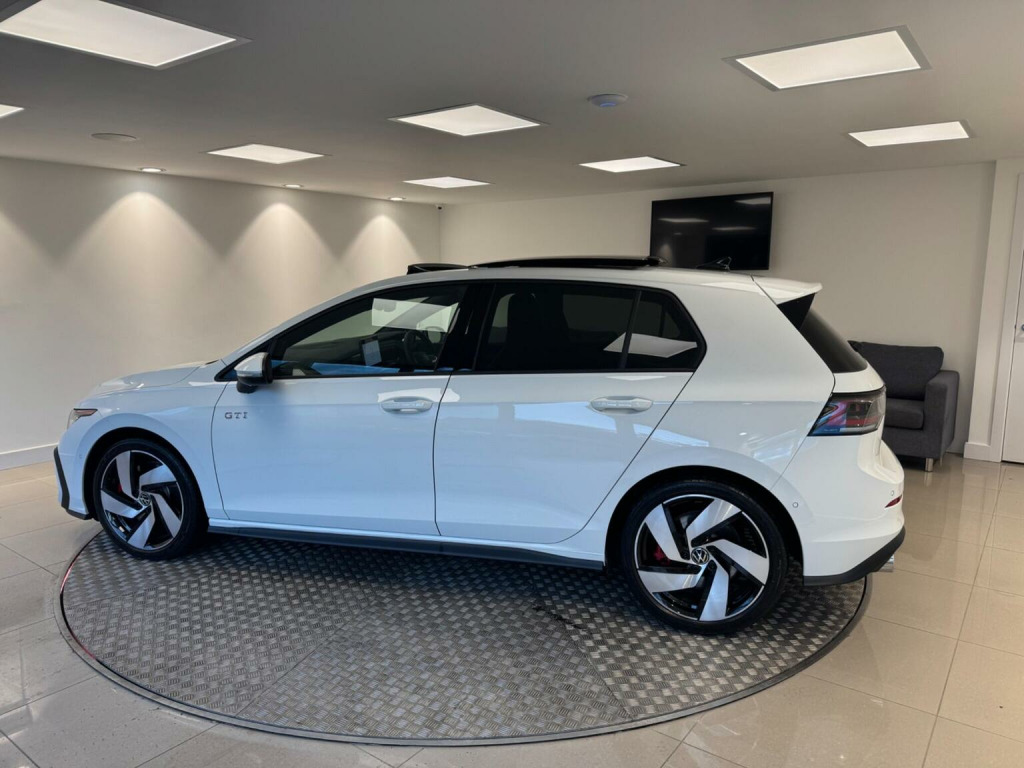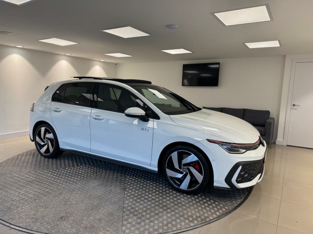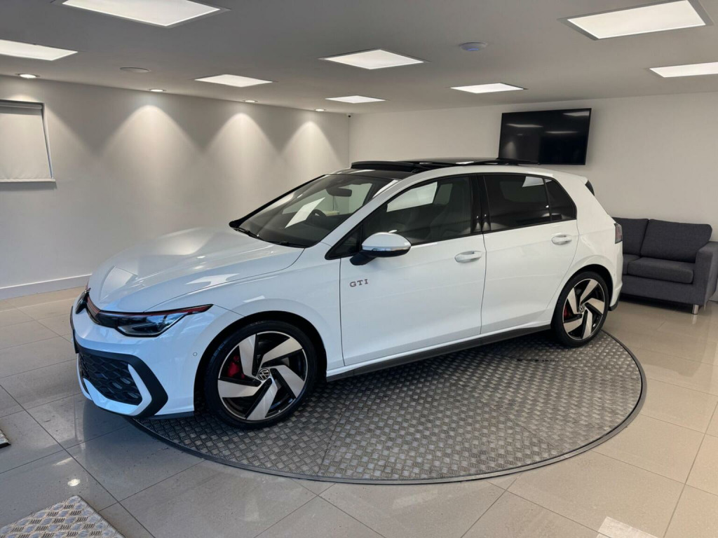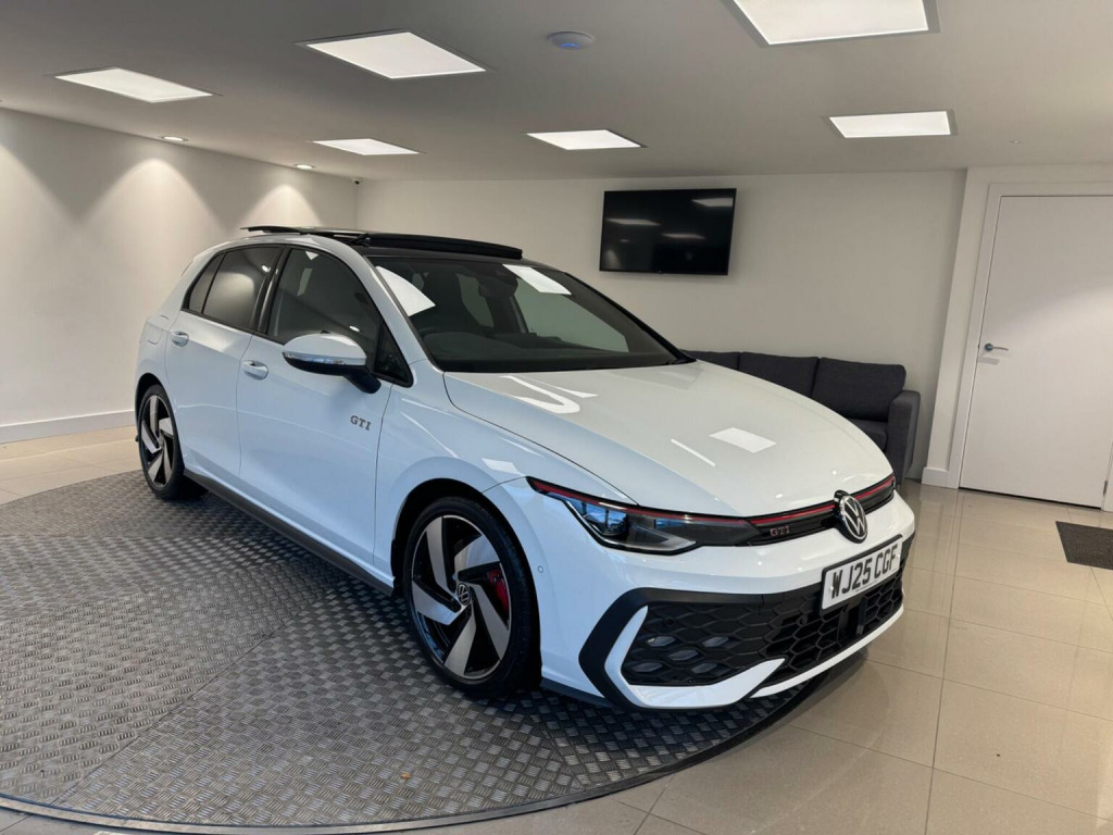 This 2025 Volkswagen Golf TSI GTI presents an exceptional opportunity with an incredibly low mileage of just 2000 miles,This Gti has been owned by husband and wife from new, making it practically new for its registration year. Powered by a dynamic 2.0 litre petrol engine and meeting Euro 6 emission standards, this GTI trim model offers a thrilling driving experience. Inside, youll find a host of premium features designed for comfort and convenience, including a panoramic sunroof that opens up the cabin, and heated front seats for those cooler days. Stay connected and charged with inductive smartphone charging, and enjoy a perfectly controlled environment thanks to the Air Care Climatronic 3 zone system with rear air conditioning controls. The leather wrapped, sports multifunction steering wheel is also heated and features touch controls, adding a touch of luxury and advanced functionality. The performance of this Volkswagen Golf TSI GTI is truly impressive, with a rapid 0-62mph acceleration time of just 5.9 seconds, demonstrating its sporty capabilities. This quick acceleration highlights how this vehicle offers a more engaging drive compared to many similar cars. Beyond its speed, the Golf provides ample practicality with its large boot space, making it suitable for everyday use and longer journeys alike. These combined attributes of exhilarating performance, advanced technology, and generous practicality make this 2025 Volkswagen Golf TSI GTI a standout choice.