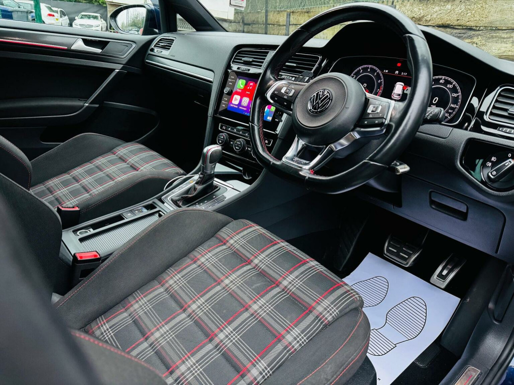 We are proud to present you this beautiful Volkswagen Golf 2.0 TSI GTI, highly maintained and in great condition both mechanically and cosmetically, comes with a free 12-month MOT upon request, 6 Months Nationwide warranty parts & labour. SPEC – 18-inch Alloy Wheels, Heated front seats, Digital cockpit, Adaptive cruise control, Touch multimedia screen with apple CarPlay and android auto, Apps, Enhanced Telephone preparation, Navigation, Bluetooth, AUX, CD player, DAB/FM/AM Radio, USB, front and rear parking sensors, ISOFIX and much more. HISTORY & CONDITION – Free 12-month MOT upon request, Free 6-month warranty. It comes with all the paperwork and full service history, last serviced at 78K Miles. DSG gearbox serviced this year at 79k miles. HPI Clear. The car is in great condition inside and outside, video of the car also available on our website. FINANCE – We also provide finance at competitive rates, give us a call for a free finance quote over the phone, from our panel of over 100 lenders. You can drive away the same day. ABOUT US - We also take all types of part exchanges – Video viewing - Nationwide delivery - We take all major cards for payment - As standard all vehicles are supplied with a warranty which covers parts & labour valid nationwide (with an option to extend up to 48 months at an additional cost). We are based in Farnham, GU10 4JX. Please be aware that if you reserve this car on-line via the Autotrader reserve the car may already be sold, as our cars are advertised on many platforms. Auto trader reservation is not linked to our own systems and does not guarantee reservation of the car. Please contact us directly via a phone call, email, or WhatsApp to check the availability of the car and to reserve it.