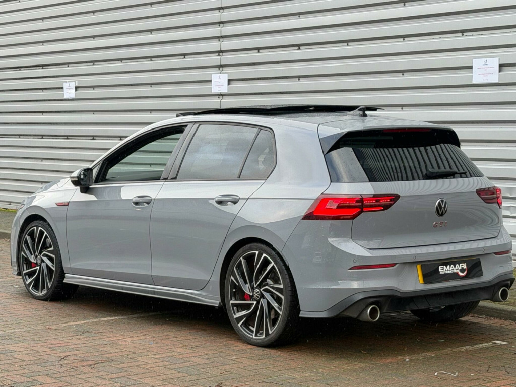 This 2020 Volkswagen Golf TSI GTI presents a compelling blend of performance and practicality, boasting a powerful 2.0 litre petrol engine and meeting Euro 6 emission standards. This particular model features a desirable panoramic sunroof, perfect for enjoying the open sky, and stylish 19 inch Estoril Black diamond turned alloy wheels. Navigating your journeys is made simple with the Discover Navigation system, which includes Bluetooth connectivity for seamless phone integration. Furthermore, the IQ Light LED Matrix headlights with dynamic cornering and automatic dusk sensing ensure excellent visibility in all conditions.Experience exhilarating performance with this Golf GTI, capable of accelerating from 0 to 62 miles per hour in just 6.2 seconds, a testament to its sporty nature. This impressive acceleration highlights its advantage over many other vehicles in its class. Beyond its speed, the Golf GTI offers ample space for your luggage, making it a versatile choice for both daily commutes and longer trips. noramic sunroof, winter pack - heated steering wheel, discover pro navigation system including streaming and internet, airbags - rear side, 19in alloy wheels - adelaide black diamond-turned, 12v socket - front centre console, 12v socket in luggage compartment, 18in alloy wheels - richmond, 3 rear three-point seat belts, abs - anti-lock braking system with hba - hydraulic brake assist, adaptive cruise control, advanced high-beam control dynamic light assist for led matrix headlights, airbags, alarm with interior protection with deactivation via infotainment system, aluminium gearshift knob and handle, app-connect, automatic coming-leaving home lighting function, automatic post-collision braking system, black metal chrome decorative inserts in dash and front door panels, body coloured bumpers, body coloured door handles and mirrors with integrated indicators, body coloured rear spoiler, car2x, carpet mats - front and rear, chrome exhaust tailpipe - left and right, chrome-plated surround to electric mirror button - window switch and air vent surrounds, climate control, cup holders - front x2, digital cockpit - 10.25in high resolution tft dash display screen with customisable menus and information, discover navigation system, driver alert system, drivers and front passengers safety optimised head restraints, drivers and front passengers sun visors with vanity mirrors, driving profile select, dusk sensor - automatic driving lights, dynamic headlight range control, dynamic road sign display, esc - electronic stability control, electric windows - front and rear, electronic engine immobiliser, electronic parking brake with auto hold function, front centre armrest with storage compartment, front differential lock, front sport seats with height and lumbar adjustment, front windscreen washers and wipers with 4 speeds including interval delay, glovebox, heat insulating tinted glass in side and rear windows, heat insulating windscreen, heated rear windscreen, height adjustable front three-point seat belts with tensioners, height and reach adjustable steering wheel, high level 3rd brake light incorporating led technology, highway light, iq light led matrix headlights includes dynamic cornering, isofix child seat preparation, illuminated front grille, interior ambient lighting, keyless entry - with start-stop button, led front fog lights - 5-honeycomb design, led license plate illumination, led rear combination lights with dynamic turn signal, lane change assist, leather-wrapped multi-function sports steering wheel - heated with paddle shift, luggage compartment cover - stowable, luggage compartment light, mobile phone interface with wireless inductive charging function, multifunction camera for distance control, parking sensors - front and rear, pedals - brushed stainless steel, predictive pedestrian protection, premium usb cable, progressive steering, r-line door and side trim panel, r-line front seats integrated head restraints, rain sensor and automatic dimming rear-view mirror, reading lights front x2 and rear x2 - led, rear fog light on one side and reversing lights on both sides, rear screen wash-wipe with intermittent wipe, rear tinted glass, remote central locking with safelock and keyless go start-stop button, remote electrically foldable door mirrors - door mirror puddle lights and reverse activated kerb-view adjustment on passengers door mirrors, speedo and rev counter - electronic odometer - trip - service interval display - exterior temperature gauge and fuel gauge, split folding backrest - unsplit rear seat bench, sports suspension, storage compartment in centre console, three rear head restraints, travel assist with emergency assist including side assist, two-tone horn, tyre mobility kit, tyre pressure monitoring system, unquie gti styled bumpers, warning buzzer and light for front seat belts if unfastened, welcome light, woven fabric storage compartments in front and rear doors, xds electronic differential lock for improved traction and handling, ecall - emergency call service for sos calls to emergency response