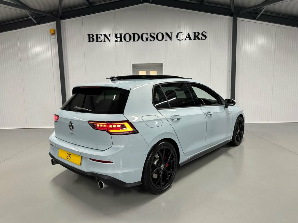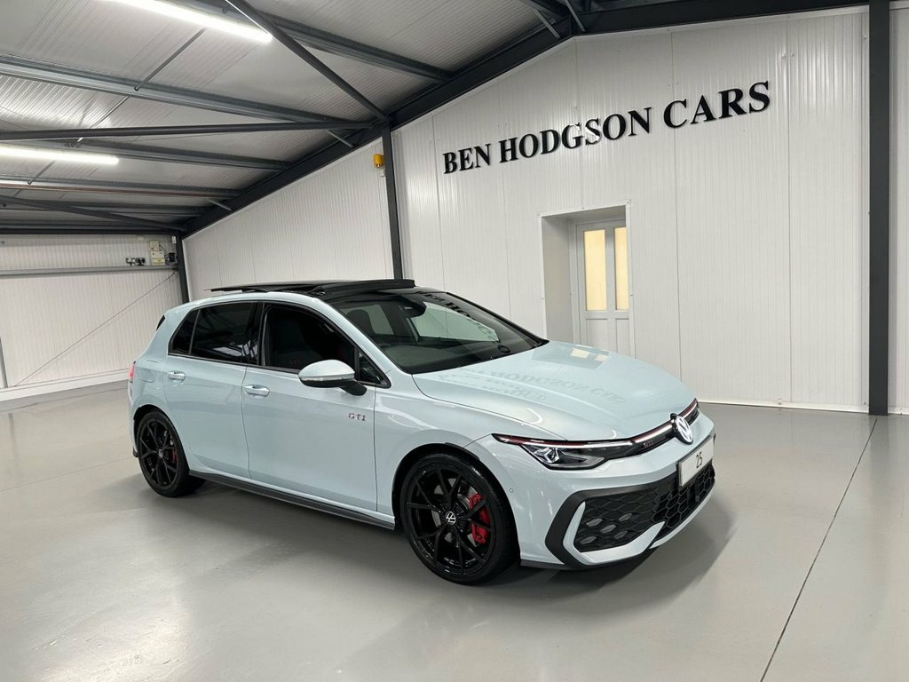 Stunning 2025 Volkswagen Golf 2.0 TSI GTI DSG Auto 265 ps. Finished In The Rare Crystal Ice Blue Metallic With GTI Cloth Trim. Covered Just 9,000 Miles From New With Balance Of Volkswagen Warranty Until 2028. 1 Owner From New In Excellent Condition Throughout. Great Specification Including: Tilt & Slide Panoramic Roof, Satellite Navigation, DAB Radio, Bluetooth Telephone & Streaming, Reverse Camera, Heated Seats, Heated Steering Wheel, Privacy Glass, 19" Upgrade Alloy Wheels, LED IQ Lights Plus More. Please Call To Arrange Your Personal Appointment. Low Rate Finance & Part Exchange Options Available. 19in Alloy Wheels - Estoril Black, Area View and Rear-View Camera, Tilting and Sliding Panoramic Sunroof