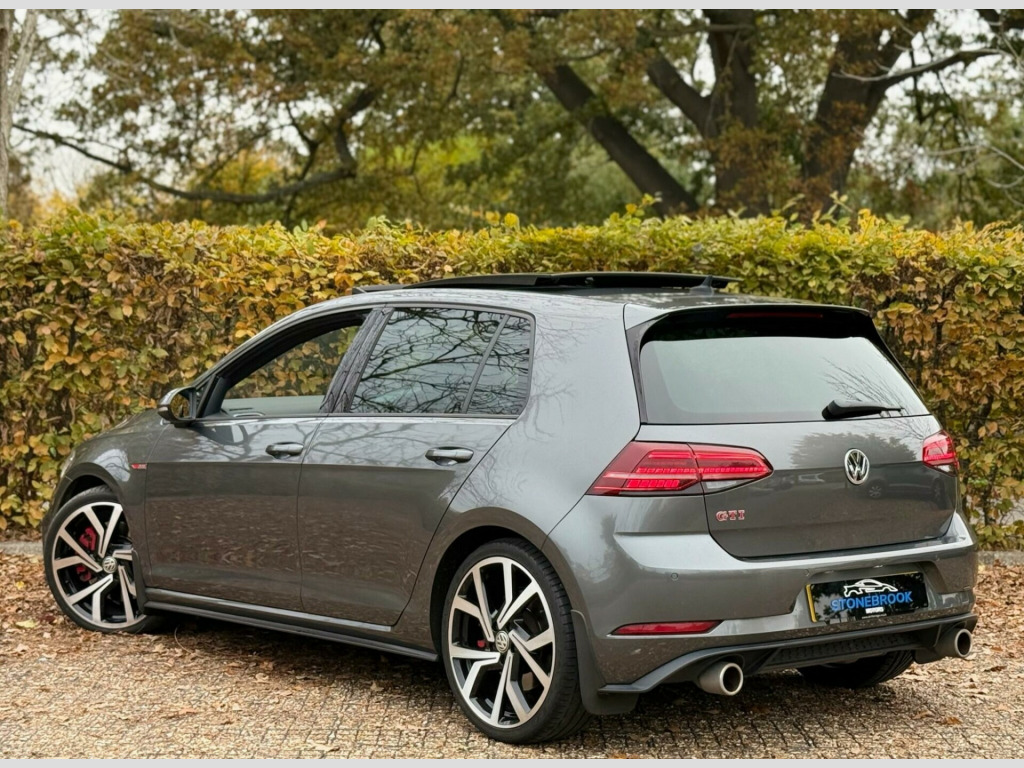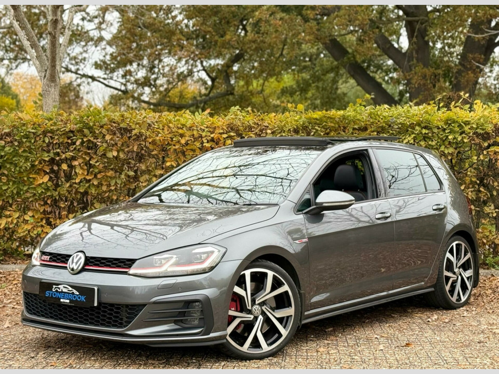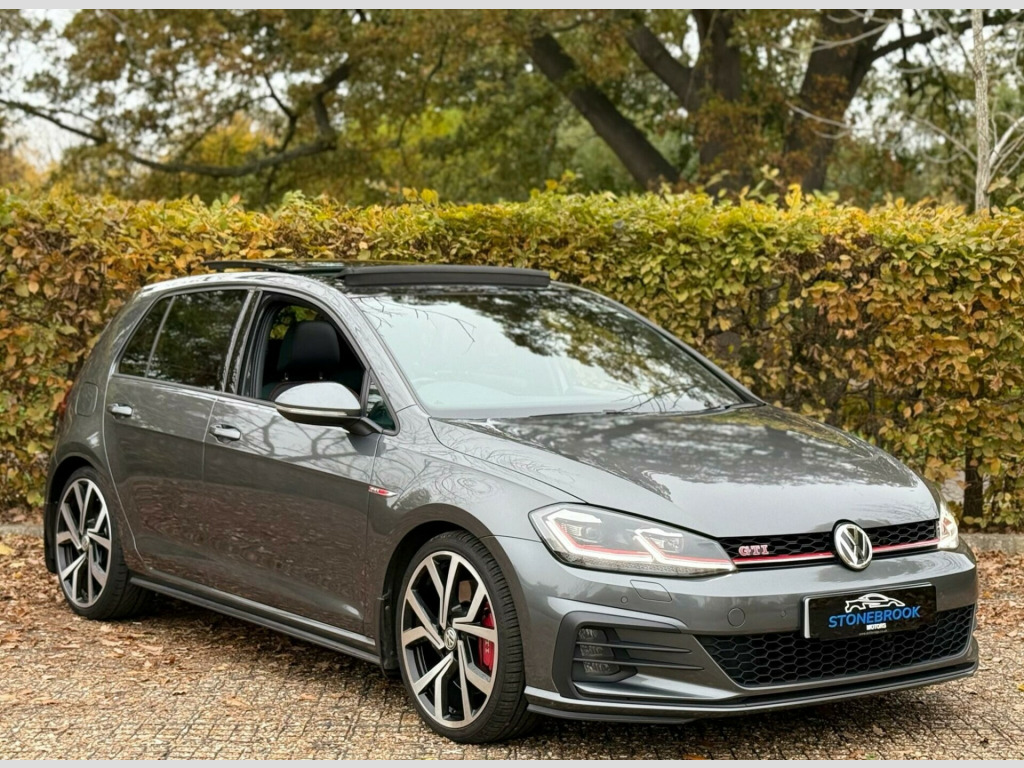 2019 Volkswagen Golf 2.0 TSI GTI Performance DSG - 53,500 miles - £19,289Finished in a stunning Grey Metallic, this Golf GTI Performance combines refined styling with everyday practicality and high performance. Immaculately maintained with full service history, including a recent major service, brake fluid change, this example is ready to drive away with confidence.All four diamond cut alloys have just been fully refurbished, and the bodywork is in exceptional condition for its age and mileage.?Spec Highlights Include: • Leather Seats• Panoramic Sliding Sunroof• Alloy Wheels - Fully Refurbished• Gloss Black Exterior Styling Pack (mirrors, diffuser, trim)• Heated Front Seats• Driving Mode Selection• Front & Rear Parking Sensors• Rear View Camera • LED Headlights with Dynamic Cornering• Adaptive Cruise Control• App-Connect with Apple CarPlay / Android Auto• Adaptive Cruise Control• Electrically Heated & Adjustable Mirrors with Memory?Dealer Benefits Included:• ULEZ Compliant• Full Service History• Just Serviced • 12 Months MOT• 6-Month Warranty Included (Extendable to 3 Years)• HPI Clear• £0 Deposit Finance Options Available• Competitive Part Exchange Welcome• Nationwide Delivery AvailableThis is a well-maintained, tastefully specced Golf GTI Performance with standout features and specialist care. Contact us today to arrange a viewing, finance quote, or reserve the vehicle.Stonebrook Motors - Performance & Prestige, Delivered. rk assist, 19in alloy wheels - brescia, panoramic sunroof, smoking pack, vienna leather - black-red, 12v socket - luggage compartment, 18in alloy wheels - parker, abs - anti-lock braking system with hba - hydraulic brake assist, active info display, adaptive cruise control, airbags, alarm with interior protection, ambient lighting, ambient lighting pack, anti-tramp function, automatic coming-leaving home lighting function, automatic post-collision braking system, bag hooks in the luggage compartment x2, black rooflining, body coloured bumpers, body coloured door handles, body-coloured door mirrors with integrated indicators, brake calipers - red with gti logo, brake pad wear indicator, car-net app connect, car-net security and service including ecall, carpet mats - front and rear, child security locks in the rear doors, chrome plated air vent surrounds, chrome plated electric mirror adjustment switch surround, chrome plated electric window button surrounds, chrome trimmed front air intake surround, chrome-plated light switch surround, climate control, composition media system, convenience pack, cover for storage compartment in centre console, cup holders - front x2, discover navigation touch-screen navigation-radio system with car-net guide and inform, driver alert system, driver personalisation profile, drivers and passengers safety optimised head restraints, driving mode selection, dusk sensor - automatic driving lights, dust and pollen filter, esc - electronic stability control including edl - electronic differential lock and asr - traction control with deactivation via infotainment system, electric windows - front and rear, electronic engine immobiliser, electronic parking brake with auto hold function, extended sill strips - flared, front assist, front centre armrest with storage compartment and two rear air vents, front fog lights - led, front footwell illumination, front seat back storage pockets, front sport seats with height and lumbar adjustment, gti sports suspension - lowered, gti styling pack, galvanised body, glovebox - cooled, grab handles - front x2 rear x2 with coat hooks, headlight washers, heated front seats, heated rear windscreen, heated windscreen washer jets, height-adjustable front three-point seat belts with tensioners, high level 3rd brake light incorporating led technology, honeycomb black decorative inserts in dash and door panels, honeycomb radiator grille with red stripe, isofix child seat preparation for 2 rear seats, illuminated door sill protectors, instrument lighting - white adjustable panel illumination, interior light delay, keyless entry, led headlights with dynamic curve light, led headlights with dynamic light assist, led tinted rear light clusters, lane assist inc. traffic sign recognition in conjunction with dynamic light assist, lights on warning buzzer, load lashing points x4 in luggage compartment, load-through provision, low washer fluid warning light, luggage compartment cover - stowable, luggage compartment light, luggage compartment storage area on left and right, lumbar support for drivers and front passenger seat, mechanical limited slip differential, mirror pack, multifunction computer, parking sensors - front and rear, piano black decorative inserts in centre console, pre-crash preventive occupant protection, predictive pedestrian protection, premium usb cable, progressive steering, rain sensor and automatic dimming rear-view mirror, reading lights front x2 and rear x2 - led, rear centre armrest - folding with cup holders x2, rear diffuser in black with chrome exhaust tailpipes left and right, rear lights incorporating led technology, rear number plate lights incorporating led technology, rear screen wash-wipe with intermittent wipe, rear tinted glass - b pillar backwards - approx 65 percent tinted, rear view camera, rear window aerial, reflectors in doors, remote central locking with 2 remote folding keys, remote electrically foldable door mirrors - door mirror puddle lights and reverse activated kerb-view adjustment on passengers door mirrors, speedo and rev counter - electronic odometer - trip - service interval display - exterior temperature gauge and fuel gauge, split folding rear backrests 60-40, stainless steel pedals - clutch - brake and accelerator, steel space saver spare wheel, steering column - height and reach adjustable, steering wheel - multifunction - leather trimmed with paddle shift, storage compartment in centre console, storage compartment in front d