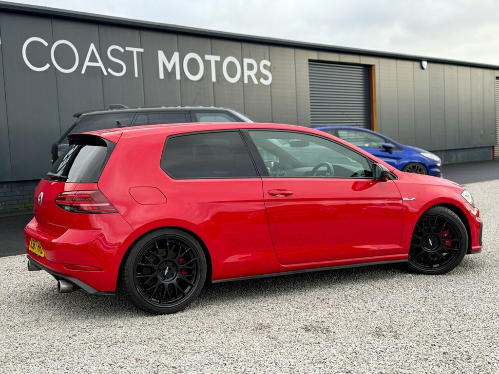 2017 (67) Volkswagen Golf 2.0 TSI GTI Performance 3dr Manual West Coast Motors are excited to present this stunning 2017 (67) Volkswagen Golf GTI Performance, finished in Tornado Red with factory black styling, LED headlights, red GTI calipers, and upgraded 18in Rotiform alloys. This example has covered 73,000 miles and comes with a great service history, including over 7 services with mostly Main dealer/specialist. It's in fantastic condition throughout with PPF (paint protection film) applied to the full front end. Powered by the 2.0 TSI turbocharged engine, paired with a 6-speed manual gearbox— also benefiting from Stage 1 Ecotune remap now producing 327bhp/391 ftlb , Sachs performance clutch (fitted 2024), and uprated downpipe. Spec includes virtual dash, Discover Navigation, Adaptive Cruise Control, Driving Mode Selection, Ambient Lighting Pack, LED dynamic curve headlights, Parking Sensors front and rear, climate control, Bluetooth, DAB, flat-bottom GTI steering wheel, and GTI sport seats with red stitching. Also fitted with EBC Redstuff brake pads and nearly-new Uniroyal RainSport tyres all round. 2 keys supplied , 3 previous owners Get in touch today to arrange a test drive or reserve this GTI before it's gone! 3 months Warranty as standard Part exchange welcome Low rate finance available Debit/credit cards accepted AA breakdown cover included 01294 443333 www.wcmotors.co.uk Tornado Red, 12V Socket - Luggage Compartment, 18in Alloy Wheels - Parker, ABS - Anti-Lock Braking System with HBA , Active Info Display, Adaptive Cruise Control, Airbags, Alarm with Interior Protection, Ambient Lighting Pack, Anti-Tramp Function, Automatic Coming-Leaving Home Lighting F, Automatic Post-Collision Braking System, Bag Hooks in the Luggage Compartment x2, Black Rooflining, Body Coloured Bumpers, Body Coloured Door Handles, Body-Coloured Door Mirrors with Integrat, Brake Calipers - Red with GTI Logo, Brake Pad Wear Indicator, Car-Net App Connect, Carpet Mats - Front and Rear, Chrome Plated Air Vent Surrounds, Chrome Plated Electric Mirror Adjustment, Chrome Plated Electric Windo