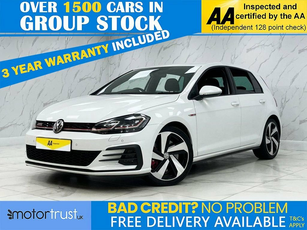 With a clear vehicle history check, this 2019 Volkswagen Golf GTI Performance is ready for its next owner. The Golf, a TSI GTI Performance trim, is powered by a 2.0L petrol engine and meets Euro 6 emission standards. Enjoy the convenience of a rear-view camera with parking assistance, adaptive cruise control, and LED headlights with dynamic curve light. The vehicle also features climate control and a dusk sensor for automatic headlight activation. For peace of mind, it comes with 12 months MOT provided on purchase. The acceleration of 0-60mph in 6.0 seconds demonstrates its superior performance compared to similar vehicles. This Golf combines practicality with sought-after features, making it a compelling choice for discerning drivers. Pure White, Jacara Cloth - Titan Black-Red, 12V Socket - Luggage Compartment, 18in Alloy Wheels - Parker, ABS - Anti-Lock Braking System with HBA , Active Info Display, Adaptive Cruise Control, Airbags, Alarm with Interior Protection, Ambient Lighting, Ambient Lighting Pack, Anti-Tramp Function, Automatic Coming-Leaving Home Lighting F, Automatic Post-Collision Braking System, Bag Hooks in the Luggage Compartment x2, Black Rooflining, Body Coloured Bumpers, Body Coloured Door Handles, Body-Coloured Door Mirrors with Integrat, Brake Calipers - Red with GTI Logo, Brake Pad Wear Indicator, Car-Net App Connect, Car-Net Security and Service including e, Carpet Mats - Front and Rear, Child Securit