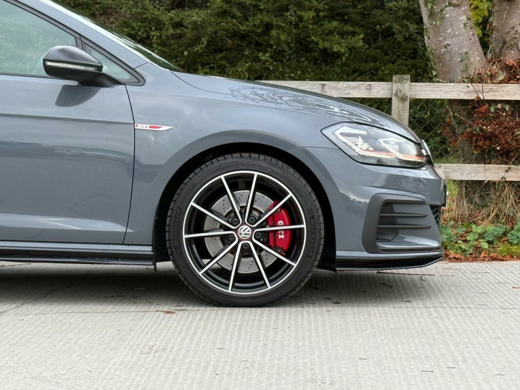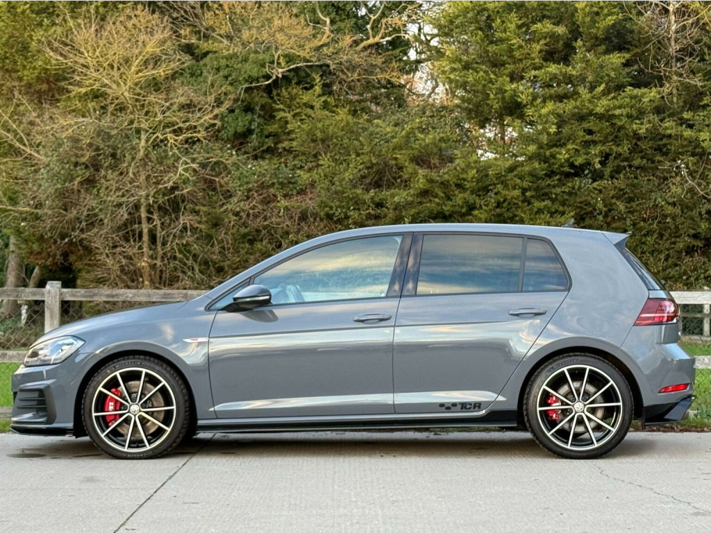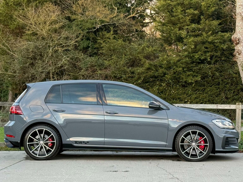 Volkswagen Golf GTI TCR – Limited Edition 290PS hot hatch with Akrapovic Titanium Exhaust, Mechanical LSD, Adaptive Cruise, Driving Modes, Rear Camera and LED Lights. Finished in a stunning colour combination with Alcantara GTI interior, black headlining and red stitching. Comes with full service history, both keys, and all original GTI TCR styling details including unique bumpers, red brake calipers and 18 alloys. Features Keyless Entry & Start, 2-Zone Climate Control, Bluetooth / DAB / USB connectivity and Front Assist safety system. A truly immaculate, well-maintained example of the rare TCR edition.