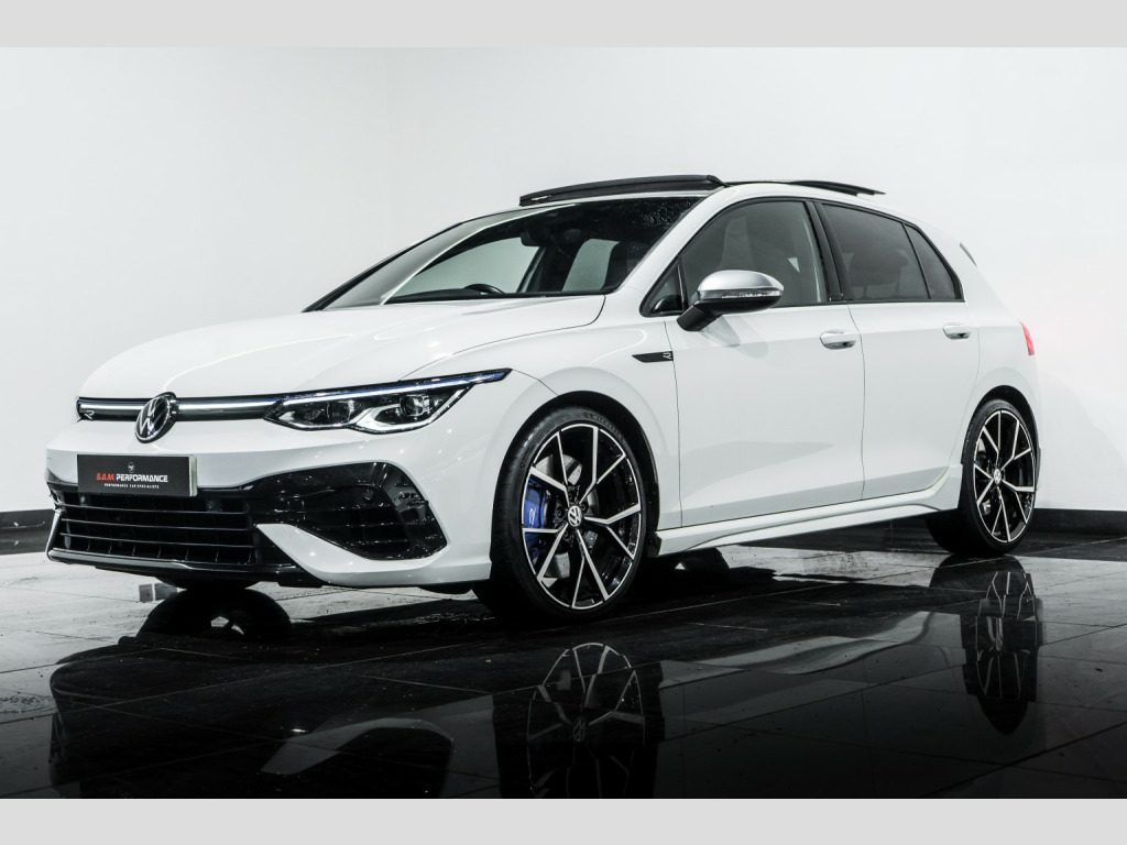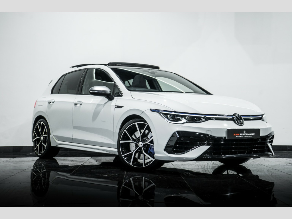2021 Volkswagen Golf R MK8 finished in White with contrasting Blue-Black Cloth Seats. This car comes with: Virtual Cockpit, Panoramic Glass Sunroof, Winter Pack, Heated Steering Wheel, 19 inch alloy Wheels, Apple Carplay, front and rear Parking Sensors, Heated Seats, Electric Folding & Heated Door Mirrors, Dab Radio, Privacy Glass, Dab Radio, Multi Functional Steering Wheel, Adaptive Cruise Control, Matrix Headlights, Lights, LED Daytime Running Lights plus much more... , All our vehicles at S A M Performance are HPI Clear. We offer low rates finance packages tailored to suit every individual, subject to terms and conditions. For more information speak to our sales team today on 01706 659966 or to view our stock list go on to our website www.samperformance.co.uk, , Please note:, All descriptions and specifications are provided in good faith and believed to be correct. However, errors may occur. Buyers are advised to confirm full details- including vehicle history and any previous modifications with our sales team prior to purchase.