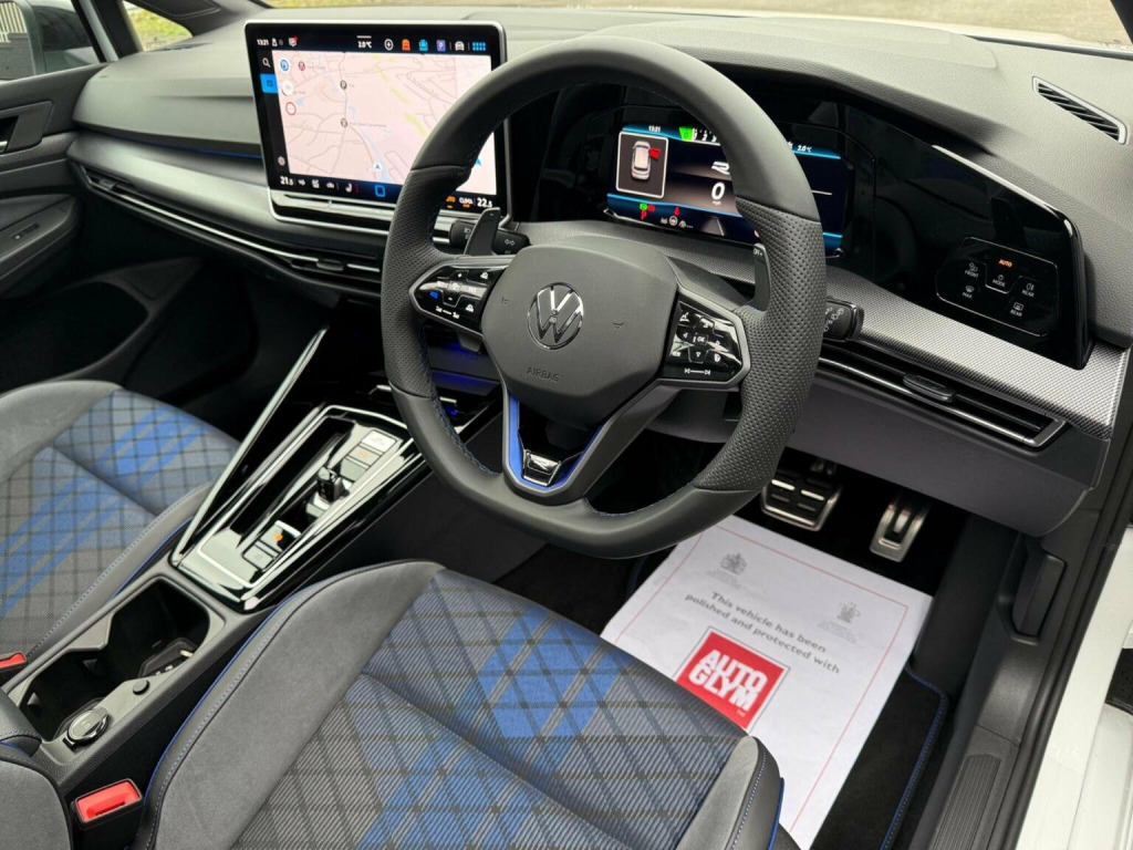 2025 25 VOLKSWAGEN GOLF R BLACK EDITION MK8.5 DSG, HIGH SPEC INCLUDES:, * PURE WHITE, * BLACK EDITION INCLUDING GLOSS BLACK BODY STYLING, * 7 SPEED DSG AUTOMATIC GEARBOX WITH PADDLESHIFTS AND SPORTS MODE, * 10 INCH VIRTUAL COCKPIT UPGRADED DASH, * FACELIFTED 12.9 INFOTAINMENT TOUCHSCREEN, * MK8.5 FACELIFT BODYSTYLING WITH UPGRADED STYLING AND POWER, * ELECTRIC SLIDING PANORAMIC GLASS SUNROOF WITH BLIND, * R PERFORMANCE PACK INCLUDING DRIFT MODE AND NURBURGRING MODE, * ADAPTIVE DRIVING MODES SPORT, RACE, INDIVIDUAL AND COMFORT DRIVING MODES, * 19 UPGRADE ESTORIL ALLOY WHEELS FINISHED IN GLOSS BLACK, * EXCELLENT TYRES ALL ROUND, * IQ LED HEADLIGHTS WITH LIGHT UP GRILL, * LED DAYTIME RUNNING LIGHTS, * HALF ALCANTARA SUEDE / HALF LEATHER R EMBOSSED BUCKETS SEATS WITH BLUE CONTRAST STITCHING , * THREE STAGE HEATED SEATS, * CARBON BLACK GLOSS INTERIOR AND DASH TRIM, * DUAL DIGITAL CLIMATE CONTROL, * TOUCH SCREEN COLOUR SATELLITE NAVIGATION PRO SYSTEM WITH 12.9 INCH LARGE DISPLAY, * REAR CLIMATE CONTROL, * MEDIA PLAYER, * VW INFOTAINMENT SYSTEM, * BLUETOOTH, * TWIN SD CARD SLOTS, * MEDIA HARD DRIVE, * DAB DIGITAL RADIO, * PUSH BUTTON START, * KEYLESS GO, * MULTIFUNCTION FLAT BOTTOM THREE SPOKE R LEATHER STEERING WHEEL, * HEATED STEERING WHEEL, * CRUISE CONTROL, * COLLISION ASSIST, * RADAR SENSOR CONTROLLED DISTANCE SYSTEM, * CITY EMERGENCY AUTO BRAKING SYSTEM, * AUTOMATIC HEADLIGHTS, * AUTOMATIC WIPERS, * REVERSE CAMERA, * FRONT AND REAR PARKING SENSORS WITH ON SCREEN ASSIST, * AIR CONDITIONING, * ELECTRIC HEATED FOLDING MIRRORS, * ELECTRIC WINDOWS ALL ROUND, * TRACTION CONTROL, * ELECTRIC HANDBRAKE WITH AUTO HOLD, * TWIN USB-C PORT, * APPLE CARPLAY, * REAR HEATED SCREEN, * PRIVACY GLASS, * VOICE COMMAND, * FRONT / REAR FOGLIGHTS, * VOLKSWAGEN SOS SYSTEM, * TWO KEYS, * VOLKSWAGEN WARRANTY UNTIL 03/2028, STUNNING LOOKING CAR, GREAT PERFORMANCE WITH EXCELLENT FUEL ECONOMY... CAR IS IN EXCELLENT CONDITION INSIDE AND OUT, JUST BEEN VALETED... HPI CLEAR WITH GOLD REPORT, 5 DAYS FREE INSURANCE... £41,995, FINANCE AVAILABLE, PART EXCHANGE WELCOME, 07425 507632