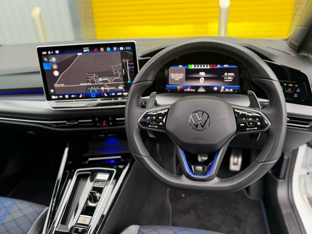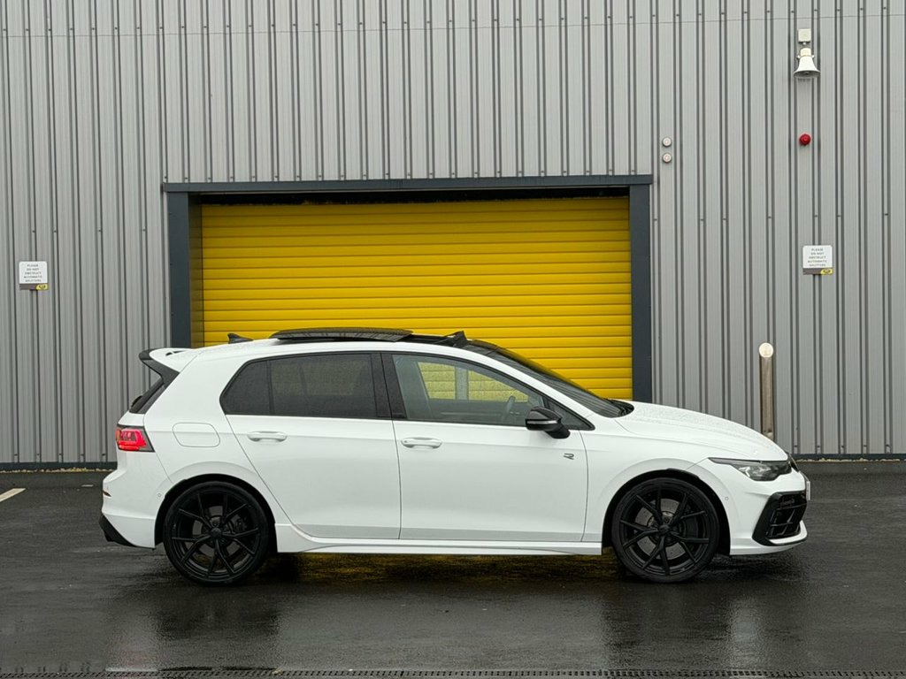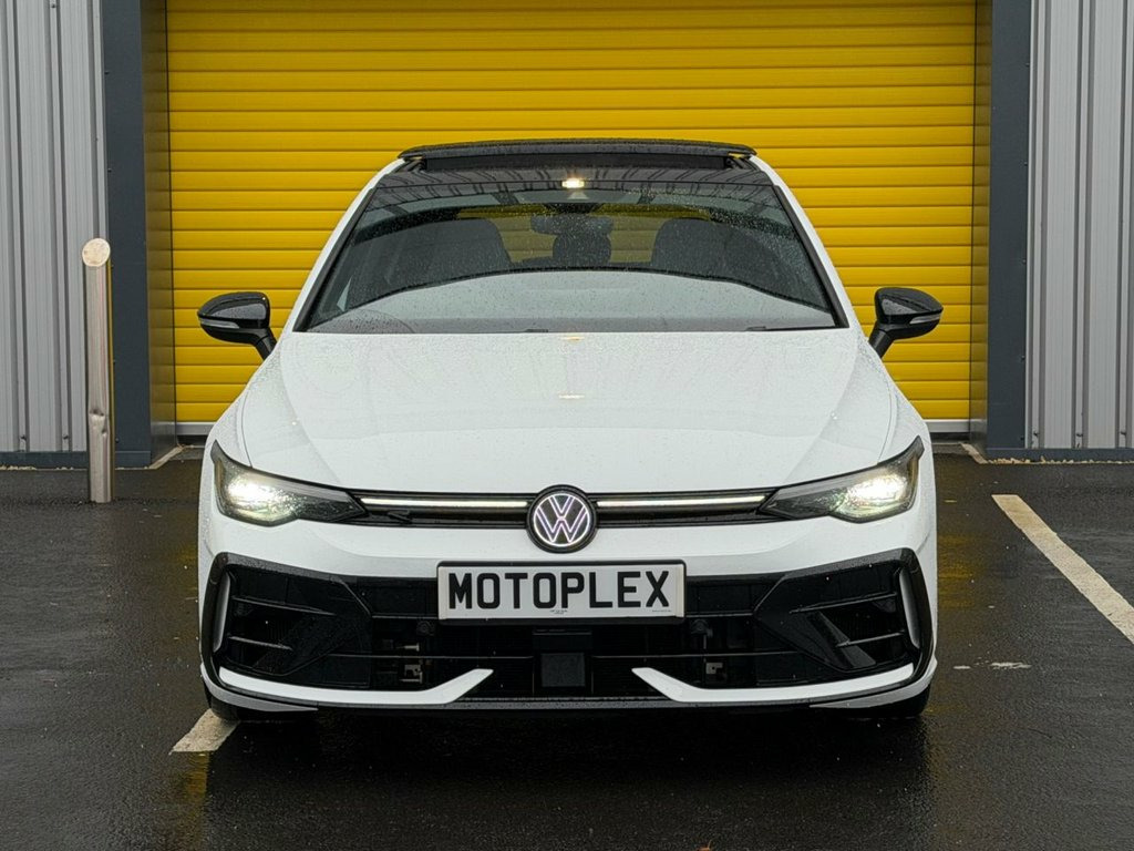 This 2025 Volkswagen Golf TSI R Black Edition boasts a clear vehicle history, offering you peace of mind. This striking model features a powerful 2.0 litre petrol engine paired with a four wheel drive system, ensuring excellent performance and control. As a Euro 6 emission class vehicle, it meets modern environmental standards. The R Black Edition trim comes equipped with a tilting and sliding panoramic sunroof, allowing you to enjoy an open air driving experience. For convenience and safety, it includes a rear view camera and front and rear parking sensors, making manoeuvring effortless. Stay connected and powered up with the mobile phone interface featuring wireless inductive charging. Experience exhilarating performance with this Volkswagen Golf, capable of accelerating from 0 to 60 miles per hour in just 4.6 seconds. This impressive acceleration highlights how this vehicle offers a more dynamic driving experience compared to many others in its class. The Adaptive Chassis Control, known as DCC, further enhances its driving capabilities by adjusting the suspension to suit your preferences and road conditions, providing a superior ride quality. Adaptive Chassis Control - DCC, Pure White with Black Roof, 19in Alloy Wheels - Warmenau Black, Tilting and Sliding Panoramic Sunroof, 12V Socket - Centre Console, 12V Socket - Luggage Compartment, 19in Alloy Wheels - Estoril Black, 2 USB-C Ports in the Front - 2 USB-C Por, 3-Point Seat Belts for the Outer Rear Se, 3-Point Seatbelts in Front with Height A, 6 Speakers - 4 Front-2 Rear with Centre , Activated Carbon Canister - Evaporative , Adaptive Cruise Control, Advanced Driver Attention and Drowsiness, Air Care Climatronic 3-Zone with Rear Ai, Alarm with Interior Protection, Aluminium Gearshift Knob and Handle, Auto-dimming Rear View Mirror, Automatic Headlight Control with LED Sep, Autono