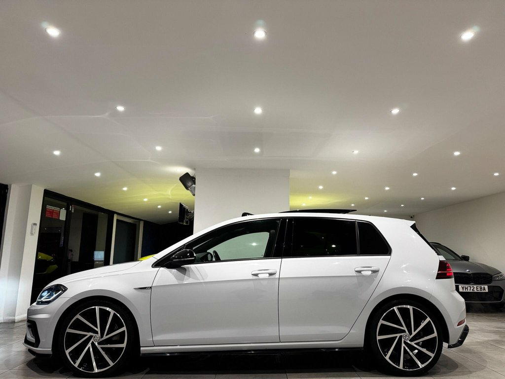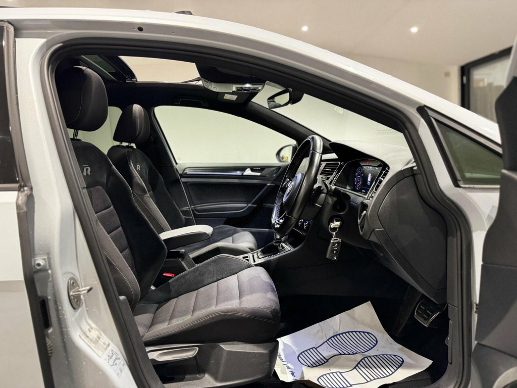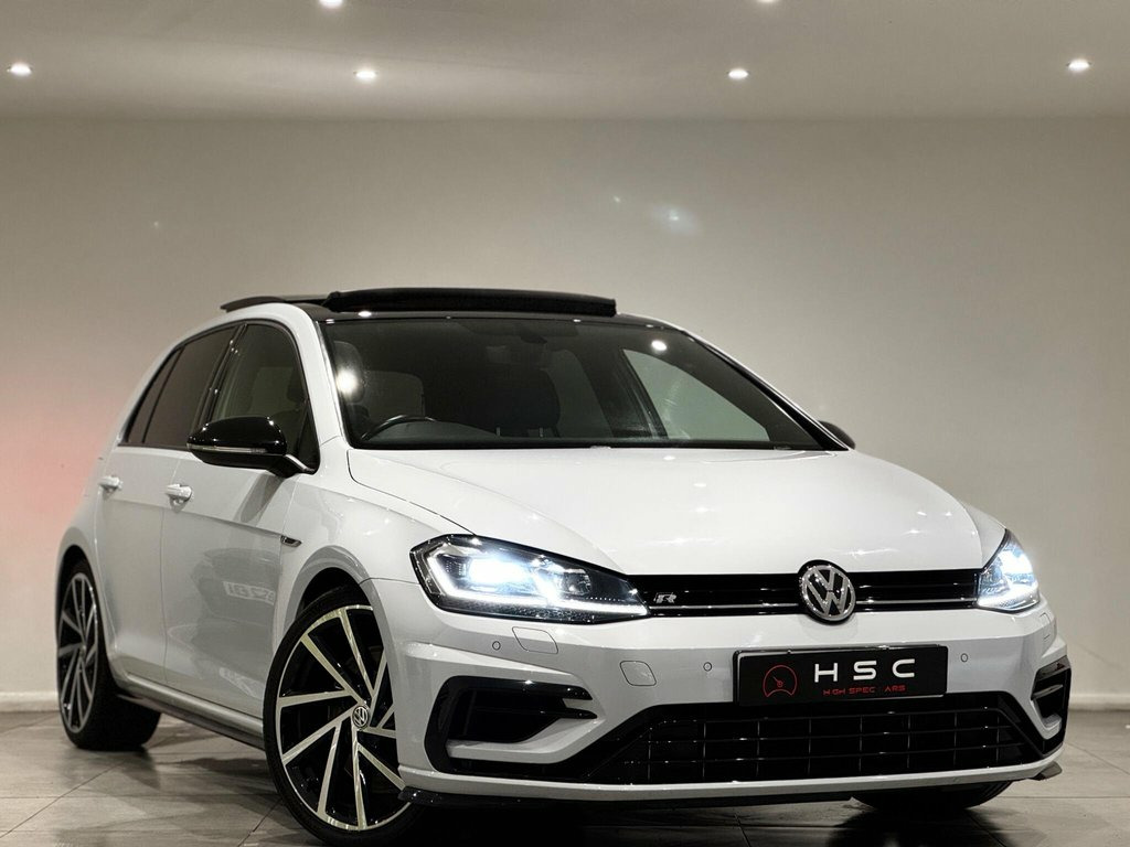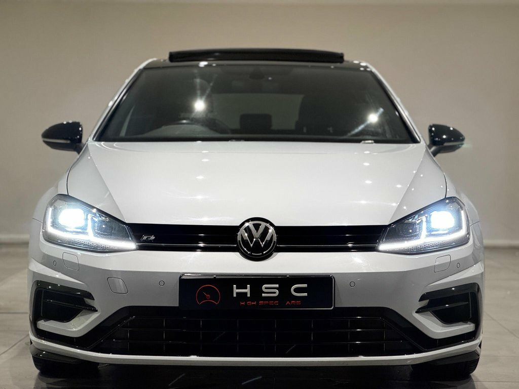This 2019 Volkswagen Golf R presents an exceptional opportunity with remarkably low mileage for its age, having covered just 40,000 miles. This Euro 6 compliant model boasts a powerful 2.0 litre petrol engine paired with a four wheel drive drivetrain, ensuring confident performance in all conditions. Inside, you'll find a luxurious Carbon Nappa leather interior in grey, complemented by a panoramic sunroof that opens to enhance your driving experience. The R trim also features striking 19 inch Spielberg alloy wheels and keyless entry for added convenience. The Golf R truly excels with its impressive acceleration, reaching 0 to 60 miles per hour in a swift 4.4 seconds, a figure that sets it apart from many other vehicles in its class. For your navigation and entertainment needs, the Discover Navigation Pro system offers a touch screen interface with integrated voice activation and Car Net Guide and Inform Plus services. Practicality is also a strong point, with generous boot space designed to accommodate your luggage or shopping with ease. 12V Socket - Luggage Compartment, 18in Alloy Wheels - Cadiz, 19in Alloy Wheels - Spielberg, ABS - Anti-Lock Braking System with HBA , Active Info Display, Adaptive Cruise Control, Airbags, Alarm with Interior Protection, Ambient Lighting, Ambient Lighting Pack, Anti-Tramp Function, Automatic Coming-Leaving Home Lighting F, Automatic Post-Collision Braking System, Bag Hooks in the Luggage Compartment x2, Black Rooflining, Body Coloured Bumpers, Body Coloured Door Handles, Brake Calipers - Black, Brake Pad Wear Indicator, Car-Net App Connect, Car-Net Security and Service including e, Carbon Touch Decorative Inserts in Dash , Carbon-Nappa Leather - Grey, Carpet Mats - Front and Rear, Child Secu
