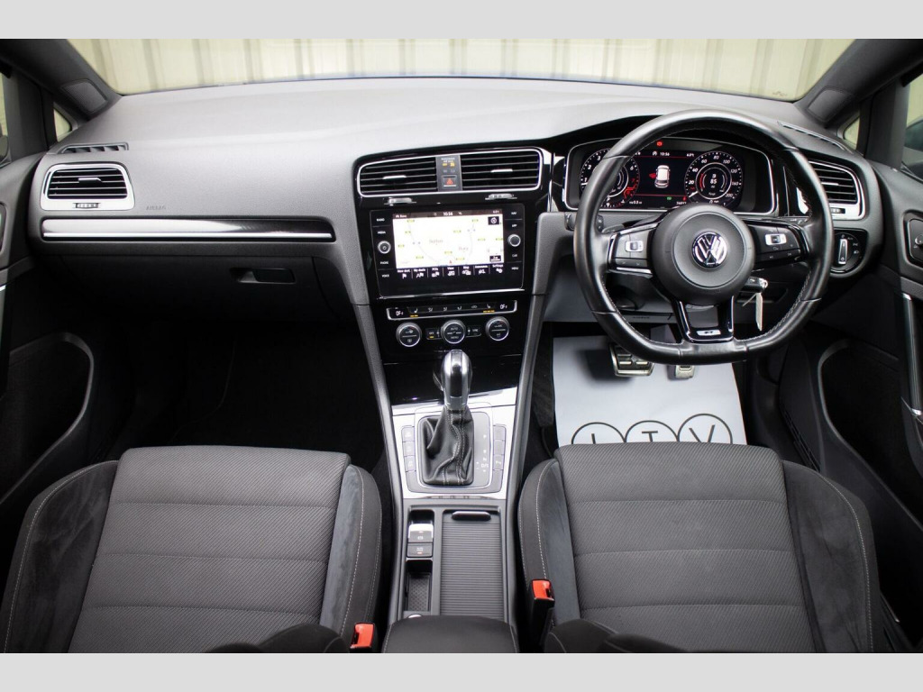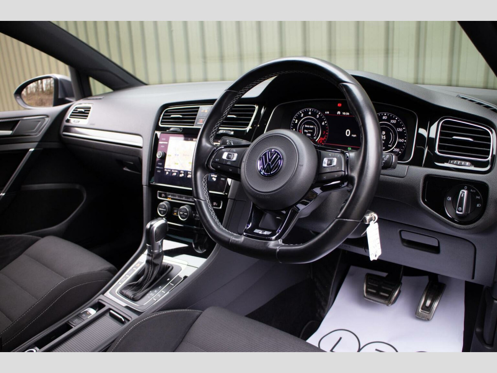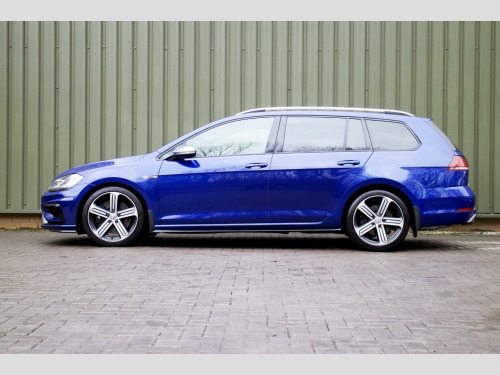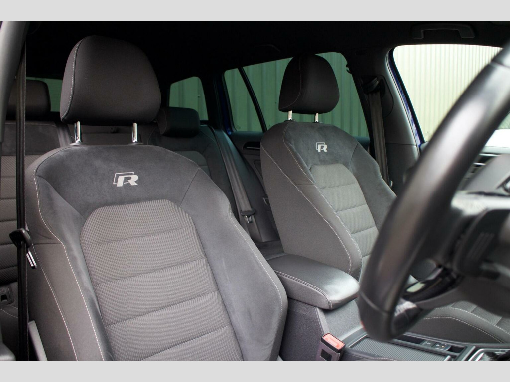 NAVIGATION SYSTEM - 19 ALLOYS - HEATED SEATS - Finished in the striking and highly desirable Lapiz Blue Metallic, complemented by distinctive race cloth seats with grey Alcantara bolsters, this 2017 67 Registered Volkswagen Golf 2.0 TSi R DSG 4Motion estate has covered 75,000 miles from new and represents an increasingly rare opportunity to acquire a truly practical yet performance focused example of the coveted R variant. Combining understated estate versatility with the unmistakable presence of the R styling package, this car sits purposefully on 19 Pretoria alloy wheels and benefits from R sports suspension, tailgate spoiler and rear diffuser, creating an assertive aesthetic. The special Lapiz Blue finish further accentuates its sporting character and ensures it stands apart. Inside, the cabin strikes an ideal balance between performance intent and everyday comfort. The race cloth seat centres with grey Alcantara bolsters provide both support and visual distinction, while the heated front seats enhances cold weather usability. Dual-zone automatic climate control, ambient lighting and a multifunction steering wheel contribute to a refined and driver focused environment. Technology and connectivity are well catered for, with the Navigation Pro touchscreen system including DVD player, Car-Net App Connect, DAB digital tuner and SD card reader, alongside an onboard computer and comprehensive infotainment functionality. Driver assistance features include Front Assist with City Emergency Braking, traffic sign recognition, cruise control, dynamic curve lighting and electrically folding heated door mirrors, while the convenience pack and privacy glass further enhance day to day practicality. With its rare estate configuration, high specification and meticulous preparation to the highest standard, this Golf R Variant offers an exceptional blend of performance, usability and exclusivity. ***VIEWING STRICTLY BY APPOINTMENT ONLY - FOR FURTHER INFORMATION REGARDING THIS VEHICLE AND ANY OTHER PREMIUM MARQUE IN STOCK, PLEASE CALL SALES DIRECT. VEHICLE FINANCE SPECIALISTS ***