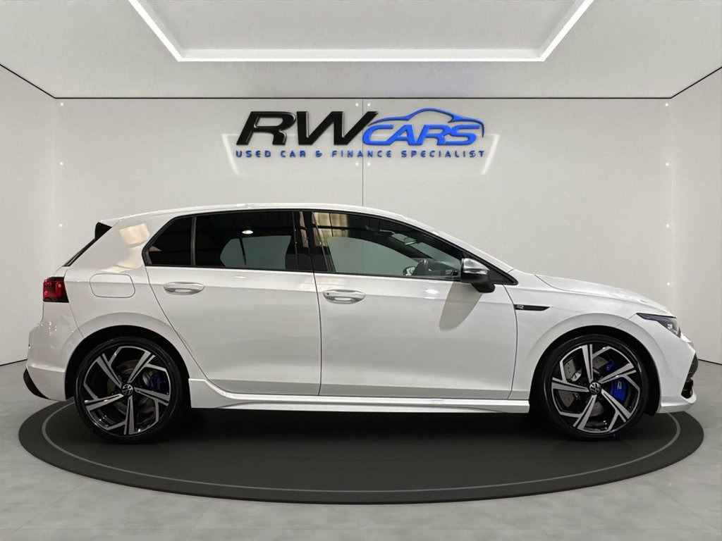 Finished in Pure White, this stunning Golf R 2.0 TSI DSG 4Motion delivers the perfect mix of performance, style, and everyday practicality. Powered by a 320PS turbocharged engine paired with VW's intelligent 4Motion all-wheel-drive system and lightning-fast DSG gearbox, it offers incredible traction and a 0–62 mph time of just 4.7 seconds. This example comes with a full Volkswagen digital service history, last serviced at 29,317 miles in April 2025 (Inspection with oil change). All previous services and remarks are logged within Volkswagen's Digital Service Schedule, confirming excellent maintenance throughout its life. Specification includes: 19" Estoril alloy wheels Adaptive Cruise Control (ACC) Digital Cockpit Pro Heated R performance sports seats with blue stitching R body styling kit with quad exhausts Dynamic Chassis Control (DCC) Front and rear parking sensors Rear-view camera LED Performance headlights Wireless Apple CarPlay & Android Auto Keyless entry and start Dual-zone climate control Ambient interior lighting Drive mode select (Comfort / Sport / Race / Individual) Service History: 09/04/2025 – 29,317 miles – Inspection & oil change (VW main dealer) 05/02/2024 – 19,293 miles – Inspection & oil change (VW main dealer) 27/04/2022 – 6,836 miles – Oil change service (VW main dealer) 07/04/2021 – Delivery inspection (VW main dealer) 12V Socket - Front Centre Console, 12V Socket in Luggage Compartment, 18in Alloy Wheels - Jerez Black Diamond-, 3 Rear Three-Point Seat Belts, ABS - Anti-Lock Braking System with HBA , Adaptive Cruise Control, Advanced High-Beam Control Dynamic Light, Airbags, Alarm with Interior Protection with Deac, Aluminium Gearshift Knob and Handle, App-Connect, Automatic Coming-Leaving Home Lighting F, Automatic Post-Collision Braking System, Black Metal Chrome Decorative Inserts in, Body Coloured Bumpers, Body Coloured Door Handles and Mirrors w, Brake Calipers - Blue, Car2X, Carpet Mats - Front and Rear, Chrome-plated Surround to Electric Mirro, Climate Control, Cup Holders - Front x2, Digital Cockpi