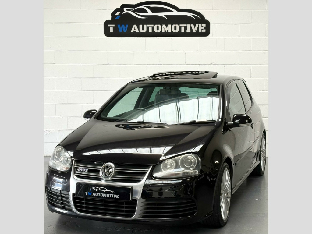 Volkswagen Golf 3.2 V6 R32 finished in stunning metallic black, comes with 18inch Zolder alloys wrapped in good tyres all round. Our example boasts a full service history consisting of a staggering 17 services! And will also be serviced before sale. Latest Haldex service carried out on 13/02/2023 71,369 miles. Very high specification car including full vienna leather seats, winter pack, navigation system, parking sensors, highline computer, VERY rare tilt and slide sunroof, plus more! Definitely one to be seen and driven to be appreciated, a well maintained low mileage example which is ready to be enjoyed by its new owner. The stunning note of the 3.2 V6 engine coupled with the smooth power delivery really does make an enjoyable driving experience. Enquire today! WILL COME WITH 12 MONTHS MOT, ALL MAJOR DEBIT AND CREDIT CARDS ACCEPTED disc cd autochanger, front centre arm rest, radio system rcd 500, rear tinted windows, vienna leather - anthracite, rear parking sensor, electric sunroof, metallic paint, sunroof electric glass, multifunction computer highline, dvd navigation, winter pack, winter pack with leather upholstery, adjustable steering column/wheel, air bag driver, air bag passenger, air bag side, alarm, alloy wheels (18in), anti-lock brakes, body coloured bumpers, central door locking, centre rear seat belt, climate control, computer, electric windows (front/rear), electronic stability programme, head restraints, immobiliser, in car entertainment (radio/cd), mirrors external, mirrors internal, power socket, power-assisted steering, seat - isofix anchorage point (two seats - rear), seat height adjustment, seat lumbar support, spare wheel (space saver), speakers, upholstery cloth