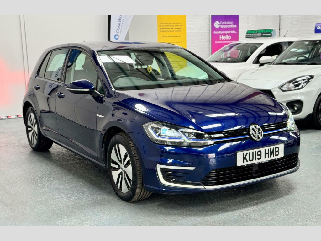 This 2019 Volkswagen e Golf presents with One Former Keeper and a clear vehicle history, MOT valid until July 2026, Partial Service History, 2 Keys, Logbook Present, offering peace of mind for its next owner. As an electric vehicle, it boasts a 36 kWh battery with a maximum range of 144 miles when new. Charging is convenient, with a full charge at home taking approximately 5 hours and 20 minutes using a 7kW charger, and a rapid charge to 80% achievable in just 40 minutes at a public charging station. This e Golf comes with a 3 month warranty for added reassurance. The notable features enhance the driving experience, including the Convenience Pack which incorporates automatic headlights and a dusk sensor for automatic driving lights. Youll also benefit from LED headlights for improved visibility, climate control for comfort in all conditions, and adaptive cruise control for effortless long journeys. The large boot space provides ample room for luggage or shopping, making this Volkswagen e Golf a practical choice for everyday use and weekend adventures. Delivery and driveway insurance available on affordable cost, Finance Available, All of our Sales are subject to Admin Fee. Welcome for part exchange and any inspection, LU61BH