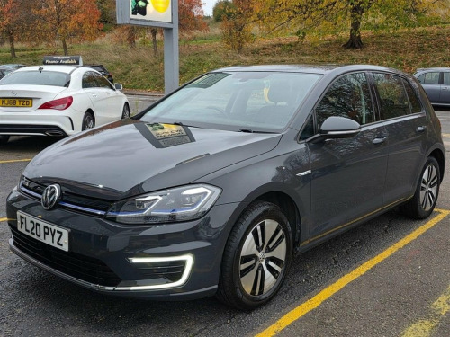 Volkswagen e Golf with 36 kWh battery with a maximum range of 130+. Apple CarPlay, Android Auto, DAB, Bluetooth, Adaptive Cruise Control, a Dusk Sensor for automatic headlights, Climate Control for a comfortable driving experience, Parking Sensors at both the front and rear Extended Warranty Available for as little as £399 for 12 Months* Finance Offered - any credit history considered** Part Exchange Welcome Available for Nationwide Delivery (charged 1.70p per mile) *Warranty prices based on car make, model, CC, age **subject to acceptance 12V Socket - Luggage Compartment, 16in Alloy Wheels - Tilleve, ABS - Anti-Lock Braking System with HBA , Adaptive Cruise Control, Airbags, Alarm with Interior Protection, Automatic Coming-Leaving Home Lighting F, Automatic Post-Collision Braking System, Bag Hooks in the Luggage Compartment x2, Body Coloured Bumpers, Body Coloured Door Handles, Body-Coloured Door Mirrors with Integrat, Brake Pad Wear Indicator, Brushed Dark Silver Decorative Inserts i, Car-Net App Connect, Car-Net Security and Service including e, Car-Net e-Remote, Charging Socket AC Type 2, Child Security Locks in the Rear Doors, Chrome Plated Air Vent Surrounds, Chrome-Plated Light Switch Surround, Climate Control, Composit