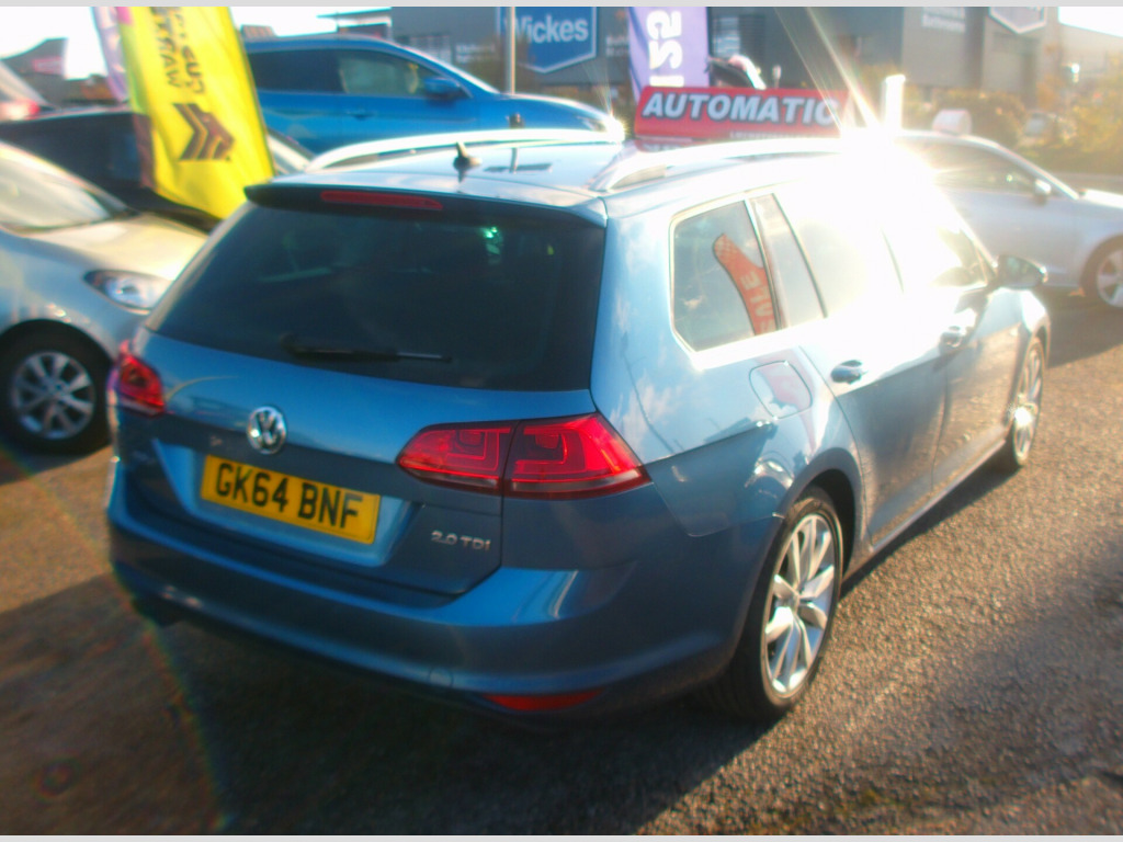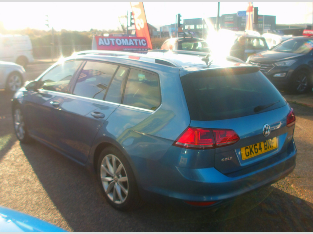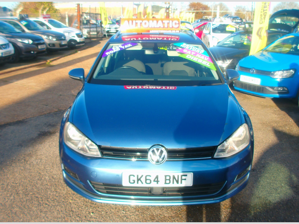 £35 A YEAR ROAD TAX ON THIS 2014 AUTOMATIC VOLKSWAGEN GOLF ESTATE GT 2.0 TDI DSG 5 DOOR, BLUE, 85,808 MILES, 7 STAMP SERVICE HISTORY, 2 PREVIOUS KEEPERS, SAT NAV, DAB RADIO, BLUETOOTH, CRUISE CONTROL, FRONT & REAR PARK SENSORS, ROOF RAILS, HEATED E/MIRRORS, E/WINDOWS, SUEDE/CLOTH UPHOLSTERY, ISOFIX, C/LOCKING, MULTI AIR BAGS, ABS, FRONT FOGS, R/W/WIPE, 17'' ALLOY WHEELS, NEW MOT UPON PURCHASE, SUSSEX, EAST SUSSEX, EASTBOURNE, BN23 6PJ, 01323 643326, r conditioning, bluetooth connection, half leather, satellite navigation, cruise control, front parking sensor, multi-function steering wheel, power steering, rear parking sensor, traction control, abs, isofix child seat anchor points, multiple airbags, central locking, electric mirrors, electric windows, heated door mirrors, alloy wheels, colour coded body, front fog lights, mica paint, rear wash/wipe, roof rails, dab radio, zero admin charge, £35 a year road tax