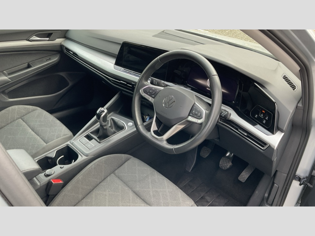 Volkswagen Golf 1.0 TSI Life 5dr Adaptive cruise control (ACC) with speed limiter and front assist (reacting to vehicles pedestrians and cyclists), Car2X communication, Digital cockpit pro - 10.25" high resolution TFT dash display screen with customizable menus and information, Driver alert system, Dynamic road sign display, eCall - Emergency call service for SOS calls to emergency response, Lane assist, Mobile phone interface with wireless inductive charging function, Multifunction camera for distance control, Power assisted speed sensitive steering, Speedo, rev counter, electronic odometer, trip, service interval display, exterior temperature and fuel gauge, Start/Stop function, USB-C ports in the front and rear centre console with increased charging performance, Warning buzzer and light for front seatbelts unfastened, Wireless app connect, Petrol Particulate Filter, XDS electronic differential lock for improved traction and handling, Premium USB cable in choice of either Apple or Android smartphone compatibility, Ambient lighting, exterior illuminated styling elements at the sides, Auto dimming rear view mirror, Automatic headlamp activation with Coming home and Leaving home feature, Automatic headlights, Body colour bumpers, Body colour door handles, Body colour door mirrors with integrated indicators, Body colour rear roof spoiler, Dynamic headlight range control, Electrically heated and adjustable door mirrors with memory feature, Front and rear electric windows, Heat insulating glass windscreen, Heated rear windscreen, High level 3rd brake light, Highway light, LED daytime running lights, LED headlights incorporating turn signals, LED License plate illumination, Rain sensor, Rear fog light on one side and reversing lights on both sides, Rear lights incorporating LED technology, Rear side wing doors, Rear windscreen washer and wiper with interval delay, Welcome light, 10 colour interior ambient lighting, 12V socket in front centre console, 12V socket in luggage compartment, 3 rear head restraints, 3 seat bench in 2nd row, Drivers and front passengers sun visors with vanity mirrors, Front centre armrest with storage compartment, Front cupholders x 2, Front passenger seat, Front passenger seat lumbar adjustment, Front reading lights x 2 incorporating LED technology, Glovebox, Height adjustable passenger seat, Height and reach adjustable steering wheel, Isofix child seat preparation for 2 rear child seats and front passenger seat, Luggage compartment lighting, Maze cloth upholstery, Removable luggage compartment cover, Split folding backrest with centre armrest and unsplit rear seat bench, Storm grey roof lining in recycled material, Woven fabric storage compartments in front and rear doors, 3 point height adj front seatbelts + pretensioners, 3 rear three point seatbelts, ABS, Child locks on rear doors, Driver and front passenger airbag with front passenger airbag deactivation, Drivers and front passengers safety optimised head restraints, Electronic parking brake with auto hold, ESC (Electronic Stability Control), Extended pedestrian protection measures, Front centre airbag, Front disc brakes, Front side airbags with curtain airbags, Rear disc brakes, Two tone horn, Tyre pressure monitoring system, Alarm with interior protection and deactivation via infotainment system, Electronic engine immobiliser, High gloss black centre console, Nature cross brushed decorative inserts, Soul dashboard
