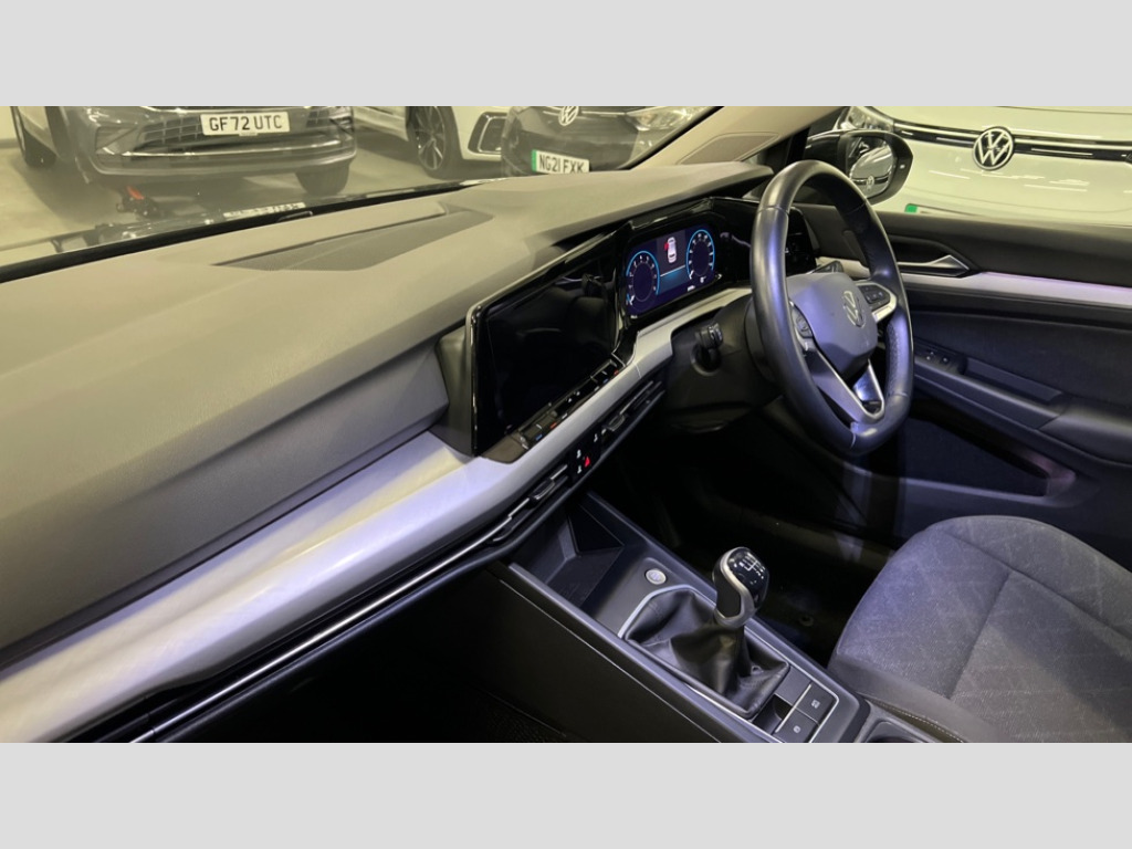 Volkswagen Golf 1.0 TSI Life 5dr Adaptive cruise control (ACC) with speed limiter and front assist (reacting to vehicles pedestrians and cyclists), Car2X communication, Digital cockpit pro - 10.25" high resolution TFT dash display screen with customizable menus and information, Driver alert system, Dynamic road sign display, eCall - Emergency call service for SOS calls to emergency response, Lane assist, Mobile phone interface with wireless inductive charging function, Multifunction camera for distance control, Power assisted speed sensitive steering, Speedo, rev counter, electronic odometer, trip, service interval display, exterior temperature and fuel gauge, Start/Stop function, USB-C ports in the front and rear centre console with increased charging performance, Warning buzzer and light for front seatbelts unfastened, Wireless app connect, Petrol Particulate Filter, XDS electronic differential lock for improved traction and handling, Premium USB cable in choice of either Apple or Android smartphone compatibility, Ambient lighting, exterior illuminated styling elements at the sides, Auto dimming rear view mirror, Automatic headlamp activation with Coming home and Leaving home feature, Automatic headlights, Body colour bumpers, Body colour door handles, Body colour door mirrors with integrated indicators, Body colour rear roof spoiler, Dynamic headlight range control, Electrically heated and adjustable door mirrors with memory feature, Front and rear electric windows, Heat insulating glass windscreen, Heated rear windscreen, High level 3rd brake light, Highway light, LED daytime running lights, LED headlights incorporating turn signals, LED License plate illumination, Rain sensor, Rear fog light on one side and reversing lights on both sides, Rear lights incorporating LED technology, Rear side wing doors, Rear windscreen washer and wiper with interval delay, Welcome light, 10 colour interior ambient lighting, 12V socket in front centre console, 12V socket in luggage compartment, 3 rear head restraints, 3 seat bench in 2nd row, Drivers and front passengers sun visors with vanity mirrors, Front centre armrest with storage compartment, Front cupholders x 2, Front passenger seat, Front passenger seat lumbar adjustment, Front reading lights x 2 incorporating LED technology, Glovebox, Height adjustable passenger seat, Height and reach adjustable steering wheel, Isofix child seat preparation for 2 rear child seats and front passenger seat, Luggage compartment lighting, Maze cloth upholstery, Removable luggage compartment cover, Split folding backrest with centre armrest and unsplit rear seat bench, Storm grey roof lining in recycled material, Woven fabric storage compartments in front and rear doors, 3 point height adj front seatbelts + pretensioners, 3 rear three point seatbelts, ABS, Child locks on rear doors, Driver and front passenger airbag with front passenger airbag deactivation, Drivers and front passengers safety optimised head restraints, Electronic parking brake with auto hold, ESC (Electronic Stability Control), Extended pedestrian protection measures, Front centre airbag, Front disc brakes, Front side airbags with curtain airbags, Rear disc brakes, Two tone horn, Tyre pressure monitoring system, Alarm with interior protection and deactivation via infotainment system, Electronic engine immobiliser, High gloss black centre console, Nature cross brushed decorative inserts, Soul dashboard