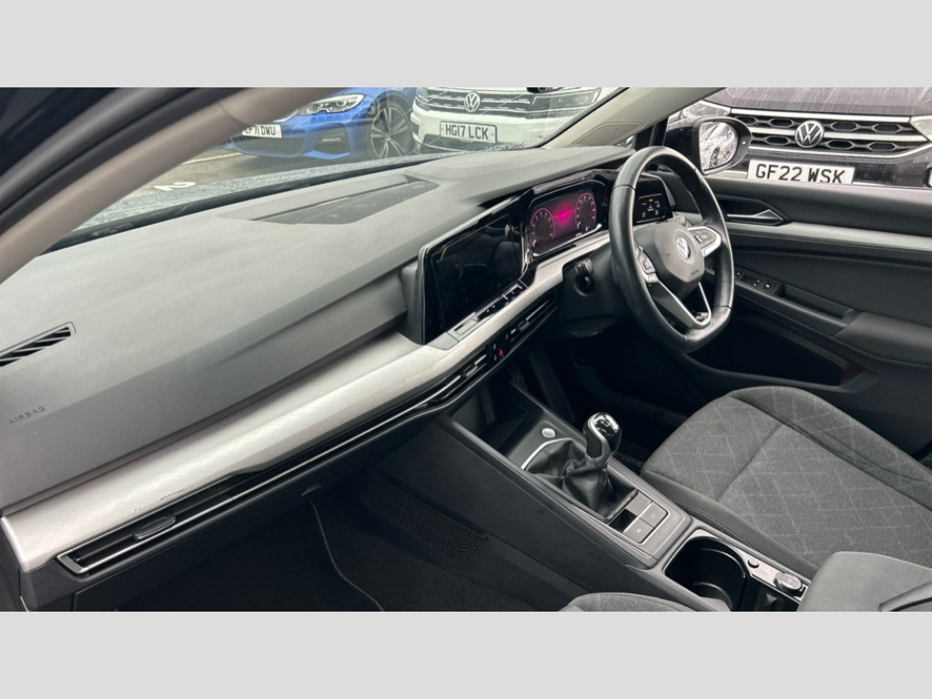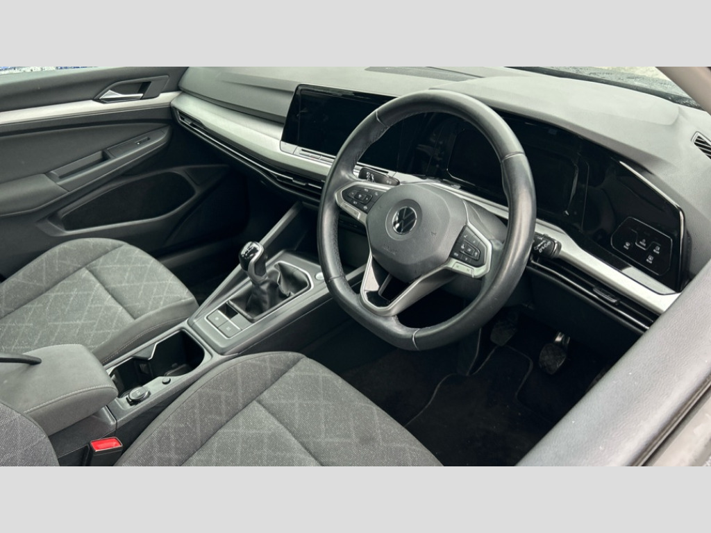 Volkswagen Golf 1.0 TSI Life 5dr Adaptive cruise control (ACC) with speed limiter and front assist (reacting to vehicles pedestrians and cyclists), Car2X communication, Digital cockpit pro - 10.25" high resolution TFT dash display screen with customizable menus and information, Driver alert system, Dynamic road sign display, eCall - Emergency call service for SOS calls to emergency response, Lane assist, Mobile phone interface with wireless inductive charging function, Power assisted speed sensitive steering, Speedo, rev counter, electronic odometer, trip, service interval display, exterior temperature and fuel gauge, Start/Stop function, USB-C ports in the front and rear centre console with increased charging performance, Warning buzzer and light for front seatbelts unfastened, Wireless app connect, Petrol Particulate Filter, XDS electronic differential lock for improved traction and handling, Premium USB cable in choice of either Apple or Android smartphone compatibility, Ambient lighting, exterior illuminated styling elements at the sides, Auto dimming rear view mirror, Automatic headlamp activation with Coming home and Leaving home feature, Automatic headlights, Body colour bumpers, Body colour door handles, Body colour door mirrors with integrated indicators, Body colour rear roof spoiler, Dynamic headlight range control, Electrically heated and adjustable door mirrors with memory feature, Front and rear electric windows, Heat insulating glass windscreen, Heated rear windscreen, High level 3rd brake light, Highway light, LED daytime running lights, LED headlights incorporating turn signals, LED License plate illumination, Rain sensor, Rear fog light on one side and reversing lights on both sides, Rear lights incorporating LED technology, Rear side wing doors, Rear windscreen washer and wiper with interval delay, Welcome light, 10 colour interior ambient lighting, 12V socket in front centre console, 12V socket in luggage compartment, 3 rear head restraints, 3 seat bench in 2nd row, Drivers and front passengers sun visors with vanity mirrors, Front centre armrest with storage compartment, Front cupholders x 2, Front passenger seat, Front passenger seat lumbar adjustment, Front reading lights x 2 incorporating LED technology, Glovebox, Height adjustable passenger seat, Height and reach adjustable steering wheel, Isofix child seat preparation for 2 rear child seats and front passenger seat, Luggage compartment lighting, Maze cloth upholstery, Removable luggage compartment cover, Split folding backrest with centre armrest and unsplit rear seat bench, Storm grey roof lining, Woven fabric storage compartments in front and rear doors, 3 point height adj front seatbelts + pretensioners, 3 rear three point seatbelts, ABS, Child locks on rear doors, Driver and front passenger airbag with front passenger airbag deactivation, Drivers and front passengers safety optimised head restraints, Electronic parking brake with auto hold, ESC (Electronic Stability Control), Extended pedestrian protection measures, Front centre airbag, Front disc brakes, Front side airbags with curtain airbags, Rear disc brakes, Two tone horn, Tyre pressure monitoring system, Alarm with interior protection and deactivation via infotainment system, Electronic engine immobiliser, High gloss black centre console, Nature cross brushed decorative inserts, Soul dashboard