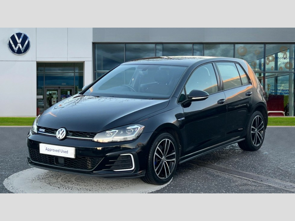 Volkswagen Golf 1.4 TSI GTE 5dr DSG 'Lights On' Reminder warning buzzer, 8" colour touch screen, ACC - Adaptive cruise control with front assist, forward collision warning, distance monitoring, city emergency brake and speed limiter, App-Connect, Bluetooth hands free telephone connection, Brake pad wear indicator warning light, Driver alert system, Driver profile selection, Exterior temperature gauge, Front assistant collision mitigation, Instrument cluster in white, Multifunction computer, PAS - speed related, Power assisted speed sensitive electro-mechanical steering, Rev counter, Stop/start system, Trip and service interval display, Ultrasonic front and rear optical and audible parking sensors, Warning buzzer and light for front seatbelts unfastened, Battery regeneration during braking, XDS electronic differential lock, CD/MP3/WMA, USB and SD card reader, aux-in, Composition media system, DAB Digital radio receiver, 3D-LED tinted rear light clusters with indicator sweep function, Automatic coming/leaving home lighting function and rain sensor, Automatic dimming rear view mirror/rain sensor, Automatic headlights, Black front air intake and radiator grille with chrome insert, Black rear diffuser, Body colour bumpers, Body colour door handles, Body colour door mirrors with integrated indicators, Chrome grille surround, Electric front windows, Electric rear windows, Electrically adjustable and heated door mirrors, Halogen headlights range adjustable via infotainment system with LED daytime running lights, Heated rear windscreen, High level 3rd brake light incorporating LED Technology, LED rear lights, Rain sensor, Rear number plate lights incorporating LED technology, Rear window aerial, Rear window wash/wipe with intermittent wipe, Reflectors in all doors, Side skirts, Tailgate with integrated rear roof spoiler, Twin exhaust tailpipe, Windscreen wipers/ intermittent wipe + 4 position delay, 12V socket in luggage compartment, 3 rear headrests, 60/40 split folding rear seat backrest, Air conditioning - 2 zone electronic climate control, Aluminium/leather gear knob, Bag hook in luggage compartment, Black headlining, Boot lashing points, Cooled glovebox, Courtesy light delay, Cover for storage compartment in centre, Driver/front passenger seat height adjustment, Dust/pollen filter, Front + rear carpet mats, Front centre armrest with storage compartment and two rear air vents, Front seat back storage pockets, Grab handles front x 2, rear x 2 with integrated coat hooks, Height/reach adjust steering wheel, Illuminated vanity mirrors, Instrument lighting white adjustable panel illumination, Isofix preparation for 2 rear child seats, Load through provision with rear centre armrest and cupholders x2, Luggage compartment cover, Luggage compartment light, Multifunction leather steering wheel with blue stitching, Multifunction leather steering wheel with leather trimmed gear knob including paddle shift, Overhead storage box, Stainless steel pedals, Storage box in luggage compartment, Storage compartments in doors, Storage compartments in front doors, Storage compartments in rear doors, Sun visors, Three spoke multi-function leather trimmed steering wheel and gearknob, Three spoke steering wheel, Ambient lighting pack - Golf, Mirror pack - Golf, 3 rear three point seatbelts, Anti-lock braking system (ABS), Automatic post collision braking system, Blue brake callipers, Child locks on rear doors, Driver/Passenger optimised head restraints, Drivers and Front Passengers airbags with front passengers airbag deactivation switch, Drivers knee airbag, Electronic stability control (ESC) including Electronic differential lock (EDL) and ASR (Traction control) with deactivation via infotainment system, Front and rear curtain airbags, Front seat side impact airbags, Hydraulic Brake Assist (HBA), Pre crash preventive occupant protection, Three point height adjustable front seatbelts with tensioners, Tyre pressure loss indicator, Alarm with interior protection, Electronic engine immobiliser, Remote central locking with 2 remote folding keys, Honeycomb black decorative inserts, Piano black centre console, 17" Rio de Janeiro alloy wheels with anti theft wheel bolts, Tyre repair kit