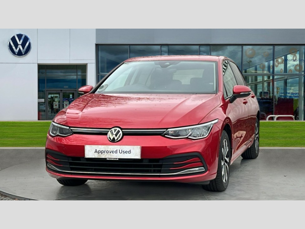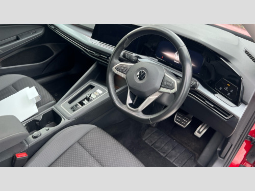 Volkswagen Golf 1.5 eTSI 150 Active 5dr DSG Adaptive cruise control (ACC) with speed limiter and front assist (reacting to vehicles pedestrians and cyclists), Car2X communication, Digital cockpit pro - 10.25" high resolution TFT dash display screen with customizable menus and information, Driver alert system, Dynamic road sign display, eCall - Emergency call service for SOS calls to emergency response, Lane assist, Mobile phone interface with wireless inductive charging function, Power assisted speed sensitive steering, Speedo, rev counter, electronic odometer, trip, service interval display, exterior temperature and fuel gauge, Start/Stop function, Warning buzzer and light for front seatbelts unfastened, Wireless app connect, Petrol Particulate Filter, XDS electronic differential lock for improved traction and handling, Premium USB cable in choice of either Apple or Android smartphone compatibility, Active badge on B Pillar, Ambient lighting, exterior illuminated styling elements at the sides, Auto dimming rear view mirror, Automatic headlamp activation with Coming home and Leaving home feature, Body colour bumpers, Body colour door handles, Body colour door mirrors with integrated indicators, Body colour rear roof spoiler, Electrically heated and adjustable door mirrors with memory feature, Front and rear electric windows, Heat insulating glass windscreen, Heated rear windscreen, Heated windscreen washer jets including low level warning, High level 3rd brake light, Highway light, LED License plate illumination, Rain sensor, Rear fog light on one side and reversing lights on both sides, Rear lights incorporating LED technology, Rear tinted glass 65% light absorbing from B pillar backwards, Rear windscreen washer and wiper with interval delay, Stainless steel scuff plates with Active logo, Welcome light, 12V socket in front centre console, 12V socket in luggage compartment, 3 rear head restraints, 3 zone climate with controls in the rear, Ambient lighting - Customisable 30 colour ambient lighting, Centre console, Drivers and front passengers sun visors with vanity mirrors, Front + rear carpet mats, Front centre armrest with storage compartment, Front cupholders x 2, Front reading lights x 2 incorporating LED technology, Front seat lumbar support adjuster, Glovebox, Heated front seats, Height adjustable front seats, Height and reach adjustable steering wheel, Isofix child seat preparation for 2 rear child seats and front passenger seat, Leather heated multifunction steering wheel, Luggage compartment lighting, Matt silver dash insert, Removable luggage compartment cover, Split folding backrest with centre armrest and unsplit rear seat bench, Stainless steel foot pedals, Storm grey roof lining, Waveform cloth upholstery, Woven fabric storage compartments in front and rear doors, 3 point height adj front seatbelts + pretensioners, 3 rear three point seatbelts, ABS, Driver and front passenger airbag with front passenger airbag deactivation, Drivers and front passengers safety optimised head restraints, Electronic parking brake with auto hold, ESC (Electronic Stability Control), Extended pedestrian protection measures, Front and rear passengers curtain airbag system including front side airbags, Front disc brakes, Rear disc brakes, Two tone horn, Tyre pressure monitoring system, Alarm with interior protection and deactivation via infotainment system, Electronic engine immobiliser, Chrome interior trim, 16" Galway alloy wheels with anti theft wheel bolts