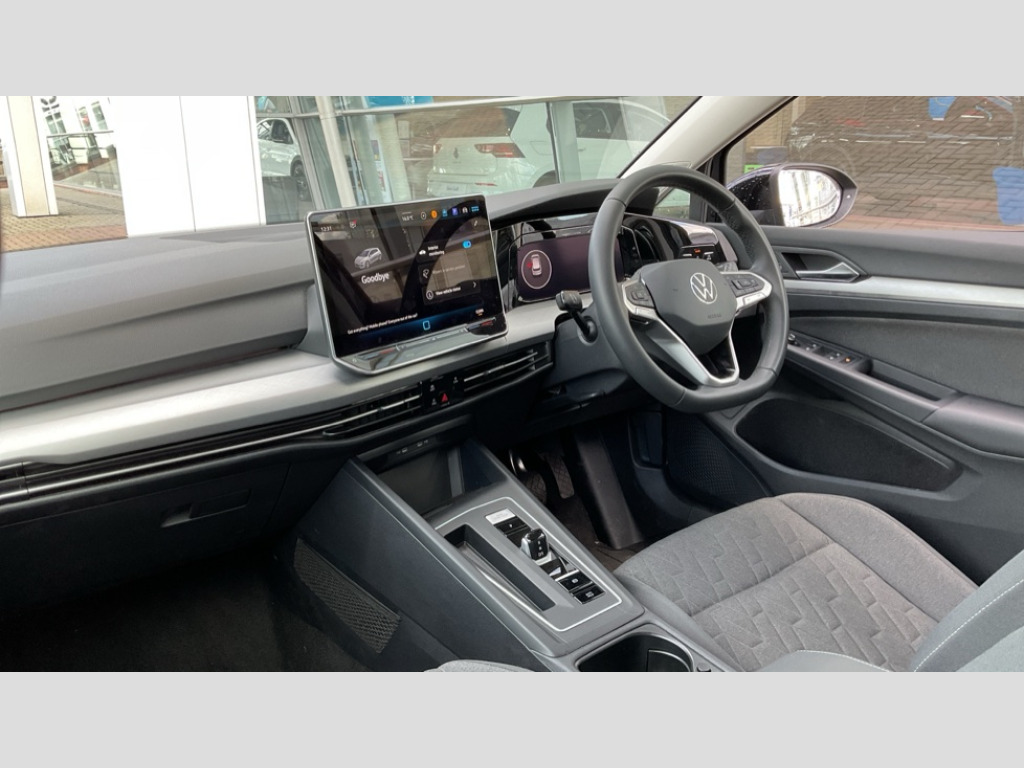 Volkswagen Golf 1.5 eTSI 150 Match 5dr DSG Activated carbon canister, Adaptive cruise control (ACC), Advanced driver attention and drowsiness monitor, Dynamic road sign display, E-Sim card for online connectivity, eCall emergency call system, Multi-color Digital cockpit pro, selection of different info profile possible, Multifunction front facing camera for distance control, Navigation system, Oncoming vehicle braking when turning including swerve support, Preparation for light assist system, Speed limiter, Speedo, rev counter, electronic odometer, trip, service interval display, exterior temperature and fuel gauge, Voice enhancer and voice control, Warning signal and warning light for front and rear seatbelts not fastened, We connect plus preparation, We connect preparation, Wireless app connect, Hybrid propulsion system, Petrol Particulate Filter, Start-stop system with battery regeneration (recuperation - energy recovery during braking), XDS electronic differential lock for improved traction and handling, 2 USB C ports in front, 2 USB charging sockets on the centre console in the rear charging capacity upto 45W, Comfort telephony + wireless charging, without wireless aerial connection, Digital radio reception (DAB), Diversity antenna for FM reception, Gaming platform via car app, Infotainment system with 12.9" display, Mobile phone interface with inductive charging feature, 3rd brake light, Auto dimming rear view mirror, Auto headlights, Automatic headlamp activation with Coming home and Leaving home feature, Body colour door handles, Body colour door mirrors, Exterior ambient lighting with illuminated door handles, Exterior mirrors convex on the left and aspherical on the right, Front and rear electric windows, Heat insulating windshield made of laminated glass, LED daytime running lights, Rain sensor, Rear exhaust tailpipe, Rear fog light on one side and reversing lights on both sides, Rear side wing doors, Rear tinted glass 65% light absorbing from B pillar backwards, Rear windscreen washer and wiper with interval delay, Remote electrically foldable door mirrors, puddle lights and reverse activated passenger's door mirror, Standard bumpers, Welcome light with surround lighting, 12V socket in front centre console, 12V socket in luggage compartment, 3 rear head restraints, 3 seat bench in 2nd row, Chrome plated radiator grille inserts, air vent surrounds and light switch surrounds, Front centre armrest, Front head restraints, Front seat lumbar support adjuster, ISOFIX anchors for child seats on outer rear bench seats and on front passanger seat compatible for i-Size, Luggage compartment lighting, Manual height adjustable front seats, Plastic gear knob, Rear cupholder and loadthough, Single front passenger seat, Soul black instrument panel, Split folding backrest with centre armrest and unsplit rear seat bench, Standard pedal cluster, Storm grey roof lining, Sun visors with illuminated vanity mirrors, Technology park and comfort pro package - Golf Hatchback, 3 point height adj front seatbelts + pretensioners, 3 rear three point seatbelts, ABS, Autonomous emergency braking front assist with pedestrian and cyclist monitoring, Child locks on rear doors, Driver and front passenger airbag with front passenger airbag deactivation, Electronic parking brake with auto hold, ESC (Electronic Stability Control), Extended pedestrian protection measures, Hill start assist, Rear disc brakes, Two tone horn, Tyre pressure loss indicator, Volkswagen roadside assistance, Anti theft wheel bolts, Preparation for alcohol interlock, Nature cross brushed decorative inserts for dashboard and front door panels