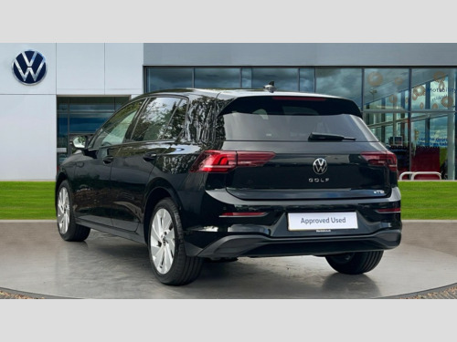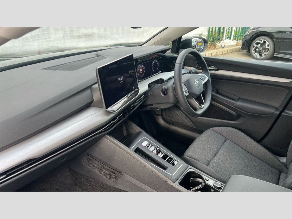 Volkswagen Golf 1.5 eTSI 150 Match 5dr DSG Activated carbon canister, Adaptive cruise control (ACC), Advanced driver attention and drowsiness monitor, Dynamic road sign display, E-Sim card for online connectivity, eCall emergency call system, Multi-color Digital cockpit pro, selection of different info profile possible, Multifunction front facing camera for distance control, Navigation system, Oncoming vehicle braking when turning including swerve support, Speed limiter, Speedo, rev counter, electronic odometer, trip, service interval display, exterior temperature and fuel gauge, Voice enhancer and voice control, Warning signal and warning light for front and rear seatbelts not fastened, We connect plus preparation, We connect preparation, Wireless app connect, Hybrid propulsion system, Petrol Particulate Filter, Start-stop system with battery regeneration (recuperation - energy recovery during braking), XDS electronic differential lock for improved traction and handling, 2 USB C ports in front, 2 USB charging sockets on the centre console in the rear charging capacity upto 45W, Digital radio reception (DAB), Diversity antenna for FM reception, Gaming platform via car app, Infotainment system with 12.9" display, Mobile phone interface with inductive charging feature, 3rd brake light, Automatic headlamp activation with Coming home and Leaving home feature, Body colour door handles, Body colour door mirrors, Exterior mirrors convex on the left and aspherical on the right, Front and rear electric windows, Heat insulating windshield made of laminated glass, LED separate daytime running light, Rear exhaust tailpipe, Rear fog light on one side and reversing lights on both sides, Rear side wing doors, Rear tinted glass 65% light absorbing from B pillar backwards, Rear windscreen washer and wiper with interval delay, Remote electrically foldable door mirrors, puddle lights and reverse activated passenger's door mirror, Standard bumpers, Welcome light with surround lighting, 12V socket in front centre console, 12V socket in luggage compartment, 3 rear head restraints, 3 seat bench in 2nd row, Chrome plated radiator grille inserts, air vent surrounds and light switch surrounds, Front centre armrest, Front head restraints, Front seat lumbar support adjuster, ISOFIX anchors for child seats on outer rear bench seats and on front passanger seat compatible for i-Size, Luggage compartment lighting, Manual height adjustable front passenger seat, Manually height adjustable driver seat, Plastic gear knob, Rear cupholder and loadthough, Single front passenger seat, Soul black instrument panel, Split folding backrest with centre armrest and unsplit rear seat bench, Standard pedal cluster, Storm grey roof lining, Sun visors with illuminated vanity mirrors, Technology park and comfort pro package - Golf Hatchback, 3 point height adj front seatbelts + pretensioners, 3 rear three point seatbelts, ABS, Autonomous emergency braking front assist with pedestrian and cyclist monitoring, Child locks on rear doors, Driver and front passenger airbag with front passenger airbag deactivation, Electronic parking brake with auto hold, ESC (Electronic Stability Control), Extended pedestrian protection measures, Hill start assist, Rear disc brakes, Two tone horn, Tyre pressure loss indicator, Volkswagen roadside assistance, Anti theft wheel bolts, Preparation for alcohol interlock, Nature cross brushed decorative inserts for dashboard and front door panels