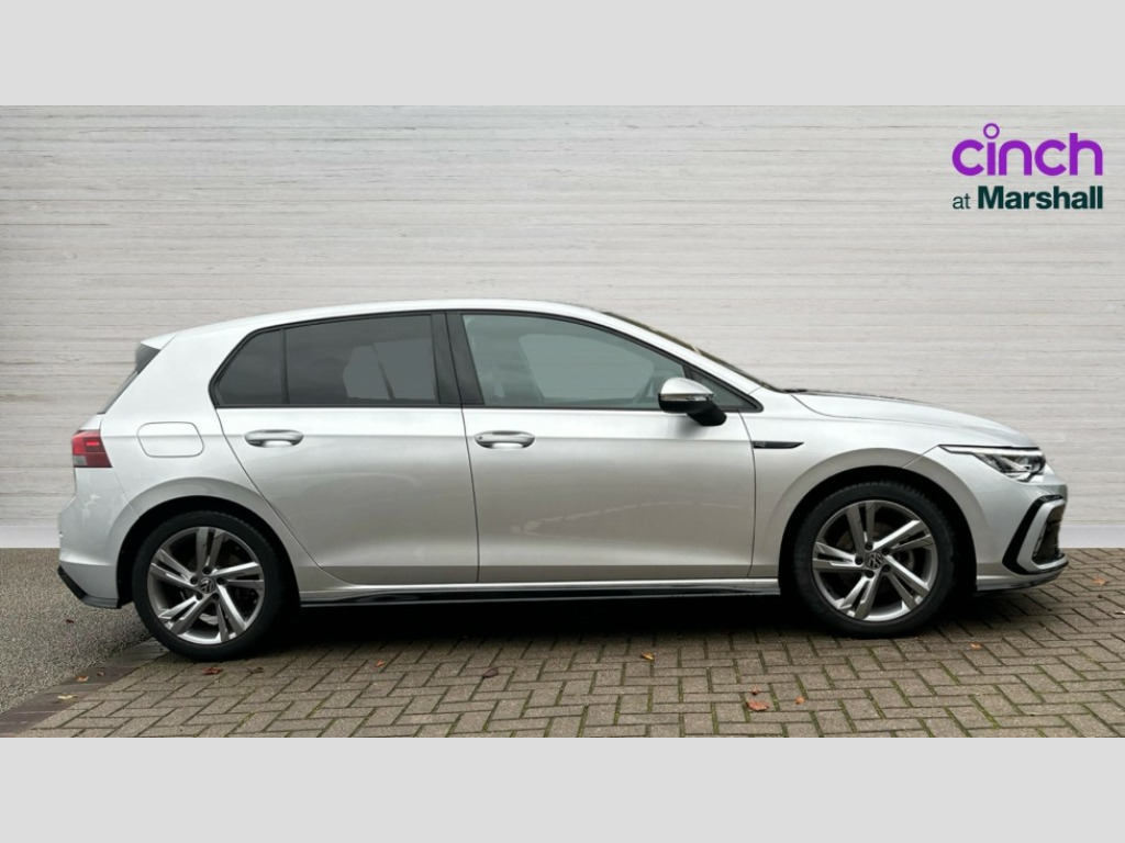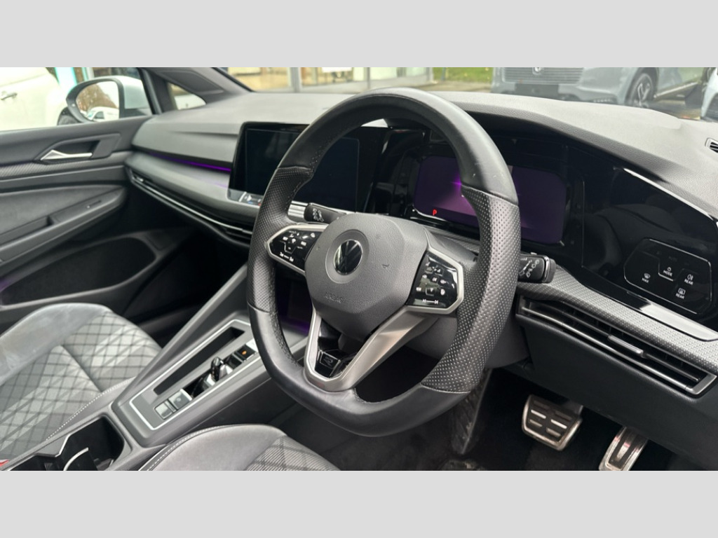 Volkswagen Golf 1.5 eTSI 150 R-Line 5dr DSG Adaptive cruise control (ACC) with speed limiter and front assist (reacting to vehicles pedestrians and cyclists), Car2X communication, Digital cockpit pro - 10.25" high resolution TFT dash display screen with customizable menus and information, Driver alert system, Driver profile selection, Dynamic road sign display, eCall - Emergency call service for SOS calls to emergency response, Lane assist, Mobile phone interface with wireless inductive charging function, Progressive steering, Speedo, rev counter, electronic odometer, trip, service interval display, exterior temperature and fuel gauge, Start/Stop function, Warning buzzer and light for front seatbelts unfastened, Wireless app connect, Petrol Particulate Filter, XDS electronic differential lock for improved traction and handling, Premium USB cable in choice of either Apple or Android smartphone compatibility, Ambient lighting, exterior illuminated styling elements at the sides, Auto dimming rear view mirror, Automatic headlamp activation with Coming home and Leaving home feature, Body colour door handles, Body colour door mirrors with integrated indicators, Body colour rear roof spoiler, Electrically heated and adjustable door mirrors with memory feature, Front and rear electric windows, Heat insulating glass windscreen, Heated rear windscreen, High level 3rd brake light, Highway light, LED License plate illumination, R Line body coloured bumpers, Rain sensor, Rear fog light on one side and reversing lights on both sides, Rear lights incorporating LED technology, Rear tinted glass 65% light absorbing from B pillar backwards, Rear windscreen washer and wiper with interval delay, Welcome light, 12V socket in front centre console, 12V socket in luggage compartment, 3 rear head restraints, Ambient lighting - Customisable 30 colour ambient lighting, Black roof lining, Brushed stainless steel pedals, Centre console, Chrome plated surround to electric mirror button, window switch and air vent surrounds, Drivers and front passengers sun visors with vanity mirrors, Front + rear carpet mats, Front centre armrest with storage compartment, Front cupholders x 2, Front reading lights x 2 incorporating LED technology, Front seat lumbar support adjuster, Front sports seats, Glovebox, Height adjustable front seats, Height and reach adjustable steering wheel, Isofix child seat preparation for 2 rear child seats and front passenger seat, Luggage compartment lighting, R Line door and side trim panel, R Line front seats integrated head restraints, R-Line leather wrapped multi function sports heated steering wheel, Removable luggage compartment cover, Sardegna cloth upholstery with front and outer rear seats Art Velour inner sides of bolsters, Split folding backrest with centre armrest and unsplit rear seat bench, Woven fabric storage compartments in front and rear doors, 3 point height adj front seatbelts + pretensioners, 3 rear three point seatbelts, ABS, Driver and front passenger airbag with front passenger airbag deactivation, Drivers and front passengers safety optimised head restraints, Electronic parking brake with auto hold, ESC (Electronic Stability Control), Extended pedestrian protection measures, Front and rear passengers curtain airbag system including front side airbags, Front disc brakes, Rear disc brakes, Two tone horn, Tyre pressure monitoring system, Alarm with interior protection and deactivation via infotainment system, Electronic engine immobiliser, Carbon grey decorative inserts in dash and front door trim panels, Soul dashboard