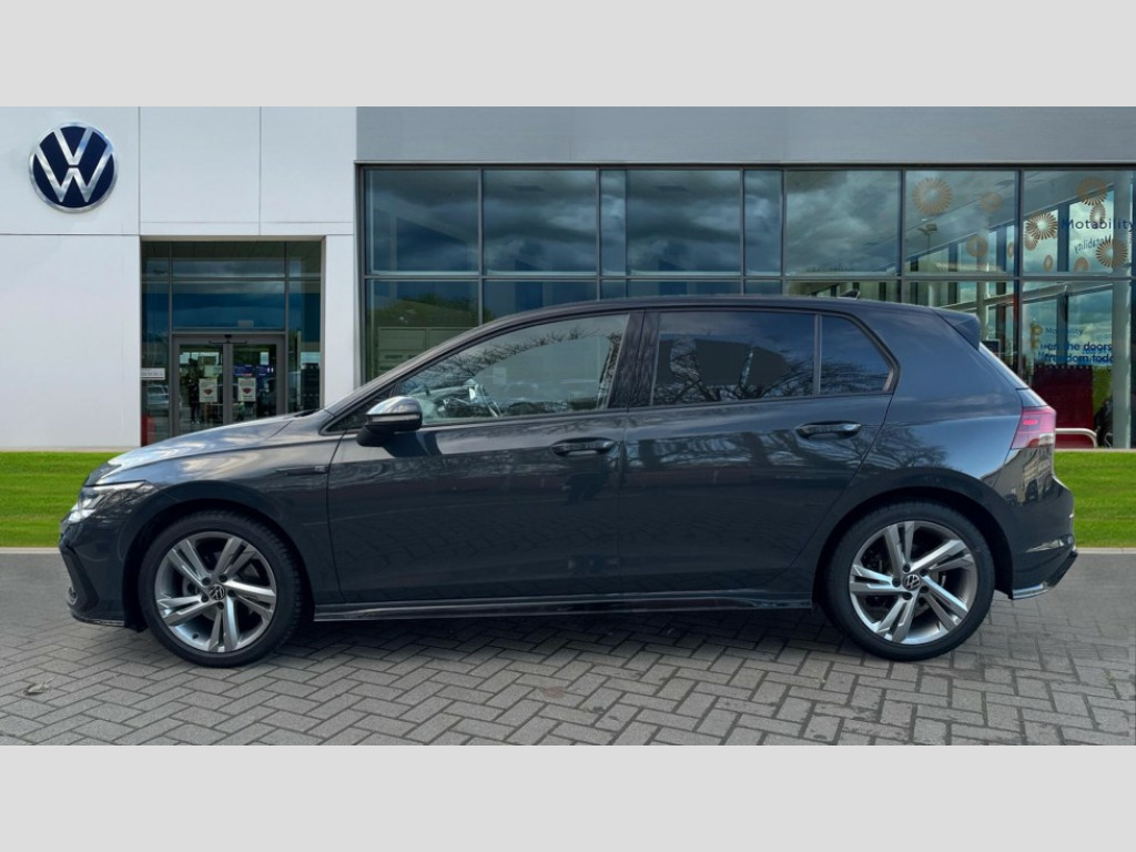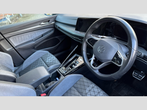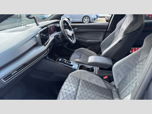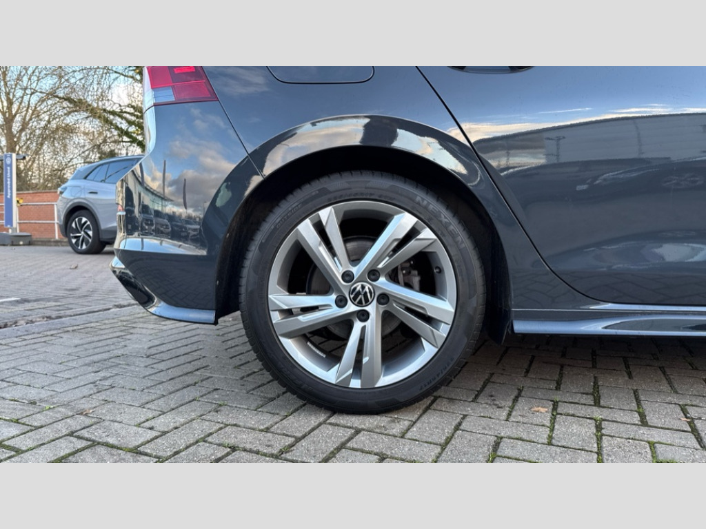 Volkswagen Golf 1.5 eTSI 150 R-Line 5dr DSG Adaptive cruise control (ACC) with speed limiter and front assist (reacting to vehicles pedestrians and cyclists), Car2X communication, Digital cockpit pro - 10.25" high resolution TFT dash display screen with customizable menus and information, Driver alert system, Dynamic road sign display, eCall - Emergency call service for SOS calls to emergency response, Lane assist, Mobile phone interface with wireless inductive charging function, PAS, Speedo, rev counter, electronic odometer, trip, service interval display, exterior temperature and fuel gauge, Start/Stop function, USB-C ports in the front and rear centre console with increased charging performance, Warning buzzer and light for front seatbelts unfastened, Wireless app connect, Petrol Particulate Filter, XDS electronic differential lock for improved traction and handling, Premium USB cable in choice of either Apple or Android smartphone compatibility, Ambient lighting, exterior illuminated styling elements at the sides, Auto dimming rear view mirror, Automatic headlamp activation with Coming home and Leaving home feature, Automatic headlights, Body colour door handles, Body colour door mirrors with integrated indicators, Body colour rear roof spoiler, Dynamic headlight range control, Electrically heated and adjustable door mirrors with memory feature, Front and rear electric windows, Heat insulating glass windscreen, Heated rear windscreen, High level 3rd brake light, Highway light, LED daytime running lights, LED headlights incorporating turn signals, LED License plate illumination, R Line body coloured bumpers, Rain sensor, Rear fog light on one side and reversing lights on both sides, Rear lights incorporating LED technology, Rear side wing doors, Rear tinted glass 65% light absorbing from B pillar backwards, Rear windscreen washer and wiper with interval delay, Welcome light, 12V socket in front centre console, 12V socket in luggage compartment, 3 rear head restraints, 3 seat bench in 2nd row, Ambient lighting - Customisable 30 colour ambient lighting, Black roof lining, Brushed stainless steel pedals, Chrome plated surround to electric mirror button, window switch and air vent surrounds, Drivers and front passengers sun visors with vanity mirrors, Front + rear carpet mats in recycled material, Front centre armrest with storage compartment, Front cupholders x 2, Front passenger seat, Front reading lights x 2 incorporating LED technology, Front seat lumbar support adjuster, Front sports seats, Glovebox, Height adjustable front seats, Height and reach adjustable steering wheel, Isofix child seat preparation for 2 rear child seats and front passenger seat, Luggage compartment lighting, R Line door and side trim panel, R Line front seats integrated head restraints, R-Line leather wrapped multi function sports heated steering wheel, Removable luggage compartment cover, Sardegna cloth upholstery with front and outer rear seats Art Velour inner sides of bolsters, Split folding backrest with centre armrest and unsplit rear seat bench, Woven fabric storage compartments in front and rear doors, 3 point height adj front seatbelts + pretensioners, 3 rear three point seatbelts, ABS, Child locks on rear doors, Driver and front passenger airbag with front passenger airbag deactivation, Drivers and front passengers safety optimised head restraints, Electronic parking brake with auto hold, ESC (Electronic Stability Control), Extended pedestrian protection measures, Front and rear passengers curtain airbag system including front side airbags, Front centre airbag, Front disc brakes, Front side airbags with curtain airbags, Rear disc brakes, Two tone horn, Tyre pressure monitoring system, Alarm with interior protection and deactivation via infotainment system, Electronic engine immobiliser, Carbon grey decorative inserts in dash and front door trim panels, High gloss black centre console, Soul dashboard