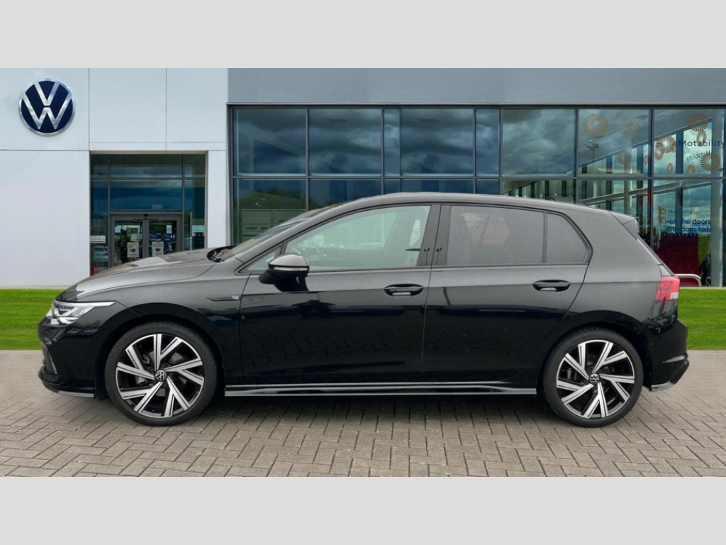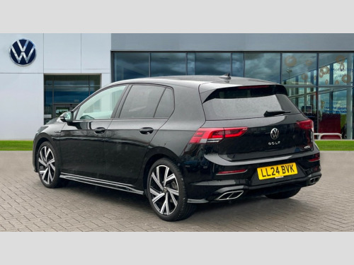 Volkswagen Golf 1.5 eTSI 150 R-Line 5dr DSG Adaptive cruise control (ACC) with speed limiter and front assist (reacting to vehicles pedestrians and cyclists), Car2X communication, Digital cockpit pro - 10.25" high resolution TFT dash display screen with customizable menus and information, Driver alert system, Dynamic road sign display, eCall - Emergency call service for SOS calls to emergency response, Lane assist, Mobile phone interface with wireless inductive charging function, Multifunction camera for distance control, PAS, Speedo, rev counter, electronic odometer, trip, service interval display, exterior temperature and fuel gauge, Start/Stop function, USB-C ports in the front and rear centre console with increased charging performance, Warning buzzer and light for front seatbelts unfastened, Wireless app connect, Petrol Particulate Filter, XDS electronic differential lock for improved traction and handling, Premium USB cable in choice of either Apple or Android smartphone compatibility, Ambient lighting, exterior illuminated styling elements at the sides, Auto dimming rear view mirror, Automatic headlamp activation with Coming home and Leaving home feature, Automatic headlights, Body colour door handles, Body colour door mirrors with integrated indicators, Body colour rear roof spoiler, Electrically heated and adjustable door mirrors with memory feature, Front and rear electric windows, Heat insulating glass windscreen, Heated rear windscreen, High level 3rd brake light, Highway light, LED License plate illumination, R Line body coloured bumpers, Rain sensor, Rear fog light on one side and reversing lights on both sides, Rear lights incorporating LED technology, Rear side wing doors, Rear tinted glass 65% light absorbing from B pillar backwards, Rear windscreen washer and wiper with interval delay, Welcome light, 12V socket in front centre console, 12V socket in luggage compartment, 3 rear head restraints, 3 seat bench in 2nd row, Ambient lighting - Customisable 30 colour ambient lighting, Black roof lining, Brushed stainless steel pedals, Chrome plated surround to electric mirror button, window switch and air vent surrounds, Drivers and front passengers sun visors with vanity mirrors, Front + rear carpet mats, Front centre armrest with storage compartment, Front cupholders x 2, Front passenger seat, Front reading lights x 2 incorporating LED technology, Front seat lumbar support adjuster, Front sports seats, Glovebox, Height adjustable front seats, Height and reach adjustable steering wheel, Isofix child seat preparation for 2 rear child seats and front passenger seat, Luggage compartment lighting, R Line door and side trim panel, R Line front seats integrated head restraints, R-Line leather wrapped multi function sports heated steering wheel, Removable luggage compartment cover, Sardegna cloth upholstery with front and outer rear seats Art Velour inner sides of bolsters, Split folding backrest with centre armrest and unsplit rear seat bench, Titanium black instrument panel, Woven fabric storage compartments in front and rear doors, 3 point height adj front seatbelts + pretensioners, 3 rear three point seatbelts, ABS, Child locks on rear doors, Driver and front passenger airbag with front passenger airbag deactivation, Drivers and front passengers safety optimised head restraints, Electronic parking brake with auto hold, ESC (Electronic Stability Control), Extended pedestrian protection measures, Front and rear passengers curtain airbag system including front side airbags, Front centre airbag, Front disc brakes, Front side airbags with curtain airbags, Rear disc brakes, Two tone horn, Tyre pressure monitoring system, Alarm with interior protection and deactivation via infotainment system, Electronic engine immobiliser, Carbon grey decorative inserts in dash and front door trim panels, High gloss black centre console