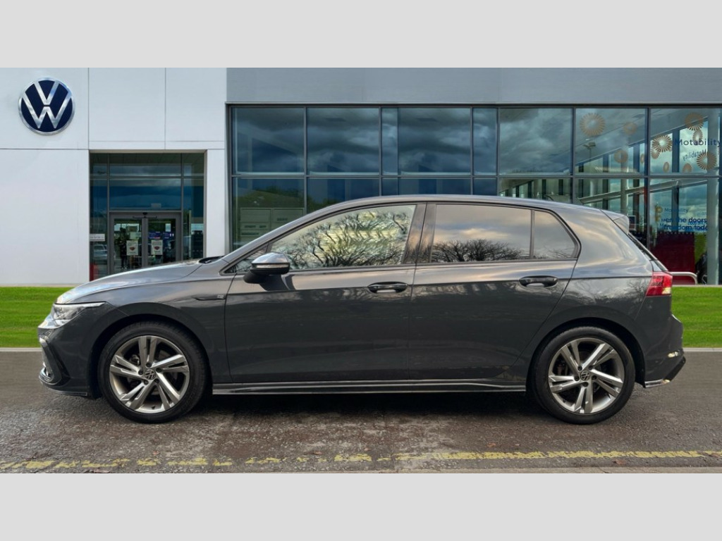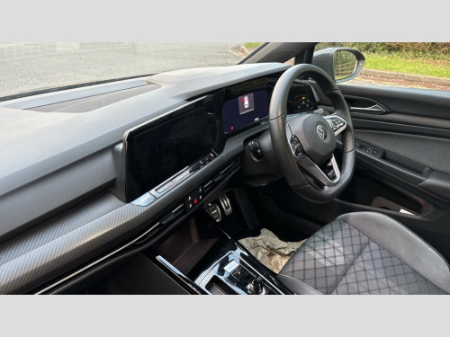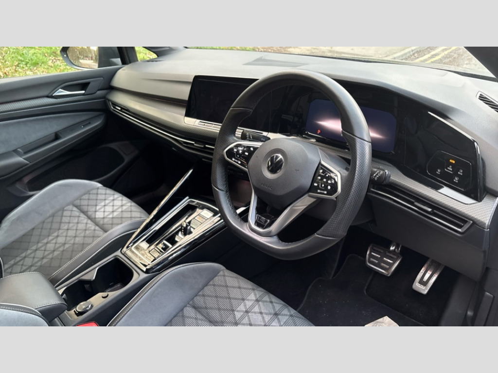 Volkswagen Golf 1.5 eTSI 150 R-Line 5dr DSG Adaptive cruise control (ACC) with speed limiter and front assist (reacting to vehicles pedestrians and cyclists), Car2X communication, Digital cockpit pro - 10.25" high resolution TFT dash display screen with customizable menus and information, Driver alert system, Dynamic road sign display, eCall - Emergency call service for SOS calls to emergency response, Lane assist, Mobile phone interface with wireless inductive charging function, PAS, Speedo, rev counter, electronic odometer, trip, service interval display, exterior temperature and fuel gauge, Start/Stop function, USB-C ports in the front and rear centre console with increased charging performance, Warning buzzer and light for front seatbelts unfastened, Wireless app connect, Petrol Particulate Filter, XDS electronic differential lock for improved traction and handling, Premium USB cable in choice of either Apple or Android smartphone compatibility, Ambient lighting, exterior illuminated styling elements at the sides, Auto dimming rear view mirror, Automatic headlamp activation with Coming home and Leaving home feature, Automatic headlights, Body colour door handles, Body colour door mirrors with integrated indicators, Body colour rear roof spoiler, Dynamic headlight range control, Electrically heated and adjustable door mirrors with memory feature, Front and rear electric windows, Heat insulating glass windscreen, Heated rear windscreen, High level 3rd brake light, Highway light, LED daytime running lights, LED headlights incorporating turn signals, LED License plate illumination, R Line body coloured bumpers, Rain sensor, Rear fog light on one side and reversing lights on both sides, Rear lights incorporating LED technology, Rear side wing doors, Rear tinted glass 65% light absorbing from B pillar backwards, Rear windscreen washer and wiper with interval delay, Welcome light, 12V socket in front centre console, 12V socket in luggage compartment, 3 rear head restraints, 3 seat bench in 2nd row, Ambient lighting - Customisable 30 colour ambient lighting, Black roof lining, Brushed stainless steel pedals, Chrome plated surround to electric mirror button, window switch and air vent surrounds, Drivers and front passengers sun visors with vanity mirrors, Front + rear carpet mats in recycled material, Front centre armrest with storage compartment, Front cupholders x 2, Front passenger seat, Front reading lights x 2 incorporating LED technology, Front seat lumbar support adjuster, Front sports seats, Glovebox, Height adjustable front seats, Height and reach adjustable steering wheel, Isofix child seat preparation for 2 rear child seats and front passenger seat, Luggage compartment lighting, R Line door and side trim panel, R Line front seats integrated head restraints, R-Line leather wrapped multi function sports heated steering wheel, Removable luggage compartment cover, Sardegna cloth upholstery with front and outer rear seats Art Velour inner sides of bolsters, Split folding backrest with centre armrest and unsplit rear seat bench, Woven fabric storage compartments in front and rear doors, 3 point height adj front seatbelts + pretensioners, 3 rear three point seatbelts, ABS, Child locks on rear doors, Driver and front passenger airbag with front passenger airbag deactivation, Drivers and front passengers safety optimised head restraints, Electronic parking brake with auto hold, ESC (Electronic Stability Control), Extended pedestrian protection measures, Front and rear passengers curtain airbag system including front side airbags, Front centre airbag, Front disc brakes, Front side airbags with curtain airbags, Rear disc brakes, Two tone horn, Tyre pressure monitoring system, Alarm with interior protection and deactivation via infotainment system, Electronic engine immobiliser, Carbon grey decorative inserts in dash and front door trim panels, High gloss black centre console, Soul dashboard
