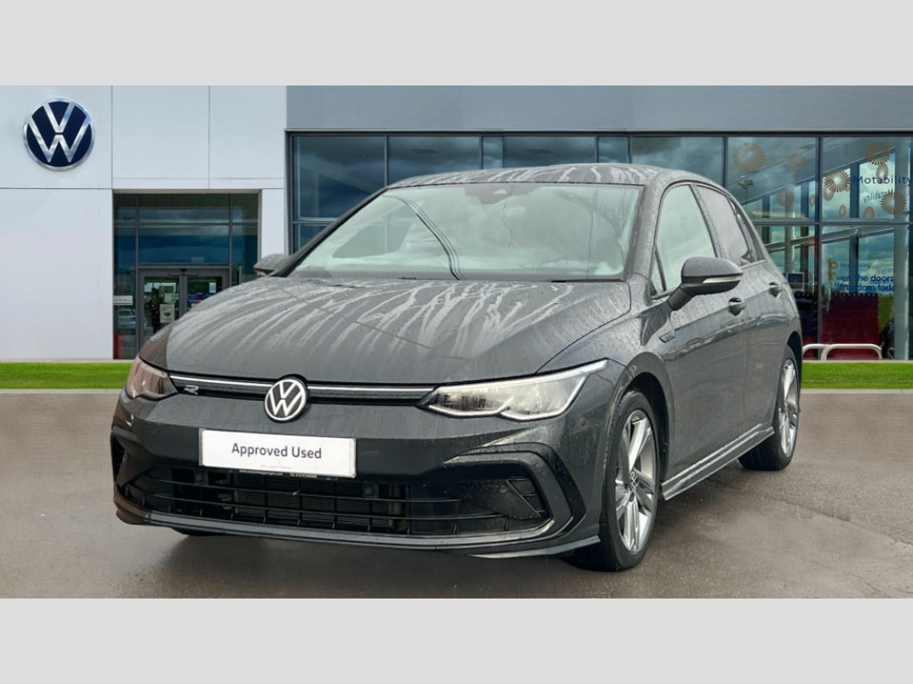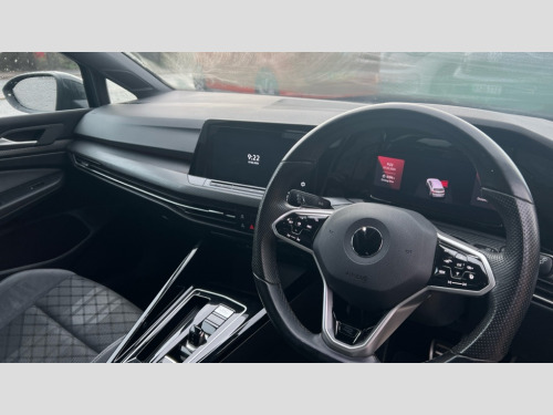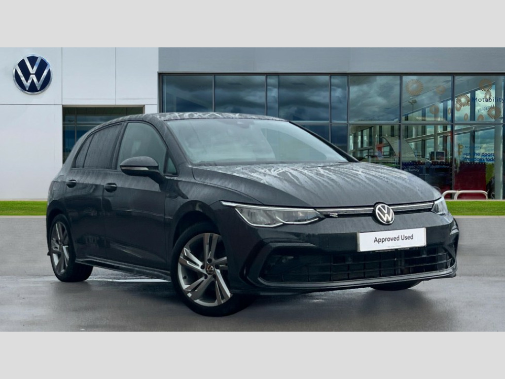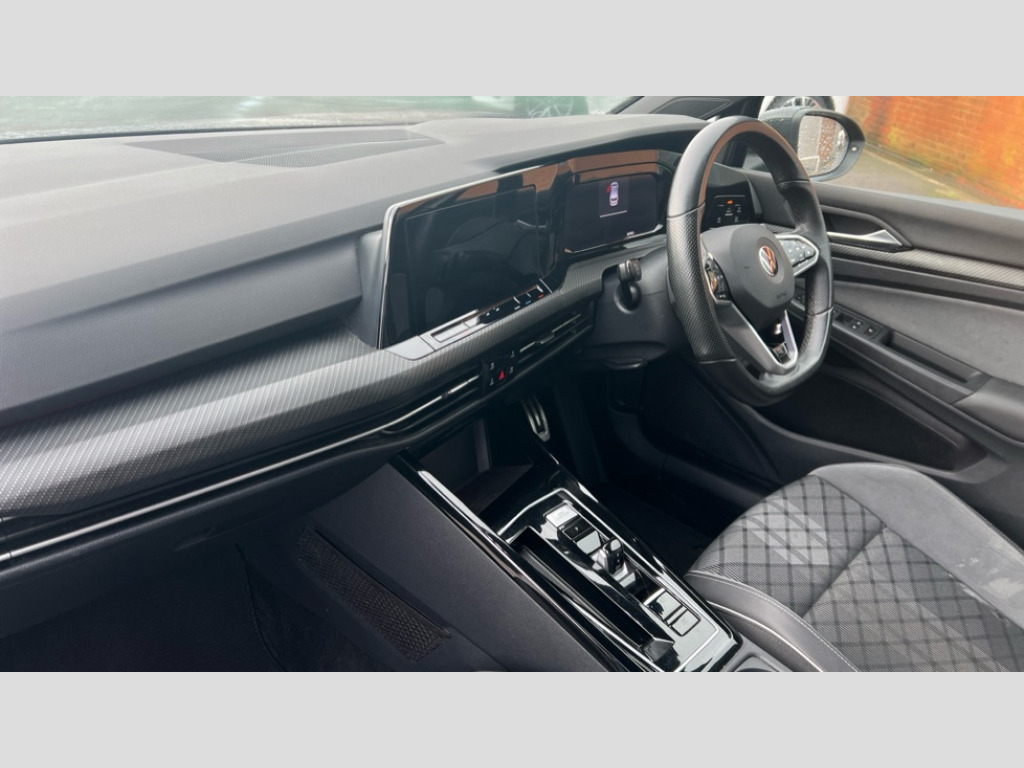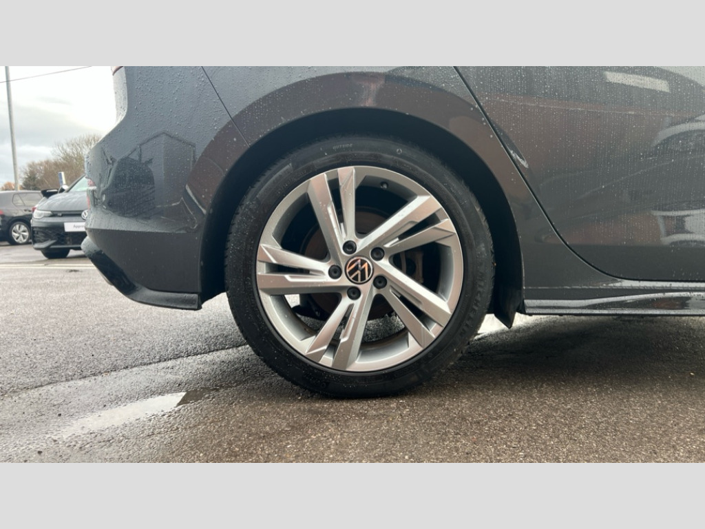 Volkswagen Golf 1.5 eTSI 150 R-Line 5dr DSG Adaptive cruise control (ACC) with speed limiter and front assist (reacting to vehicles pedestrians and cyclists), Car2X communication, Digital cockpit pro - 10.25" high resolution TFT dash display screen with customizable menus and information, Driver alert system, Dynamic road sign display, eCall - Emergency call service for SOS calls to emergency response, Lane assist, Mobile phone interface with wireless inductive charging function, PAS, Speedo, rev counter, electronic odometer, trip, service interval display, exterior temperature and fuel gauge, Start/Stop function, USB-C ports in the front and rear centre console with increased charging performance, Warning buzzer and light for front seatbelts unfastened, Wireless app connect, Petrol Particulate Filter, XDS electronic differential lock for improved traction and handling, Premium USB cable in choice of either Apple or Android smartphone compatibility, Ambient lighting, exterior illuminated styling elements at the sides, Auto dimming rear view mirror, Automatic headlamp activation with Coming home and Leaving home feature, Automatic headlights, Body colour door handles, Body colour door mirrors with integrated indicators, Body colour rear roof spoiler, Dynamic headlight range control, Electrically heated and adjustable door mirrors with memory feature, Front and rear electric windows, Heat insulating glass windscreen, Heated rear windscreen, High level 3rd brake light, Highway light, LED daytime running lights, LED headlights incorporating turn signals, LED License plate illumination, R Line body coloured bumpers, Rain sensor, Rear fog light on one side and reversing lights on both sides, Rear lights incorporating LED technology, Rear side wing doors, Rear tinted glass 65% light absorbing from B pillar backwards, Rear windscreen washer and wiper with interval delay, Welcome light, 12V socket in front centre console, 12V socket in luggage compartment, 3 rear head restraints, 3 seat bench in 2nd row, Ambient lighting - Customisable 30 colour ambient lighting, Black roof lining, Brushed stainless steel pedals, Chrome plated surround to electric mirror button, window switch and air vent surrounds, Drivers and front passengers sun visors with vanity mirrors, Front + rear carpet mats, Front centre armrest with storage compartment, Front cupholders x 2, Front passenger seat, Front reading lights x 2 incorporating LED technology, Front seat lumbar support adjuster, Front sports seats, Glovebox, Height adjustable front seats, Height and reach adjustable steering wheel, Isofix child seat preparation for 2 rear child seats and front passenger seat, Luggage compartment lighting, R Line door and side trim panel, R Line front seats integrated head restraints, R-Line leather wrapped multi function sports heated steering wheel, Removable luggage compartment cover, Sardegna cloth upholstery with front and outer rear seats Art Velour inner sides of bolsters, Split folding backrest with centre armrest and unsplit rear seat bench, Woven fabric storage compartments in front and rear doors, 3 point height adj front seatbelts + pretensioners, 3 rear three point seatbelts, ABS, Child locks on rear doors, Driver and front passenger airbag with front passenger airbag deactivation, Drivers and front passengers safety optimised head restraints, Electronic parking brake with auto hold, ESC (Electronic Stability Control), Extended pedestrian protection measures, Front and rear passengers curtain airbag system including front side airbags, Front disc brakes, Rear disc brakes, Two tone horn, Tyre pressure monitoring system, Alarm with interior protection and deactivation via infotainment system, Electronic engine immobiliser, Carbon grey decorative inserts in dash and front door trim panels, High gloss black centre console, Soul dashboard