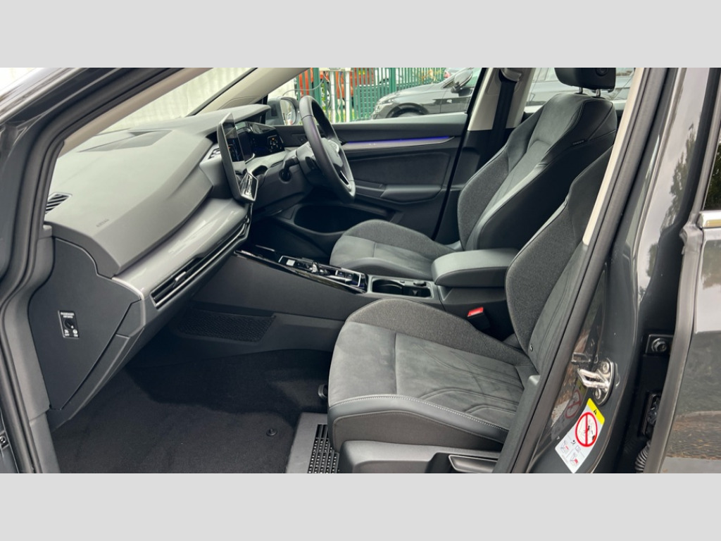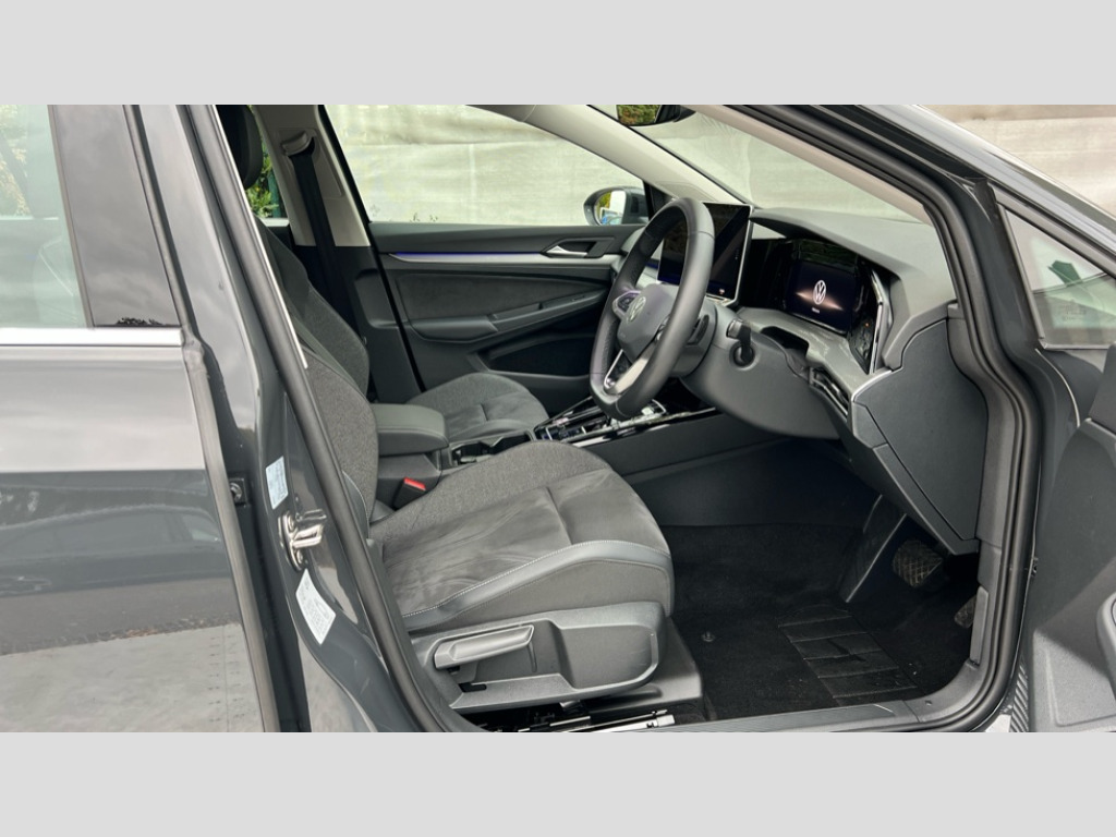 Volkswagen Golf 1.5 eTSI 150 Style 5dr DSG Activated carbon canister, Adaptive cruise control (ACC), Advanced driver attention and drowsiness monitor, Dynamic road sign display, E-Sim card for online connectivity, eCall emergency call system, Multi-color Digital cockpit pro, selection of different info profile possible, Multifunction front facing camera for distance control, Navigation system, Oncoming vehicle braking when turning including swerve support, Preparation for light assist system, Side assist blind spot lane change system, rear traffic alert and exit warning system, Speed limiter, Speedo, rev counter, electronic odometer, trip, service interval display, exterior temperature and fuel gauge, Traffic jam assist, Voice enhancer and voice control, Warning signal and warning light for front and rear seatbelts not fastened, We connect plus preparation, We connect preparation, Wireless app connect, Hybrid propulsion system, Petrol Particulate Filter, Start-stop system with battery regeneration (recuperation - energy recovery during braking), XDS electronic differential lock for improved traction and handling, 2 USB C ports in front, 2 USB charging sockets on the centre console in the rear charging capacity upto 45W, Comfort telephony + wireless charging, without wireless aerial connection, Digital radio reception (DAB), Diversity antenna for FM reception, Gaming platform via car app, Infotainment system with 12.9" display, Mobile phone interface with inductive charging feature, 3rd brake light, Auto dimming rear view mirror, Auto headlights, Automatic headlamp activation with Coming home and Leaving home feature, Body colour bumpers, Body colour door handles, Body colour door mirrors, Chrome trimmed front air intake surrounds, Chrome trims on the side window bottom, Exterior ambient lighting with with illuminated molding between the headlamps and door handle recess, Exterior mirrors convex on the left and aspherical on the right, Front and rear electric windows, Heat insulating windshield made of laminated glass, LED daytime running lights, Rain sensor, Rear exhaust tailpipe, Rear fog light on one side and reversing lights on both sides, Rear side wing doors, Rear windscreen washer and wiper with interval delay, Remote electrically foldable door mirrors, puddle lights and reverse activated passenger's door mirror, Welcome light with surround lighting, 12V socket in front centre console, 12V socket in luggage compartment, 3 rear head restraints, 3 seat bench in 2nd row, Air care climatronic 3 Zone automatic climate control with rear air conditioning control panel, Ambient lighting with 30 colour including LED light unit in front footwell with selectable light colour, Art velours cloth upholstery, Carpet mats, front and rear, Chrome plated radiator grille inserts, air vent surrounds and light switch surrounds, Door insert, side trim panel and arm support in leatherette, Front centre armrest, Front head restraints, Front seat lumbar support adjuster, ISOFIX anchors for child seats on outer rear bench seats and on front passanger seat compatible for i-Size, Luggage compartment lighting, Manual height adjustable front seats, Plastic gear knob, Rear cupholder and loadthough, Single front passenger seat, Soul black instrument panel, Split folding backrest with centre armrest and unsplit rear seat bench, Sports comfort seats in front, Standard pedal cluster, Storm grey roof lining, Sun visors with illuminated vanity mirrors, Driver assistance pack - Golf DSG Estate/Hatchback, 3 point height adj front seatbelts + pretensioners, 3 rear three point seatbelts, ABS, Autonomous emergency braking front assist with pedestrian and cyclist monitoring, Child locks on rear doors, Driver and front passenger airbag with front passenger airbag deactivation, Electronic parking brake with auto hold, ESC (Electronic Stability Control), Extended pedestrian protection measures, Hill start assist, Rear disc brakes, Two tone horn, Tyre pressure loss indicator, Volkswagen roadside assistance, Anti theft wheel bolts, Preparation for alcohol interlock, New brushed dark metal decorative inserts for dashboard and front door panels
