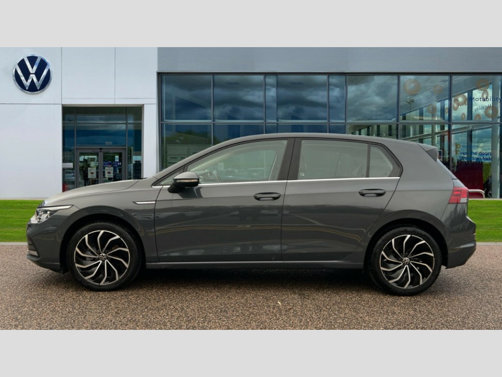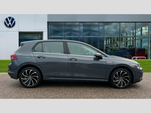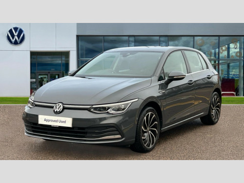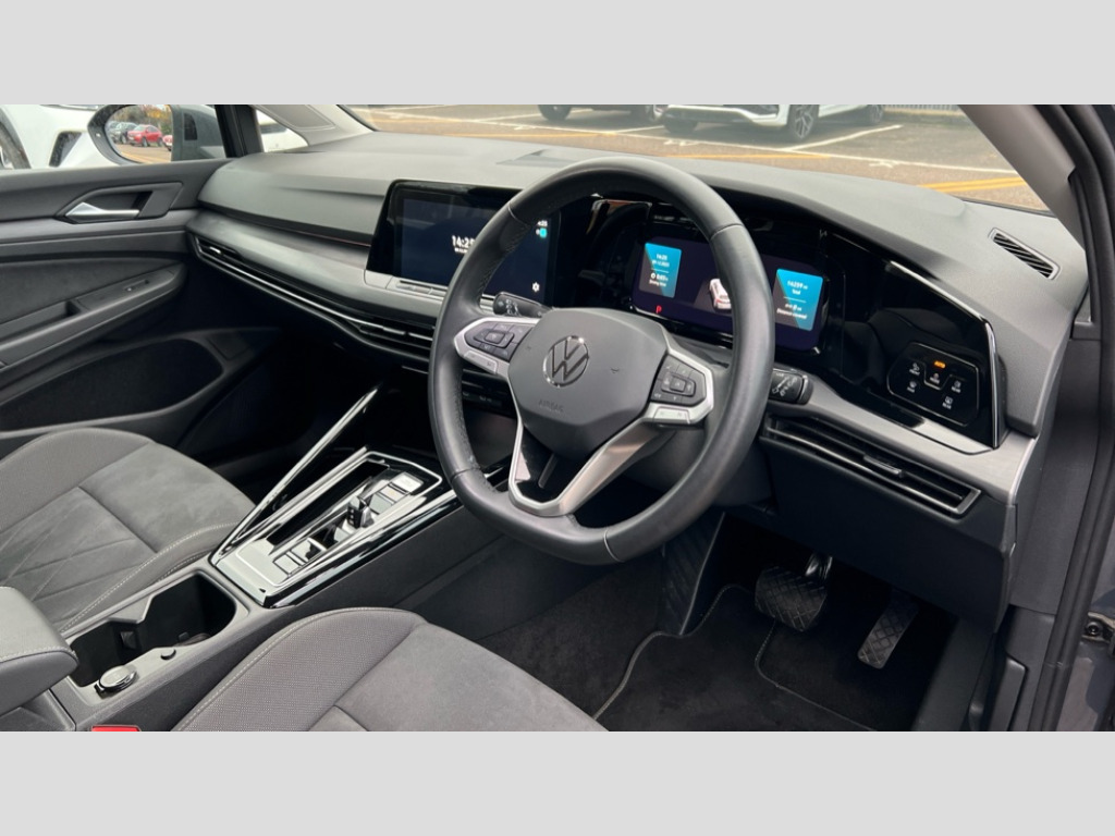 Volkswagen Golf 1.5 eTSI Style 5dr DSG Adaptive cruise control (ACC) with speed limiter and front assist (reacting to vehicles pedestrians and cyclists), Car2X communication, Digital cockpit pro - 10.25" high resolution TFT dash display screen with customizable menus and information, Driver alert system, Dynamic road sign display, eCall - Emergency call service for SOS calls to emergency response, Lane assist, Lane change assist with Rear traffic alert, Mobile phone interface with wireless inductive charging function, Multifunction camera for distance control, Power assisted speed sensitive steering, Speedo, rev counter, electronic odometer, trip, service interval display, exterior temperature and fuel gauge, Start/Stop function, Travel assist with emergency side assist with electrically foldable door mirrors, USB-C ports in the front and rear centre console with increased charging performance, Warning buzzer and light for front seatbelts unfastened, Wireless app connect, 16 amp mode 3 charging cable, Petrol Particulate Filter, XDS electronic differential lock for improved traction and handling, Premium USB cable in choice of either Apple or Android smartphone compatibility, Ambient lighting, exterior illuminated styling elements at the sides, Auto dimming rear view mirror, Automatic headlamp activation with Coming home and Leaving home feature, Automatic headlights, Body colour bumpers, Body colour door handles, Body colour door mirrors with integrated indicators, Body colour rear roof spoiler, Front and rear electric windows, Front fog lights with static cornering function and poor weather lighting, Heat insulating glass windscreen, Heated rear windscreen, High level 3rd brake light, Highway light, Illuminated front grille, LED License plate illumination, Rain sensor, Rear fog light on one side and reversing lights on both sides, Rear lights incorporating LED technology, Rear side wing doors, Rear windscreen washer and wiper with interval delay, Remote electrically heated, adjustable and foldable door mirrors, including door mirror puddle lights and reverse activated kerb-view adjustment on pa, Welcome light, 12V socket in front centre console, 12V socket in luggage compartment, 3 rear head restraints, 3 seat bench in 2nd row, 3 zone climate with controls in the rear, Ambient lighting - Customisable 30 colour ambient lighting, Art Velour cloth upholstery with leatherette armrests, artvelours door inserts + front sports comfort seats with Microfibre sides of bolsters, Drivers and front passengers sun visors with vanity mirrors, Dust/pollen filter, Front + rear carpet mats in recycled material, Front and rear foot well interior light, Front centre armrest with storage compartment, Front cupholders x 2, Front passenger seat, Front reading lights x 2 incorporating LED technology, Front seat lumbar support adjuster, Glovebox, Height adjustable front seats, Height and reach adjustable steering wheel, Isofix child seat preparation for 2 rear child seats and front passenger seat, Luggage compartment lighting, Removable luggage compartment cover, Split folding backrest with centre armrest and unsplit rear seat bench, Storm grey roof lining in recycled material, Three spoke leather trimmed multifunction steering wheel with gear knob, Woven fabric storage compartments in front and rear doors, 3 point height adj front seatbelts + pretensioners, 3 rear three point seatbelts, ABS, Child locks on rear doors, Driver and front passenger airbag with front passenger airbag deactivation, Drivers and front passengers safety optimised head restraints, Electronic parking brake with auto hold, ESC (Electronic Stability Control), Exit warning, Extended pedestrian protection measures, Front centre airbag, Front disc brakes, Front side airbags with curtain airbags, Rear disc brakes, Two tone horn, Tyre pressure monitoring system, Alarm with interior protection and deactivation via infotainment system, Electronic engine immobiliser, High gloss black centre console, Luxury brown wood decorative inserts, Soul dashboard