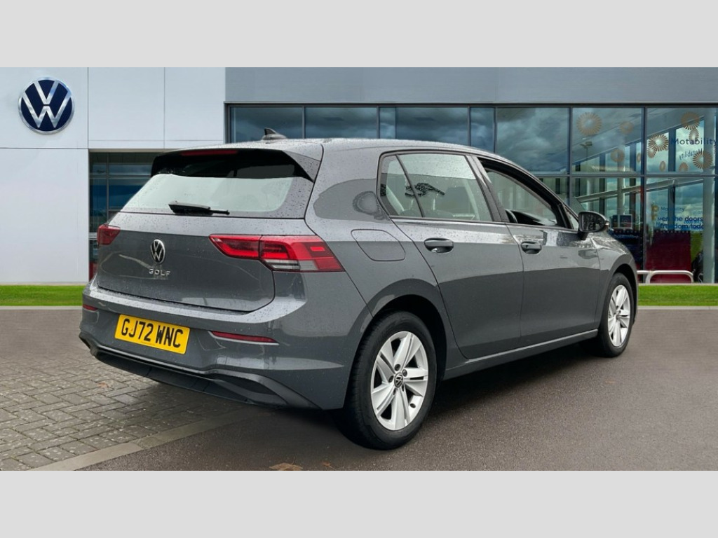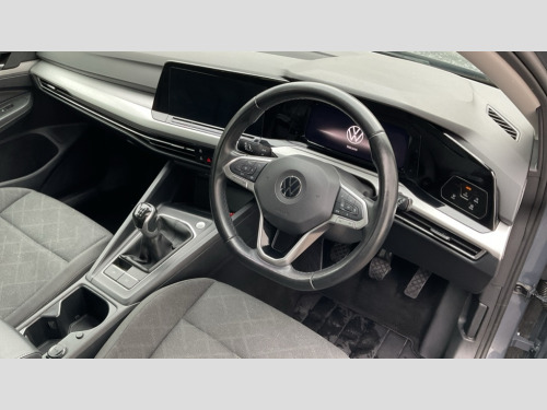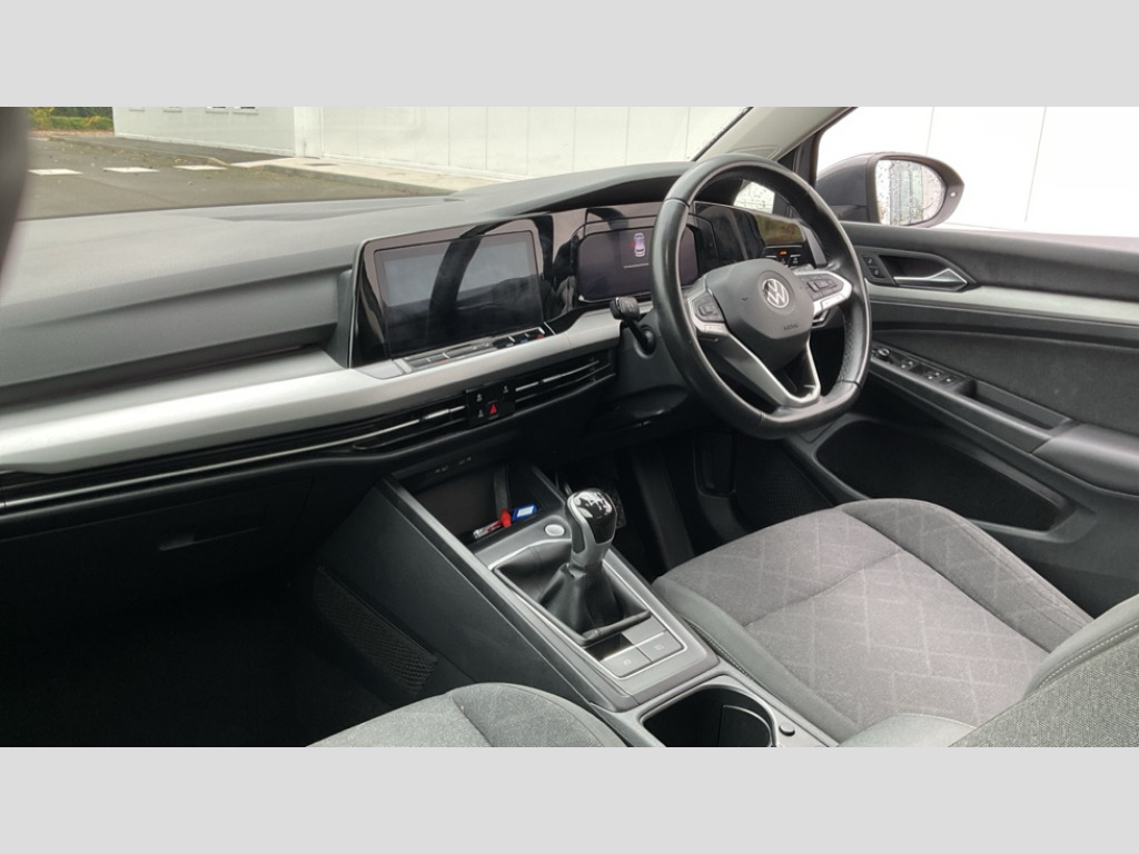 Volkswagen Golf 1.5 TSI 150 Life 5dr Adaptive cruise control (ACC) with speed limiter and front assist (reacting to vehicles pedestrians and cyclists), Car2X communication, Digital cockpit pro - 10.25" high resolution TFT dash display screen with customizable menus and information, Driver alert system, Dynamic road sign display, eCall - Emergency call service for SOS calls to emergency response, Lane assist, Mobile phone interface with wireless inductive charging function, Power assisted speed sensitive steering, Speedo, rev counter, electronic odometer, trip, service interval display, exterior temperature and fuel gauge, Start/Stop function, USB-C ports in the front and rear centre console with increased charging performance, Warning buzzer and light for front seatbelts unfastened, Wireless app connect, Petrol Particulate Filter, XDS electronic differential lock for improved traction and handling, Premium USB cable in choice of either Apple or Android smartphone compatibility, Ambient lighting, exterior illuminated styling elements at the sides, Auto dimming rear view mirror, Automatic headlamp activation with Coming home and Leaving home feature, Automatic headlights, Body colour bumpers, Body colour door handles, Body colour door mirrors with integrated indicators, Body colour rear roof spoiler, Dynamic headlight range control, Electrically heated and adjustable door mirrors with memory feature, Front and rear electric windows, Heat insulating glass windscreen, Heated rear windscreen, High level 3rd brake light, Highway light, LED daytime running lights, LED headlights incorporating turn signals, LED License plate illumination, Rain sensor, Rear fog light on one side and reversing lights on both sides, Rear lights incorporating LED technology, Rear side wing doors, Rear windscreen washer and wiper with interval delay, Welcome light, 10 colour interior ambient lighting, 12V socket in front centre console, 12V socket in luggage compartment, 3 rear head restraints, 3 seat bench in 2nd row, Drivers and front passengers sun visors with vanity mirrors, Front centre armrest with storage compartment, Front cupholders x 2, Front passenger seat, Front passenger seat lumbar adjustment, Front reading lights x 2 incorporating LED technology, Glovebox, Height adjustable passenger seat, Height and reach adjustable steering wheel, Isofix child seat preparation for 2 rear child seats and front passenger seat, Luggage compartment lighting, Maze cloth upholstery, Removable luggage compartment cover, Split folding backrest with centre armrest and unsplit rear seat bench, Storm grey roof lining, Woven fabric storage compartments in front and rear doors, 3 point height adj front seatbelts + pretensioners, 3 rear three point seatbelts, ABS, Child locks on rear doors, Driver and front passenger airbag with front passenger airbag deactivation, Drivers and front passengers safety optimised head restraints, Electronic parking brake with auto hold, ESC (Electronic Stability Control), Extended pedestrian protection measures, Front centre airbag, Front disc brakes, Front side airbags with curtain airbags, Rear disc brakes, Two tone horn, Tyre pressure monitoring system, Alarm with interior protection and deactivation via infotainment system, Electronic engine immobiliser, High gloss black centre console, Nature cross brushed decorative inserts, Soul dashboard